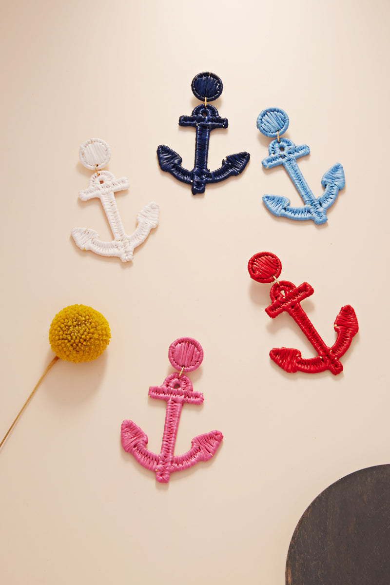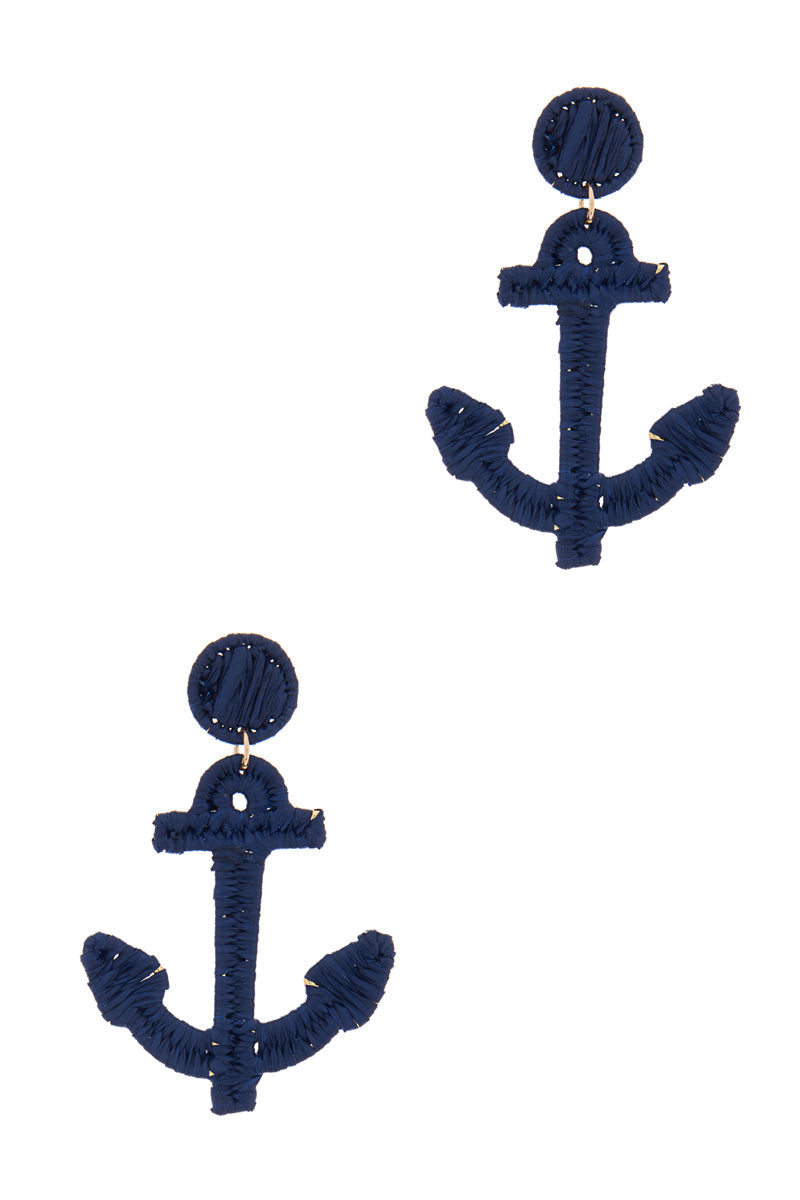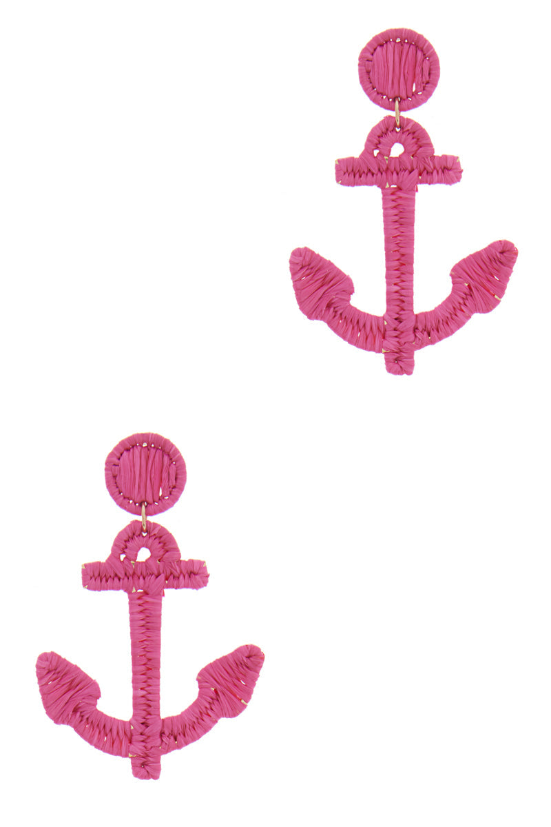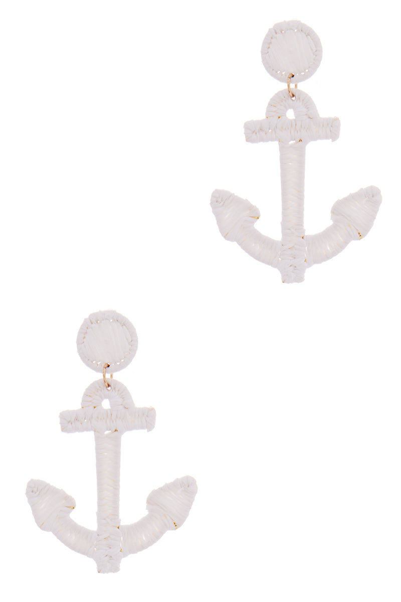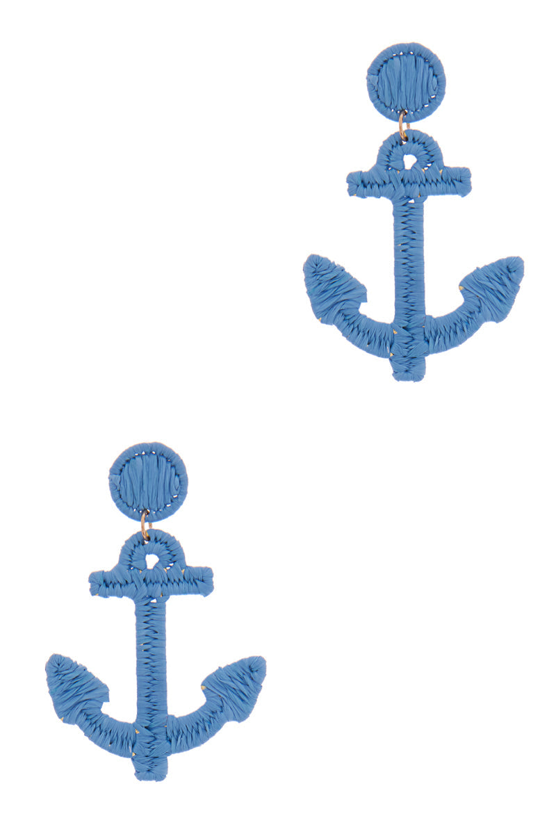 Anchor Shaped Raffia Wrapped Summer Post Earrings