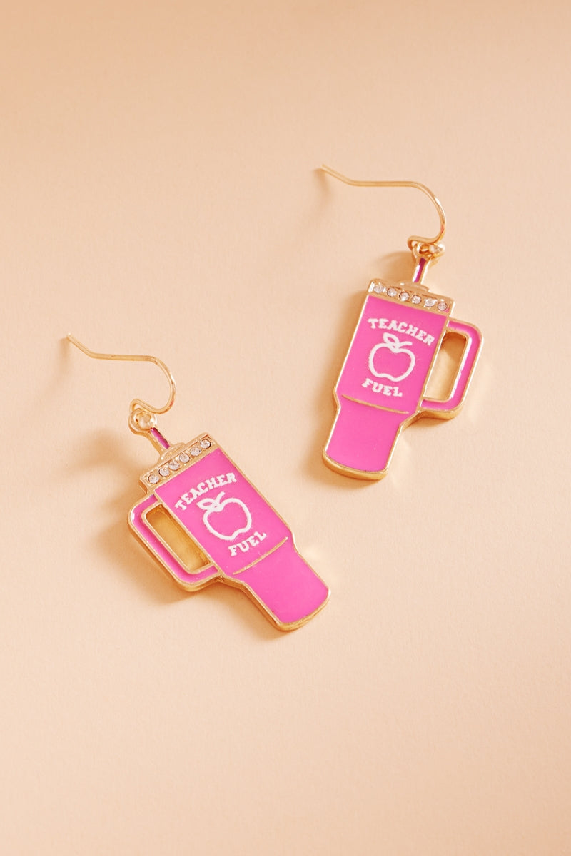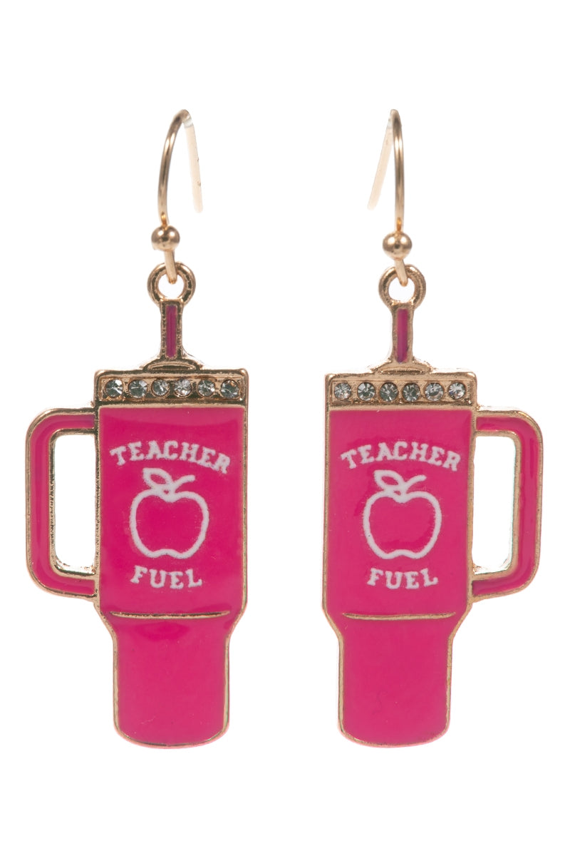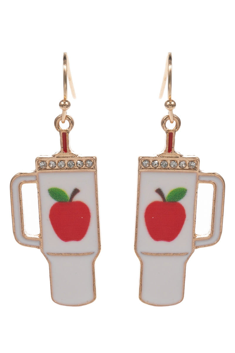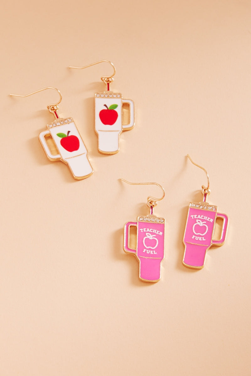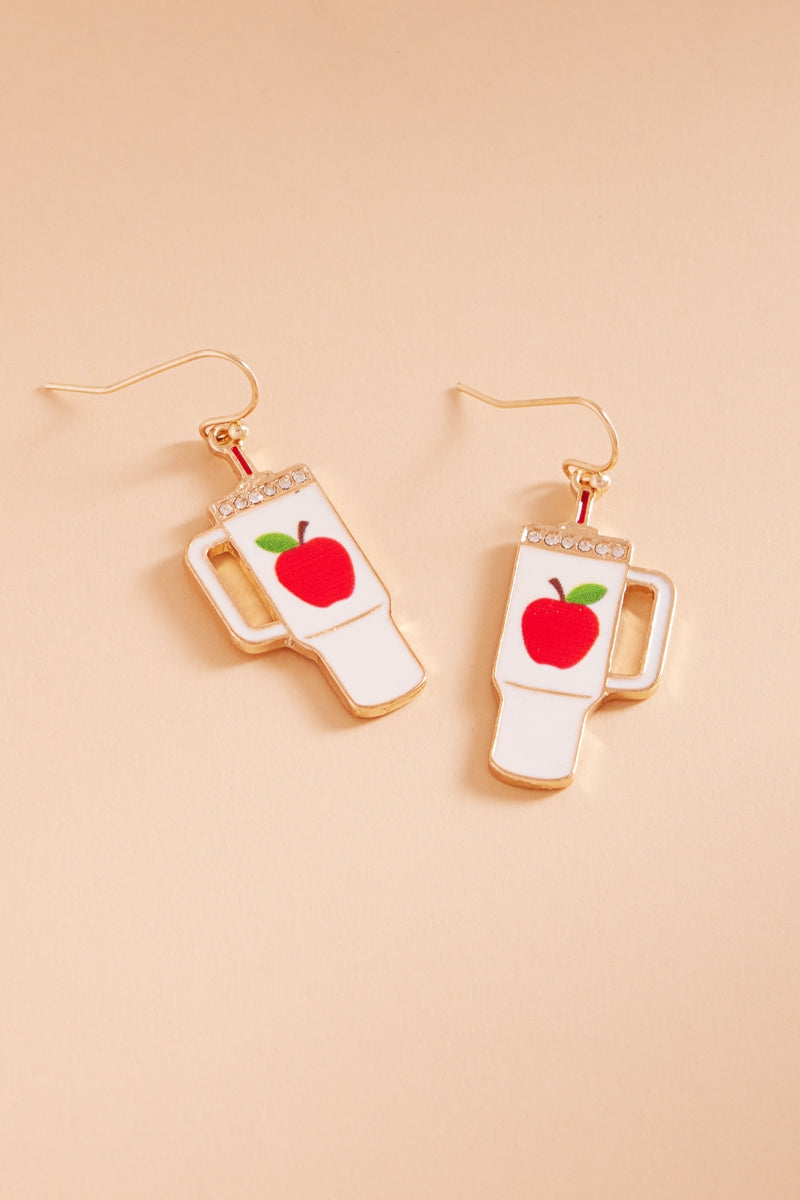 Apple Tumbler Enamel W Teacher Fuel Post Earrings
