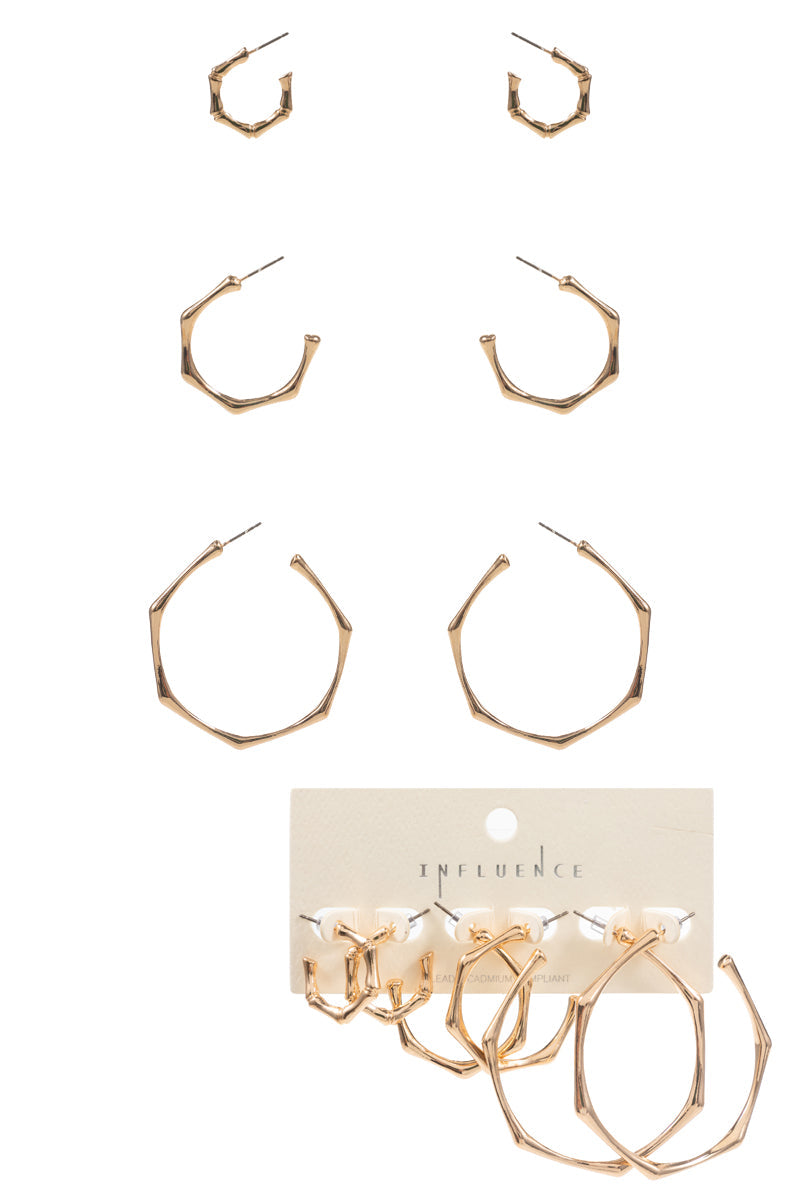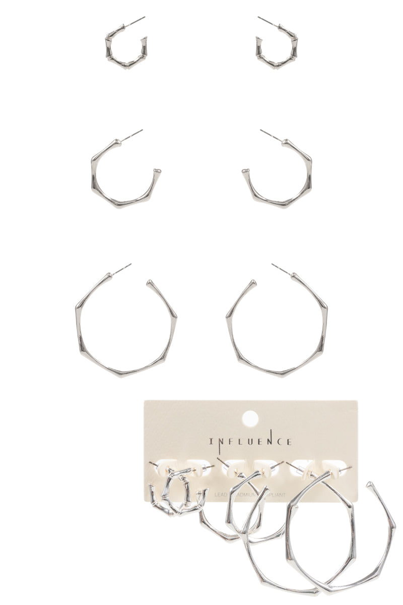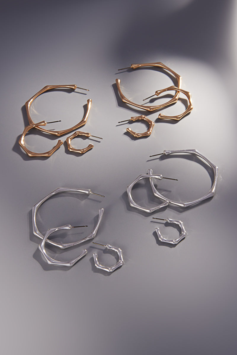 Bamboo Shaped Basic Metal Hoop Earrings Set