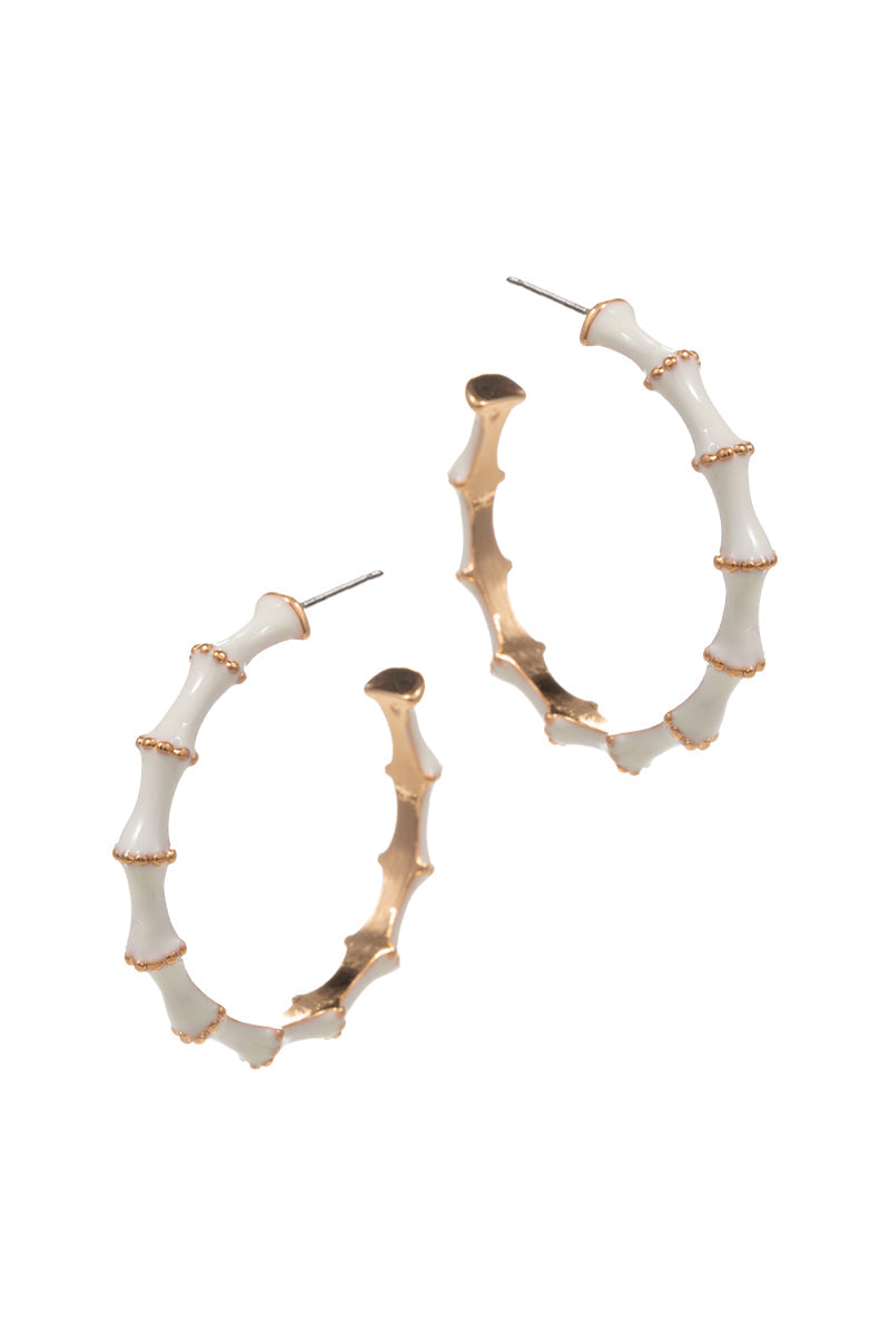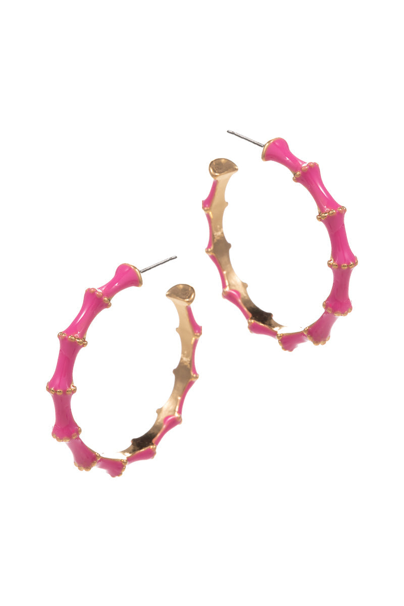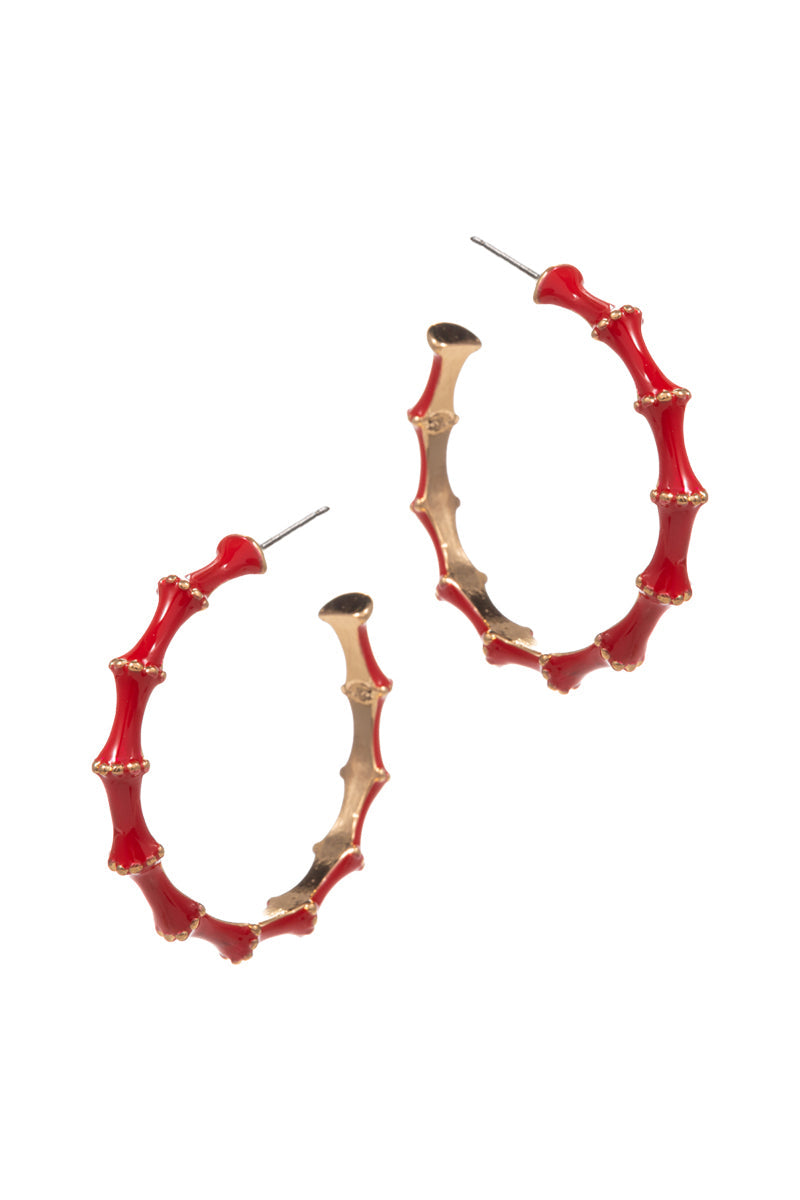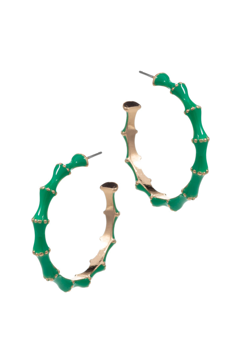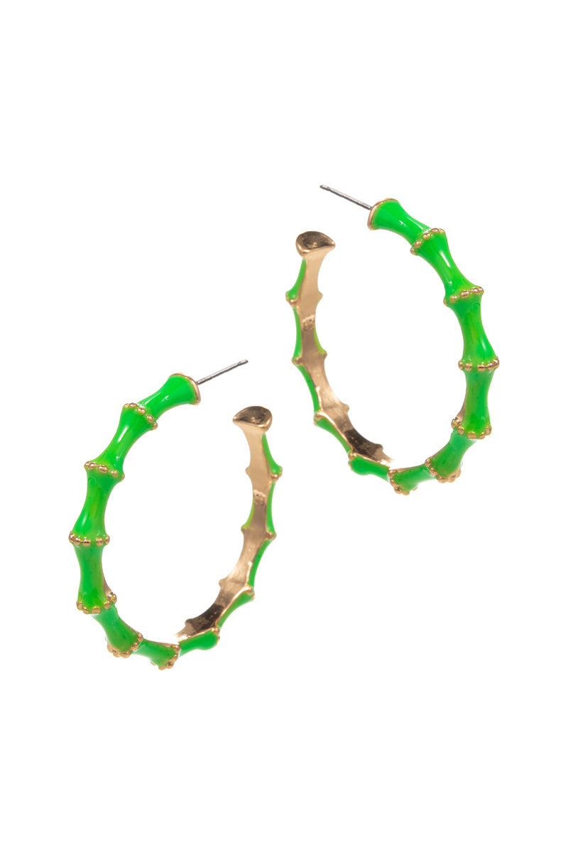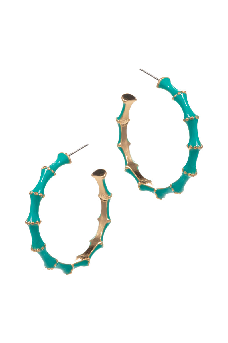 Bamboo Shaped Color Enamel Metal Hoop Earrings