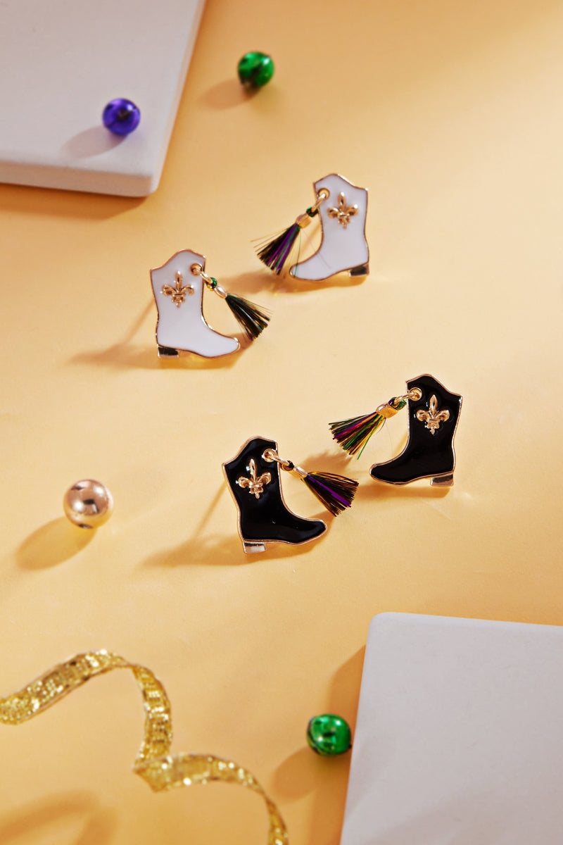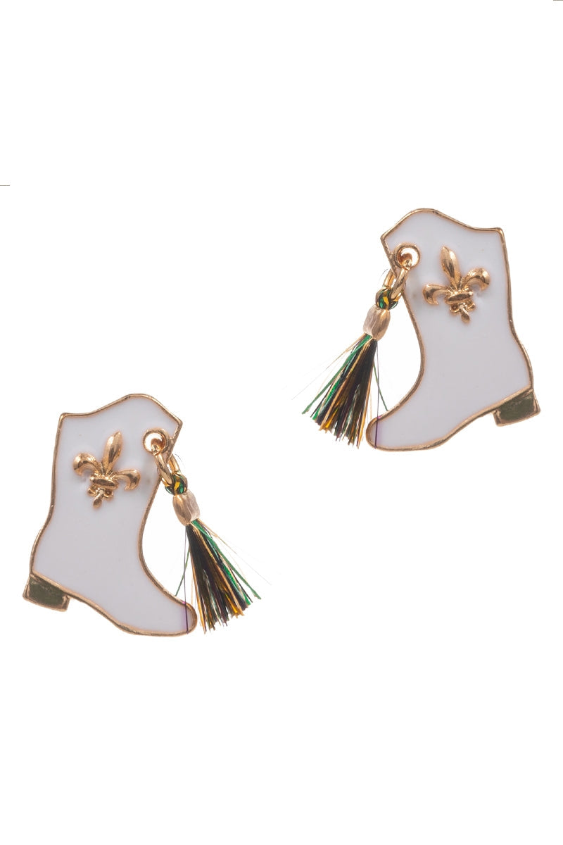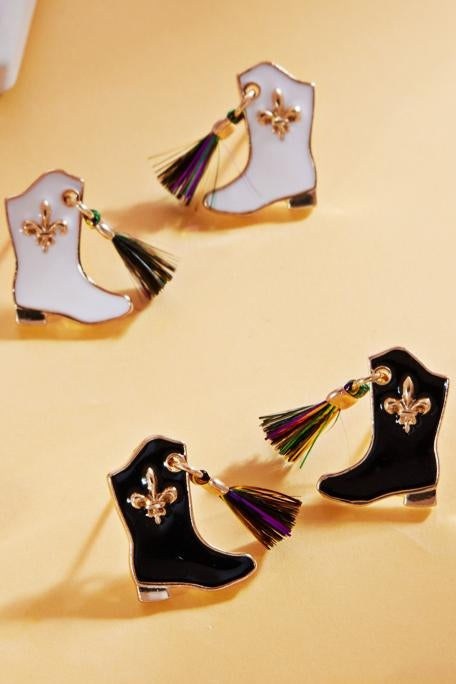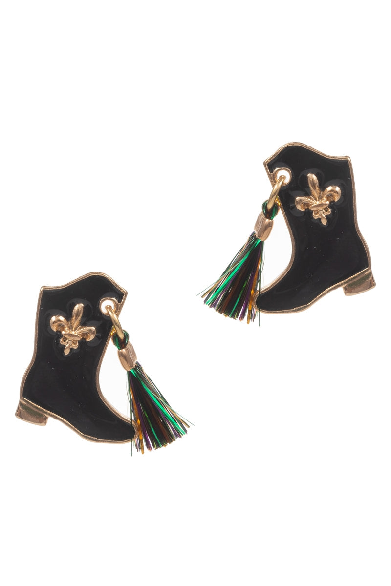 Discover the perfect accessory for your Mardi Gras celebration with our 0.75 inch boot-shaped post earrings. Crafted with intricate details, these earrings will add a festive touch to any outfit. Made with quality materials, they are comfortable to wear and will last for years to come.