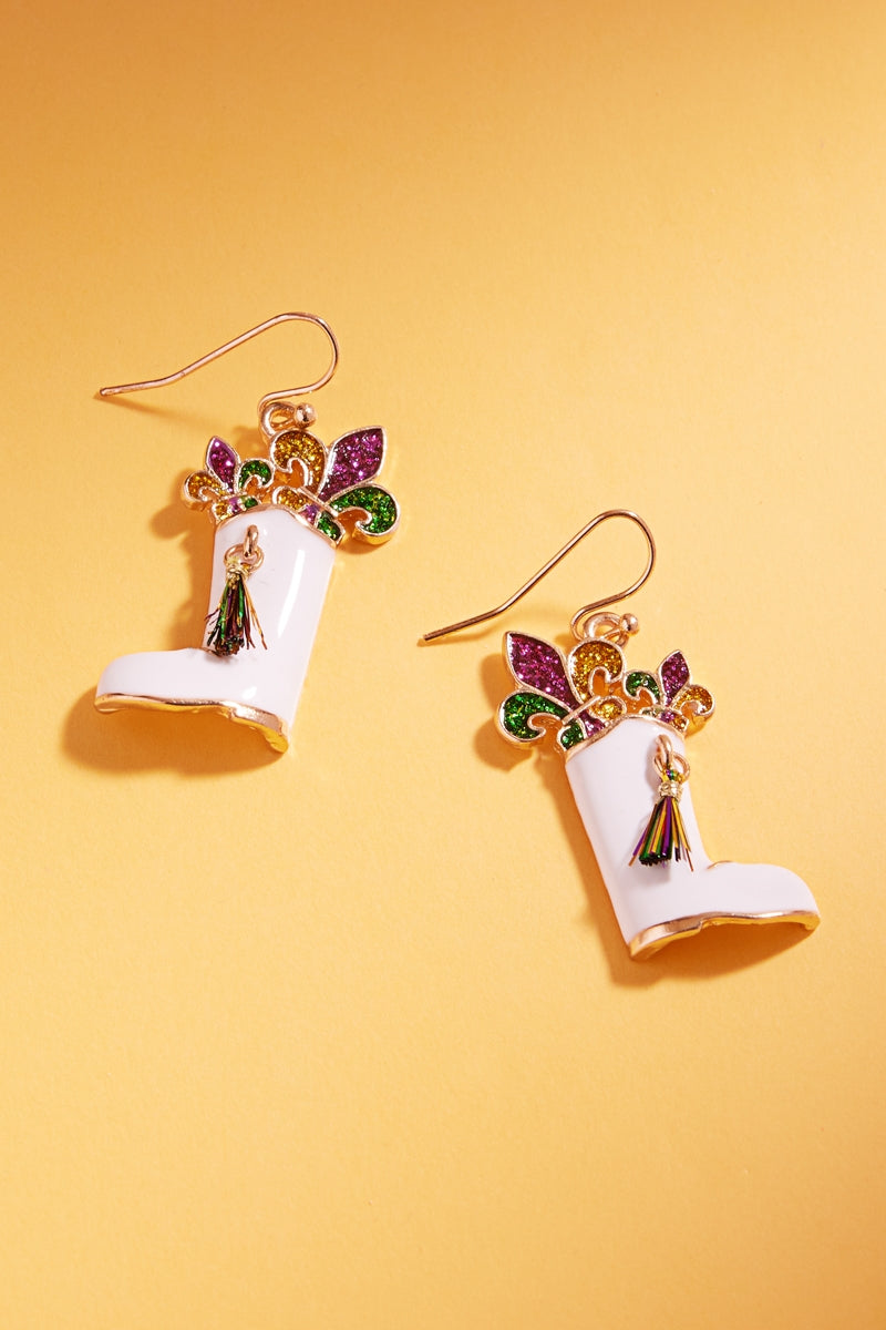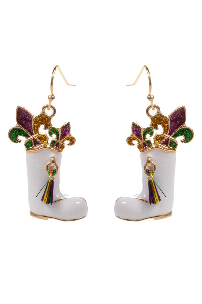 Boots Enamel Mardi Gras Fleur De Lis Hook Earrings