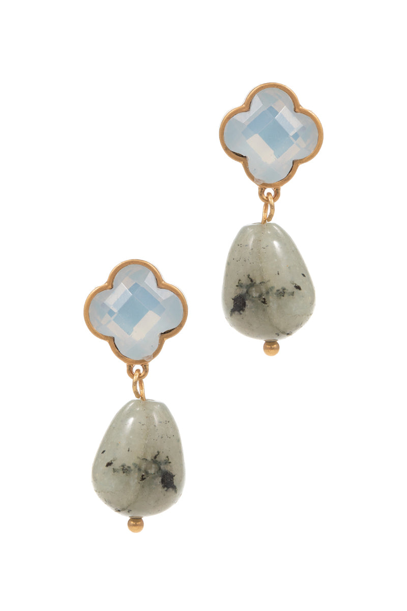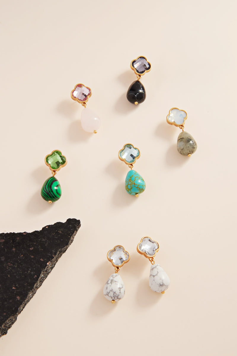 The unique shape and mix of glass materials make these earrings stand out, adding a touch of elegance and charm to any outfit. With their secure hook closure, you can wear them comfortably all day long. Elevate your style with these beautiful, must-have earrings.