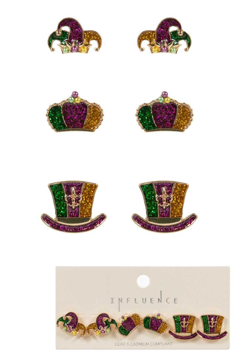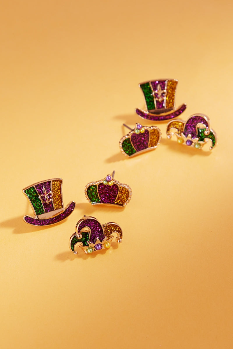 Mardi Gras Hats Glitter Enamel 3Set Post Earrings
