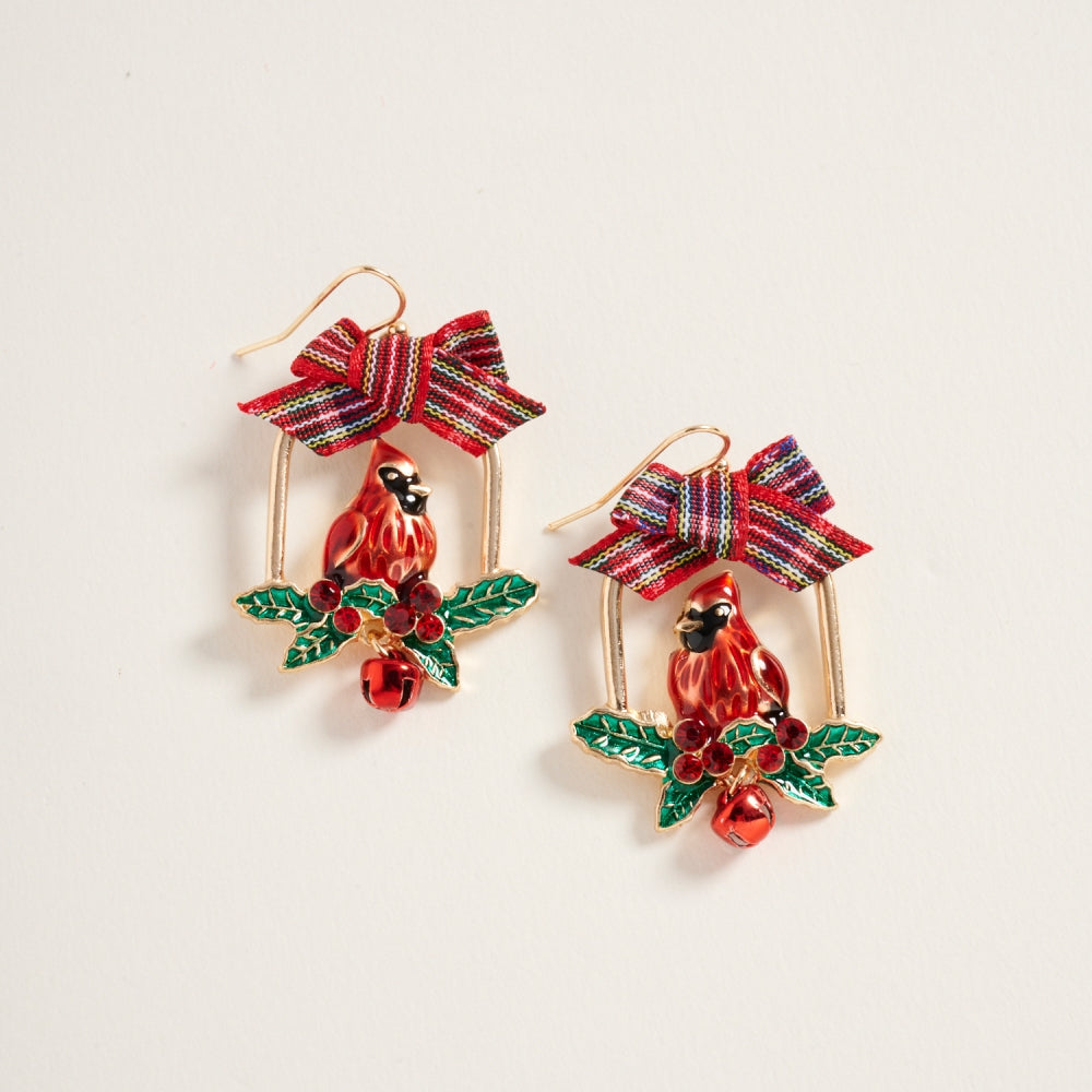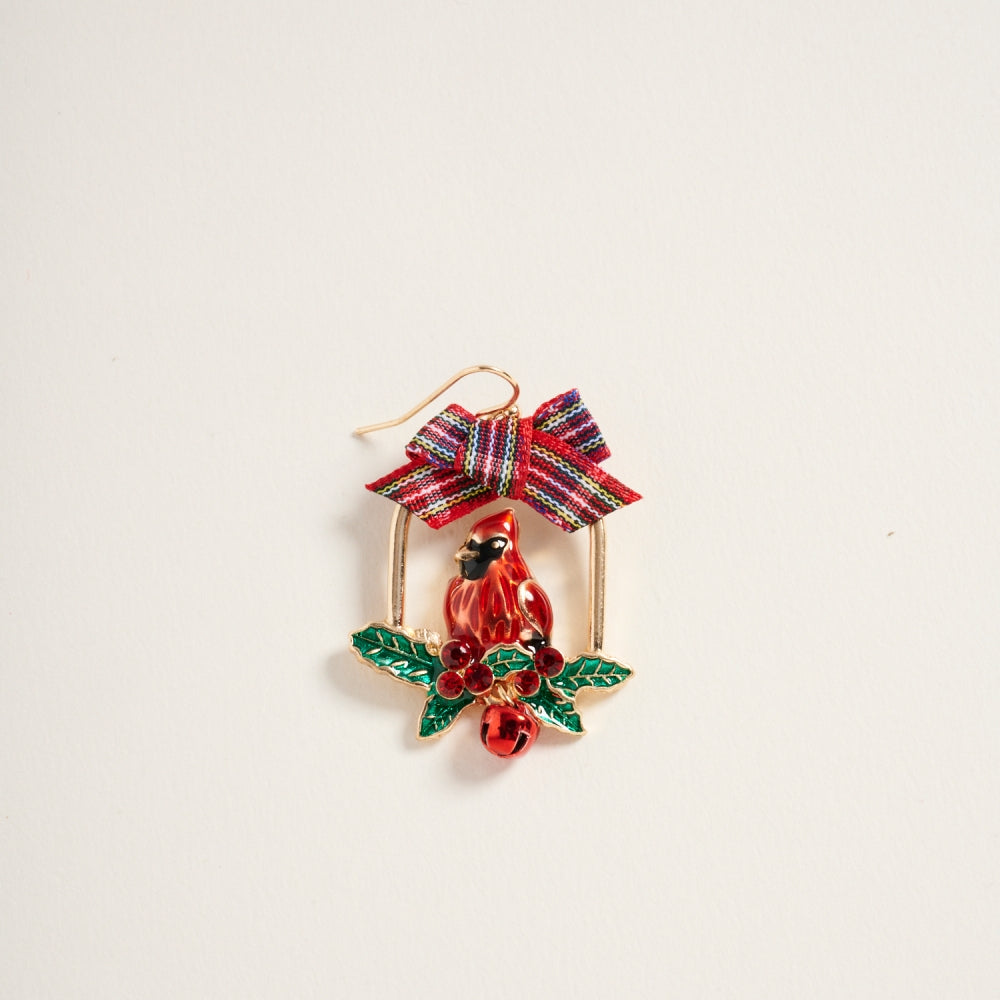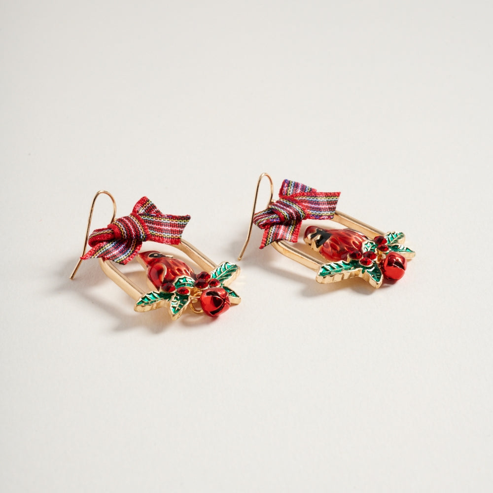 Cardinal Holly Leaf Ribbon Rhinestone Hook Earring