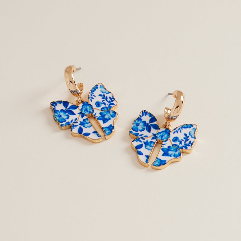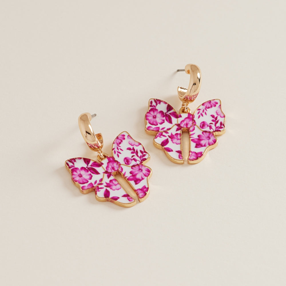 Ceramic Bow Enamel Flower Pattern Hoop Earrings