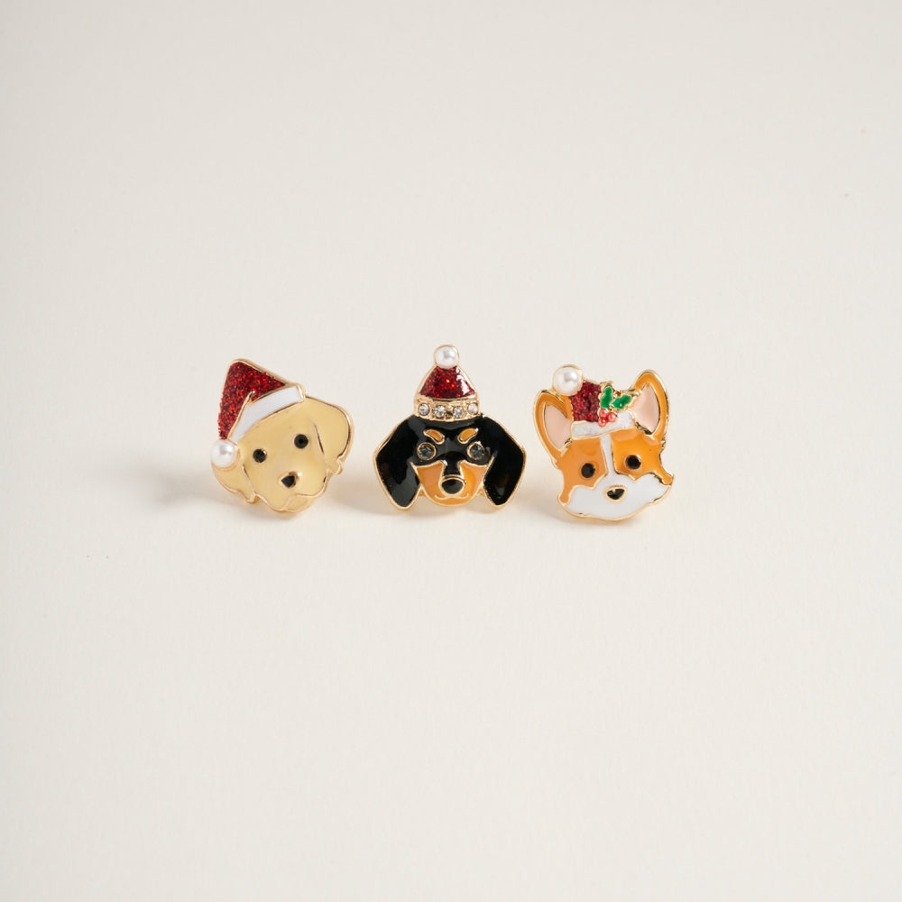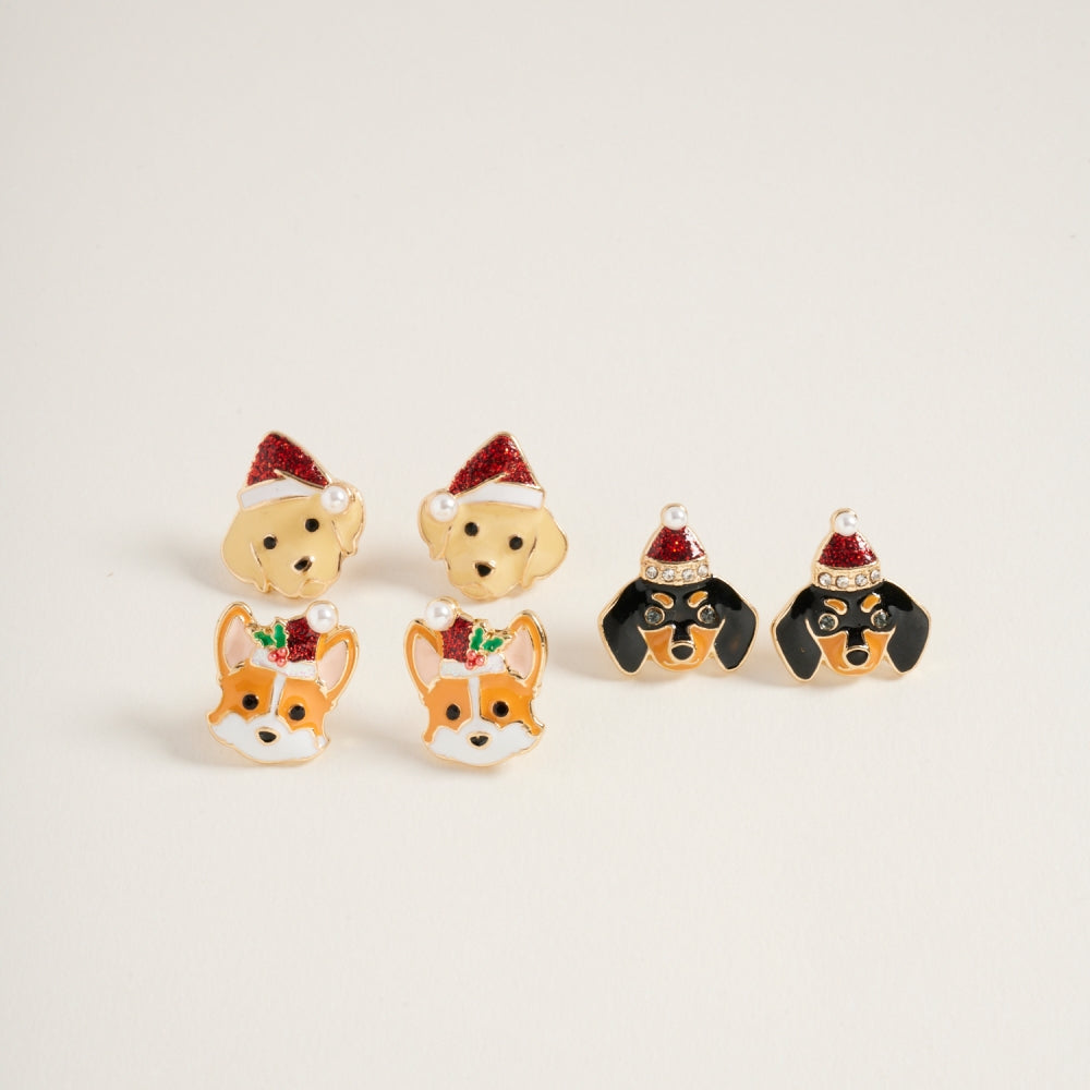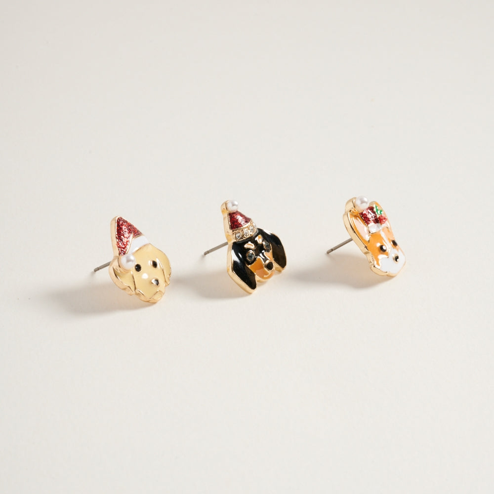 This trio of adorable dog earrings brings Christmas charm to your look with glittering rhinestones and elegant pearl accents.