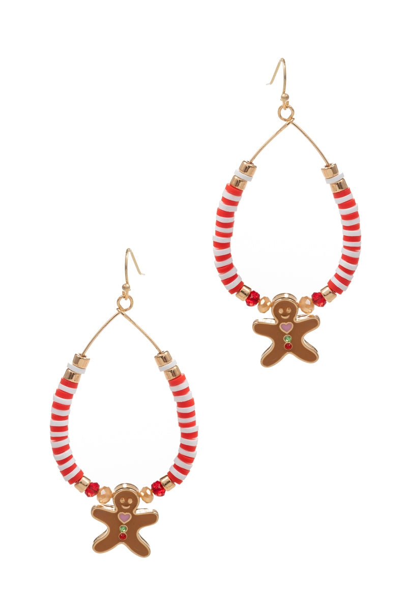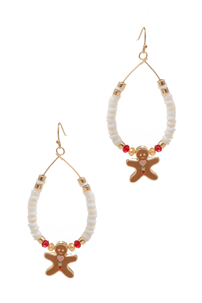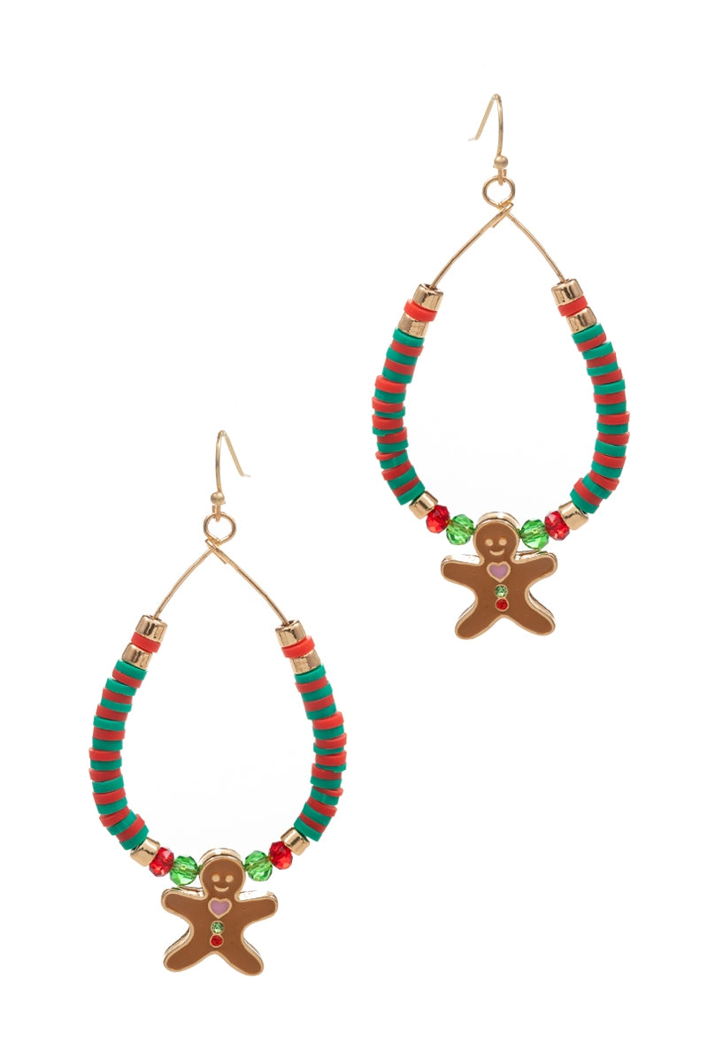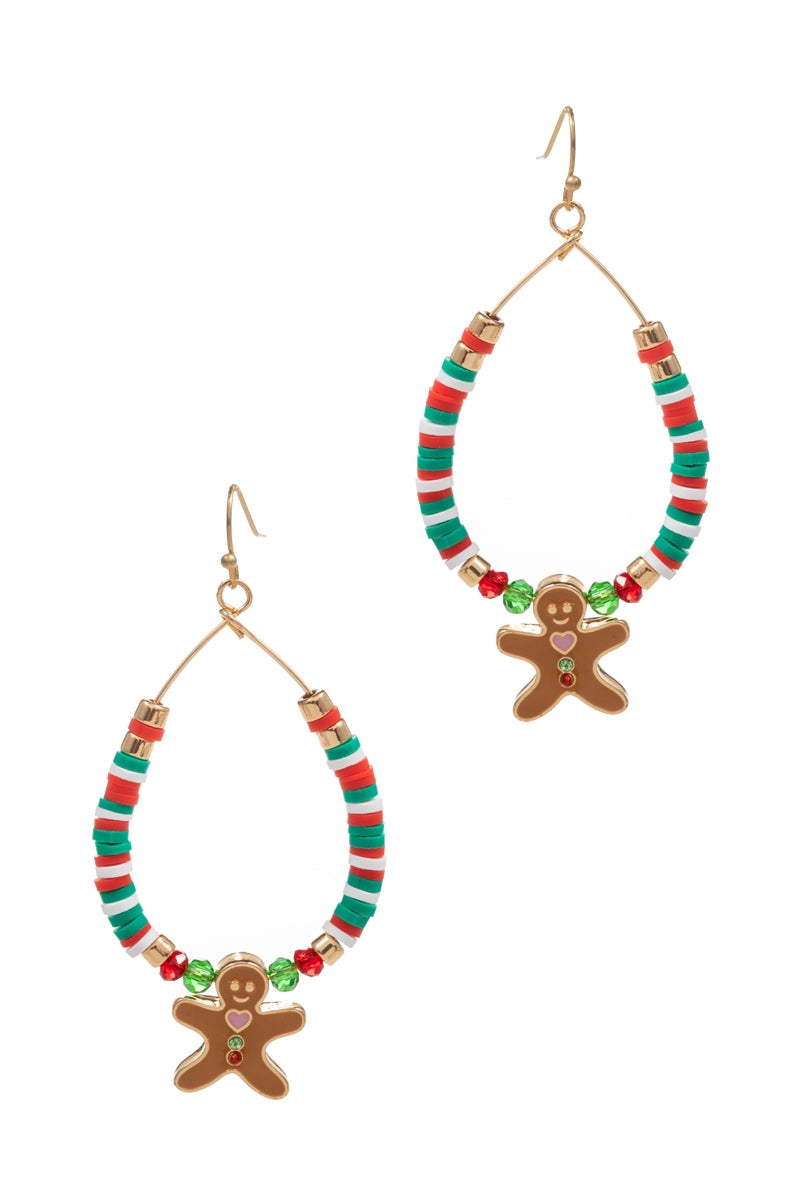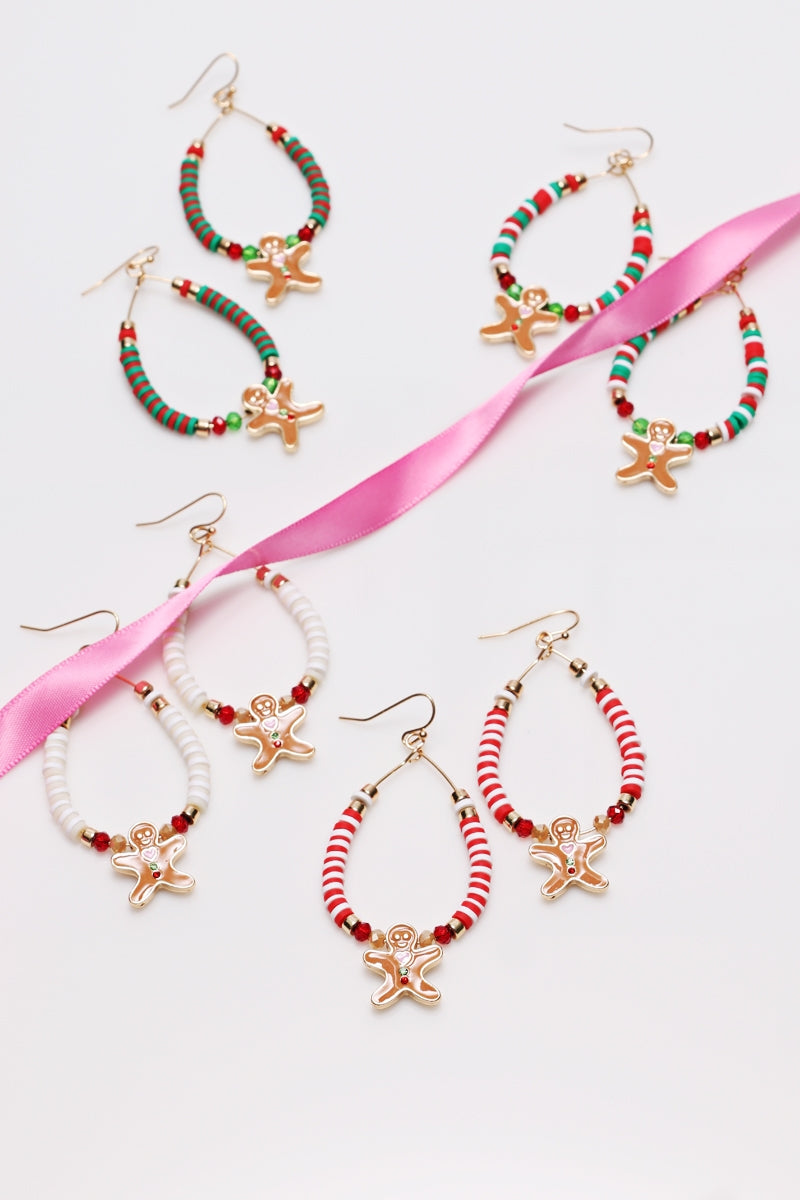 Christmas Beaded Ginger Breadman Hoop Earrings