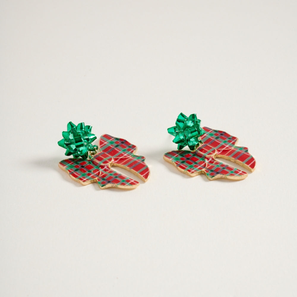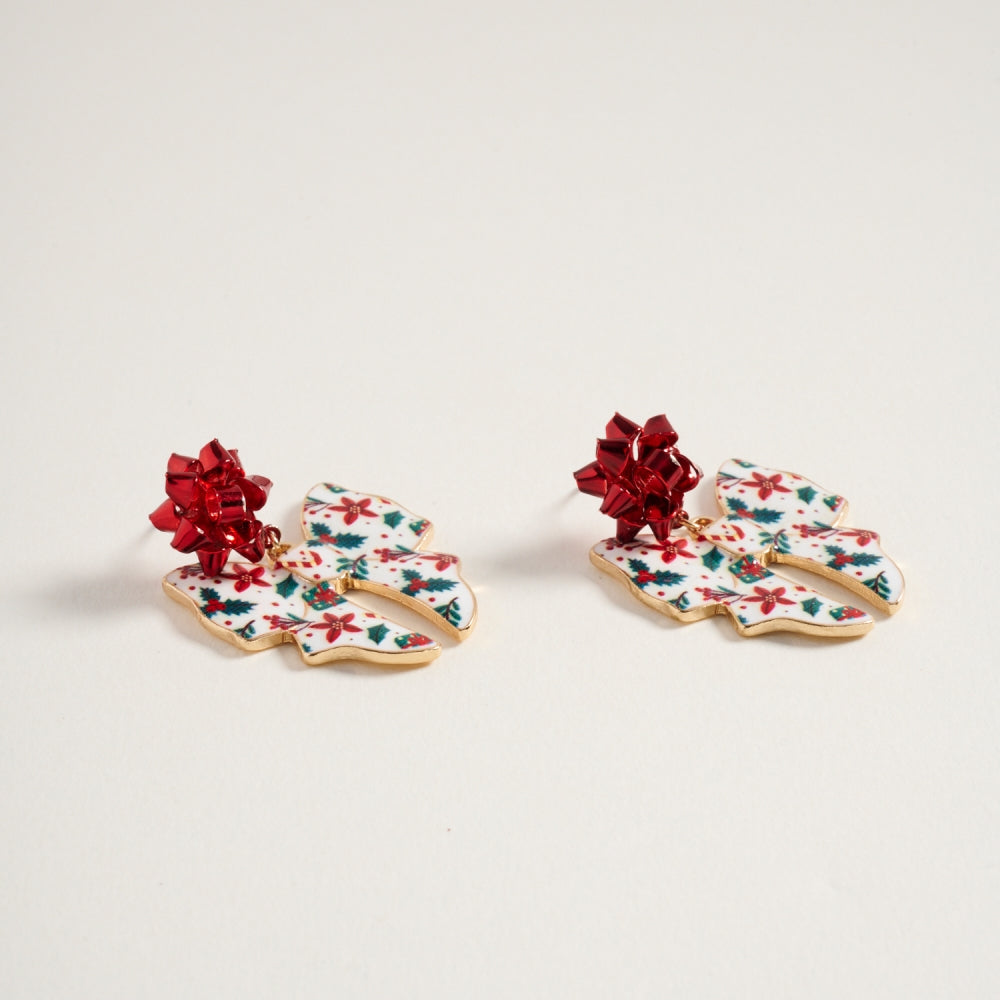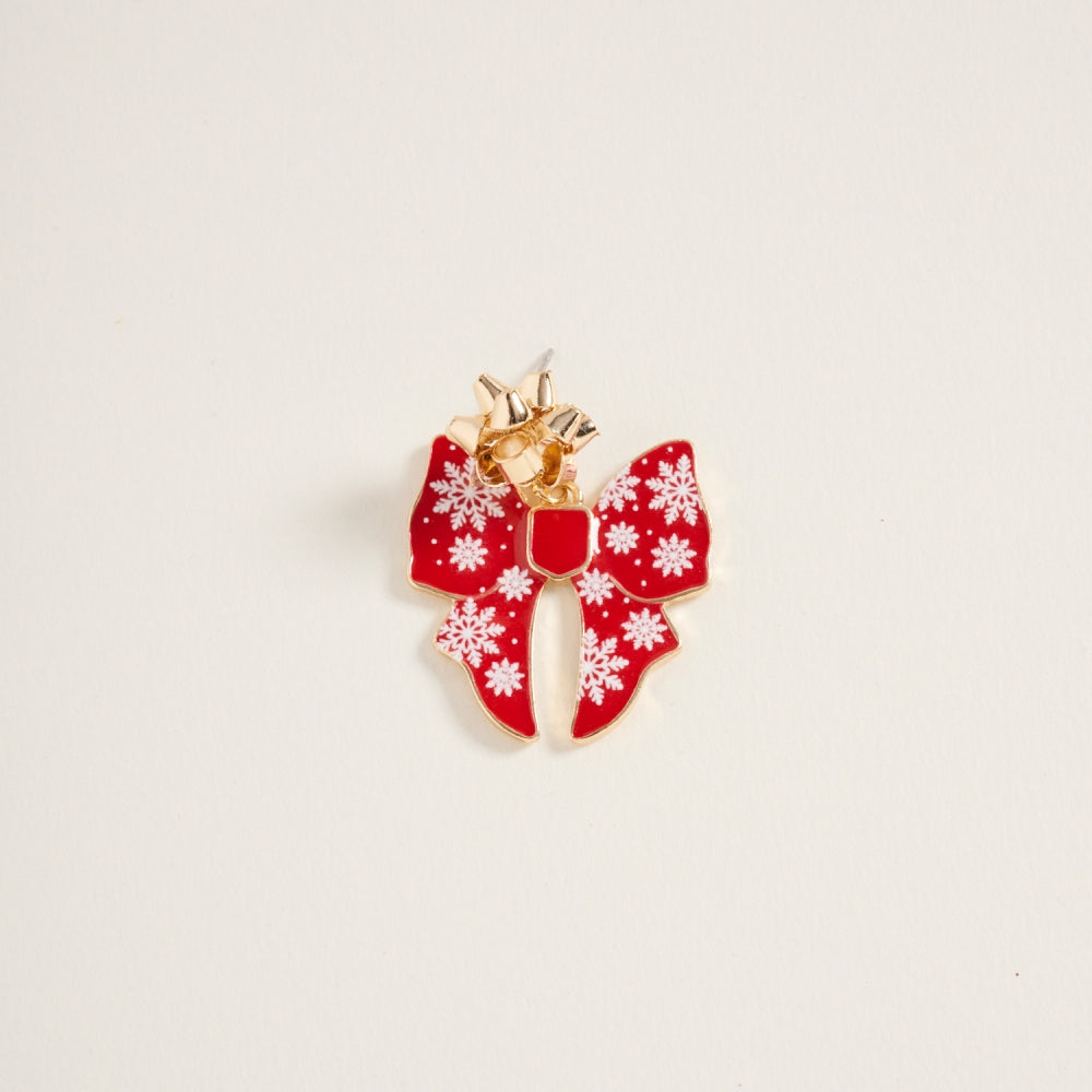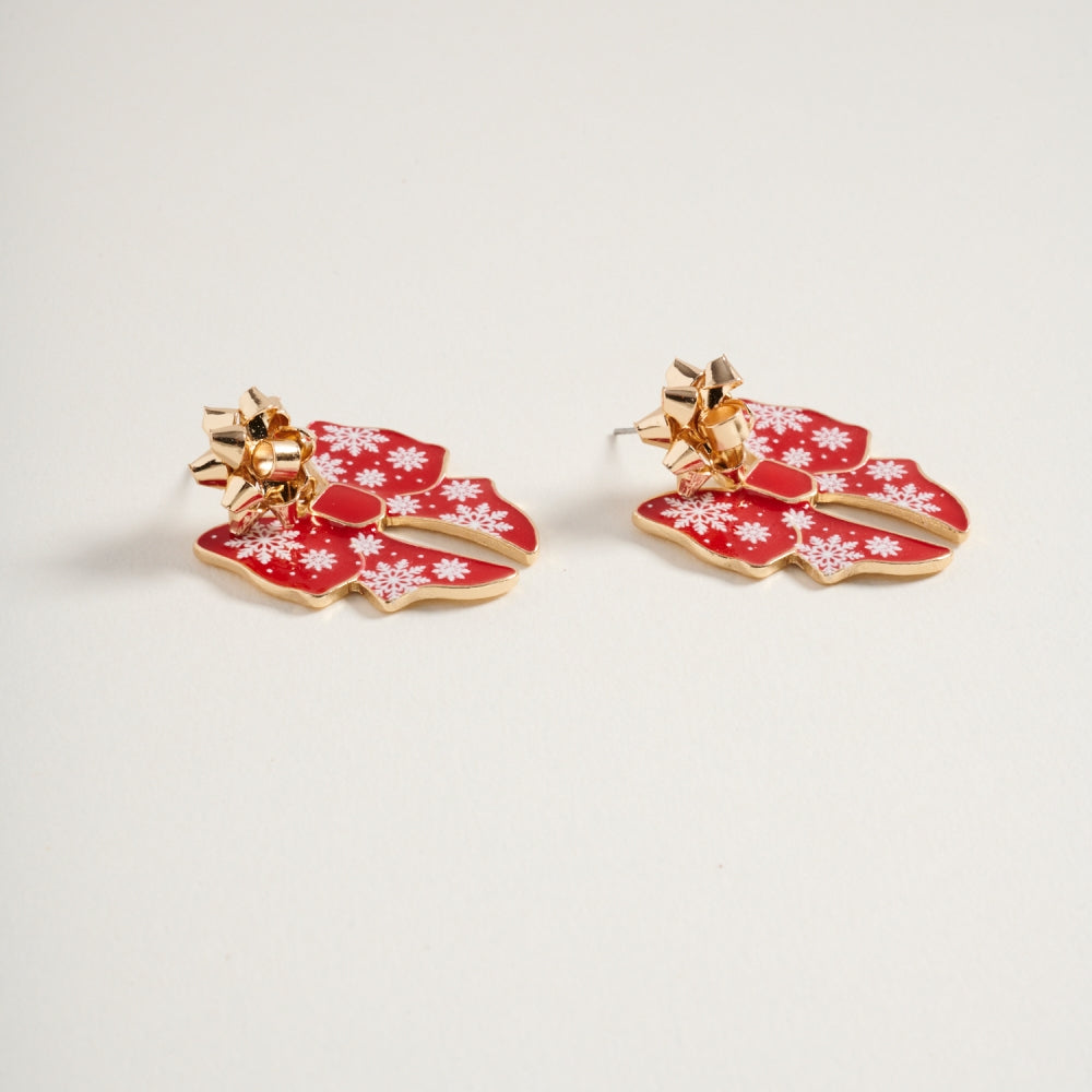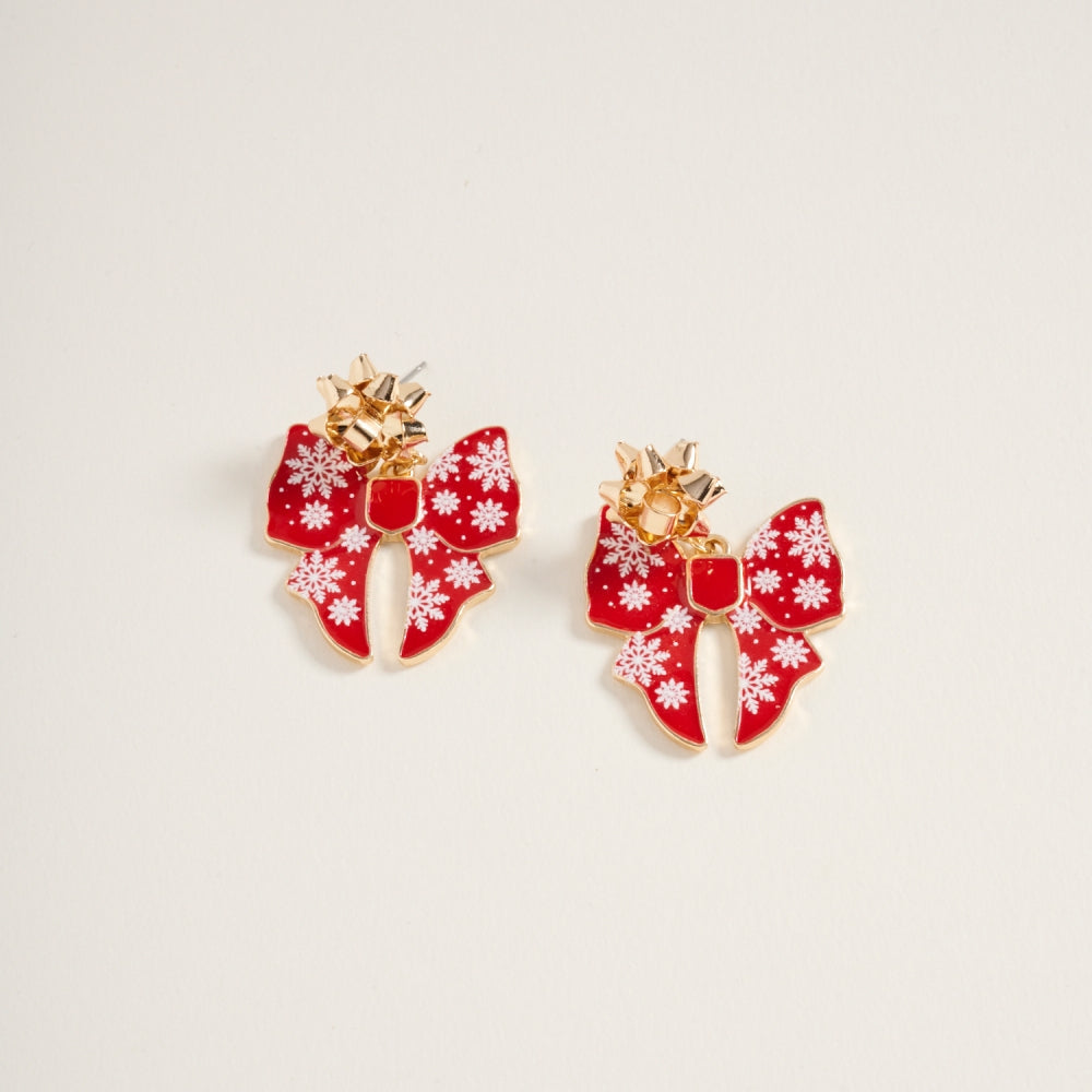 Designed like miniature holiday bows, these earrings showcase vibrant Christmas ribbon patterns. Lightweight and lively, they bring a joyful sparkle to any winter outfit.