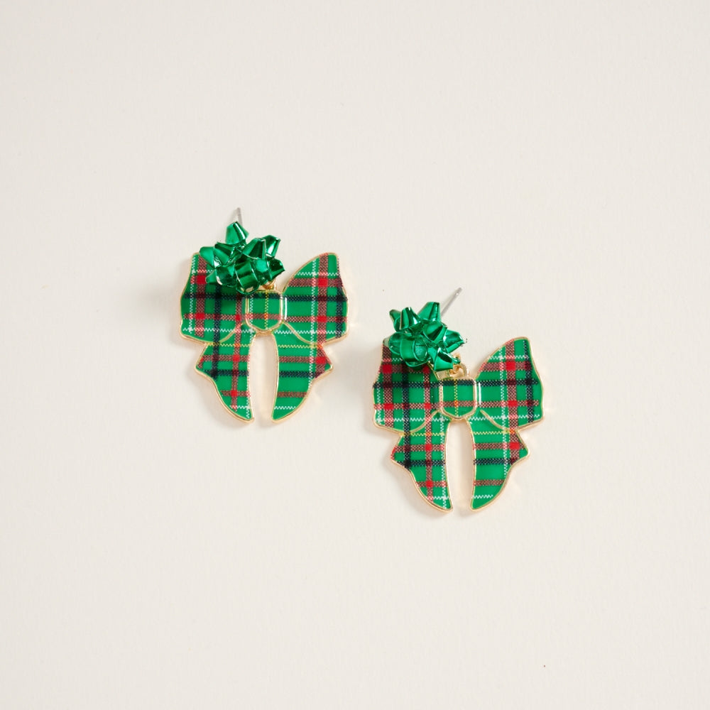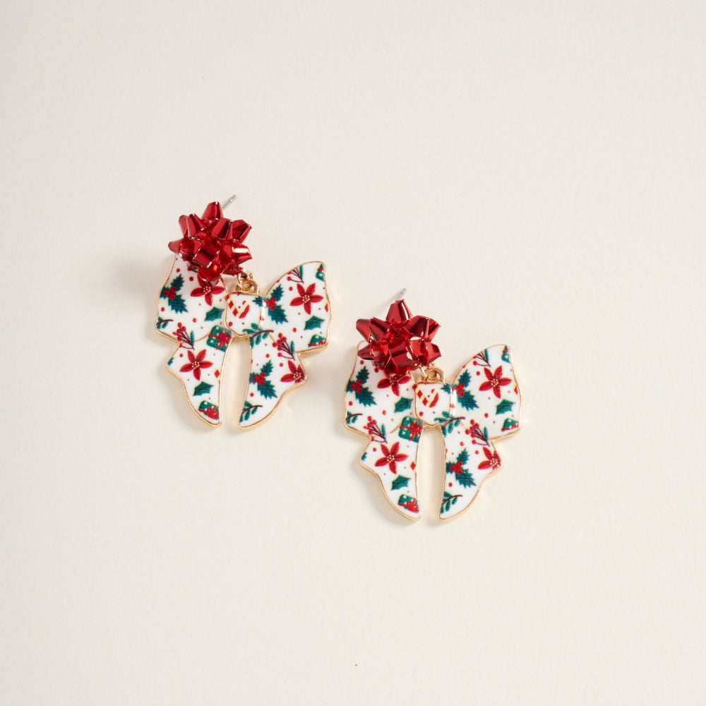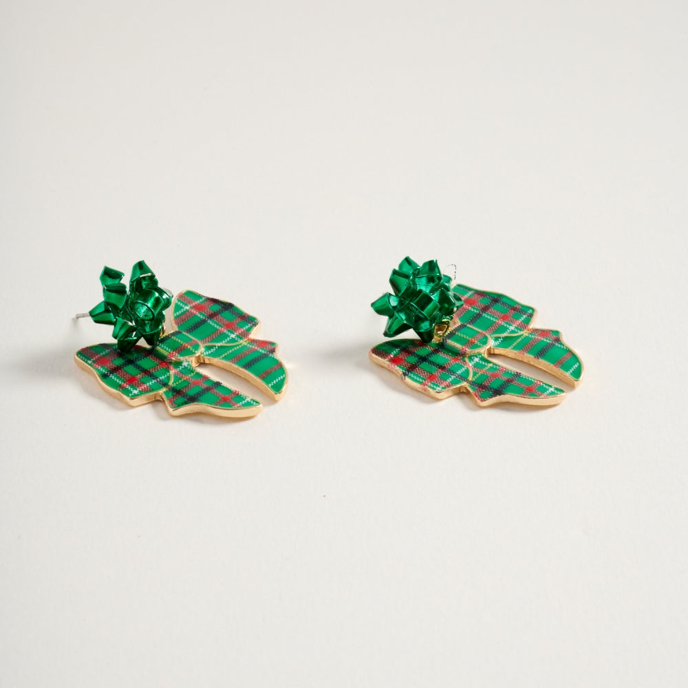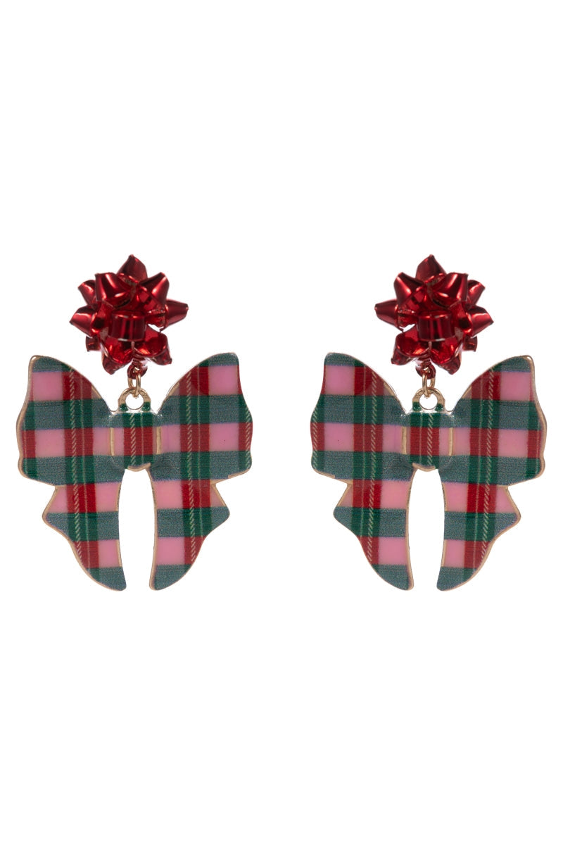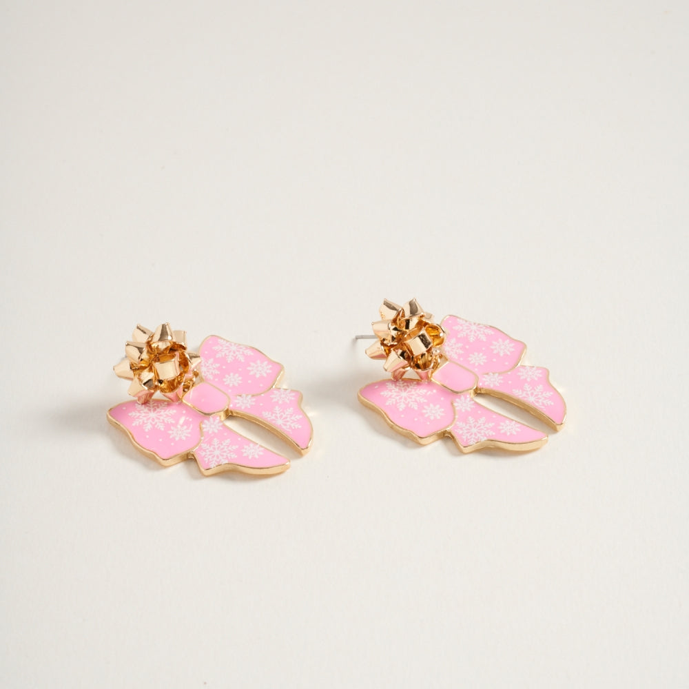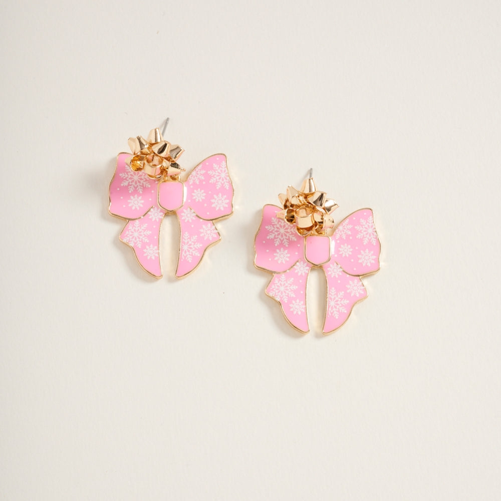 Designed like miniature holiday bows, these earrings showcase vibrant Christmas ribbon patterns. Lightweight and lively, they bring a joyful sparkle to any winter outfit.