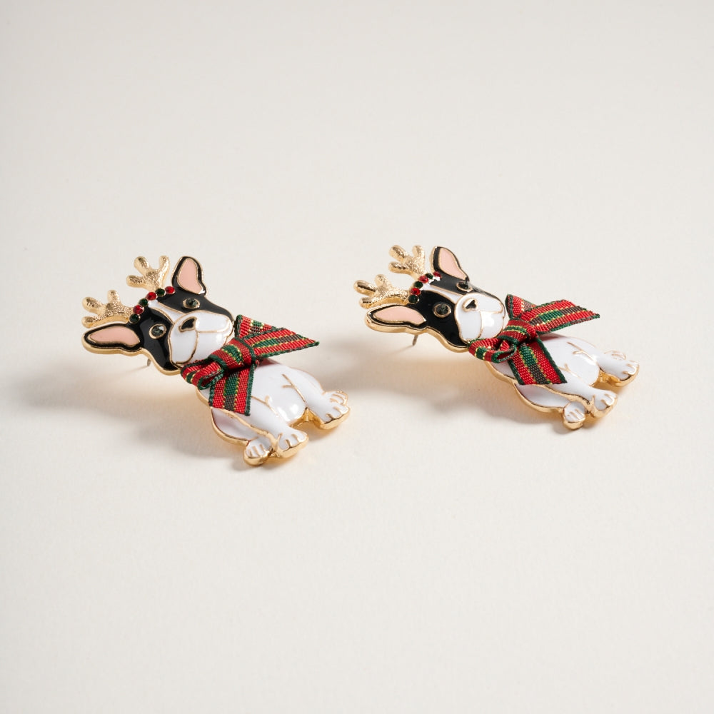 Christmas Dog Bulldog with Ribbon Post Earrings