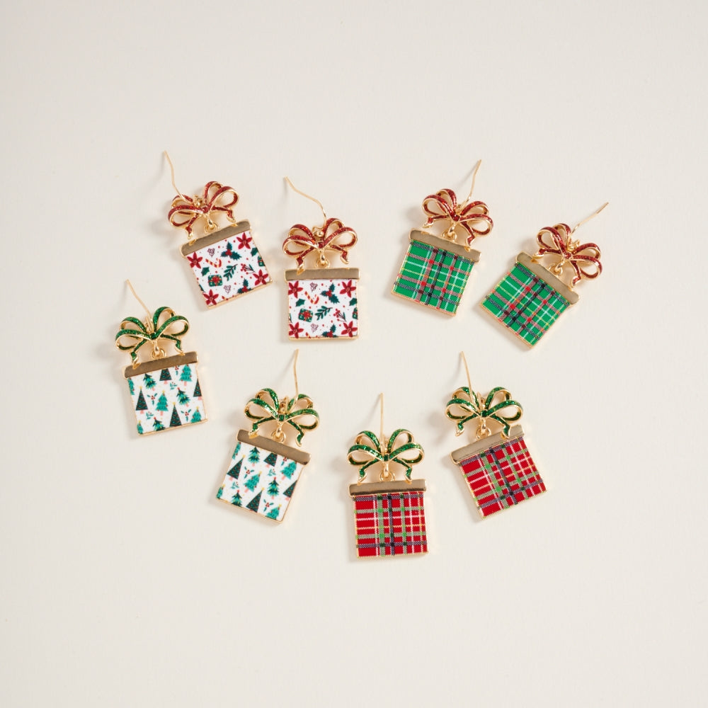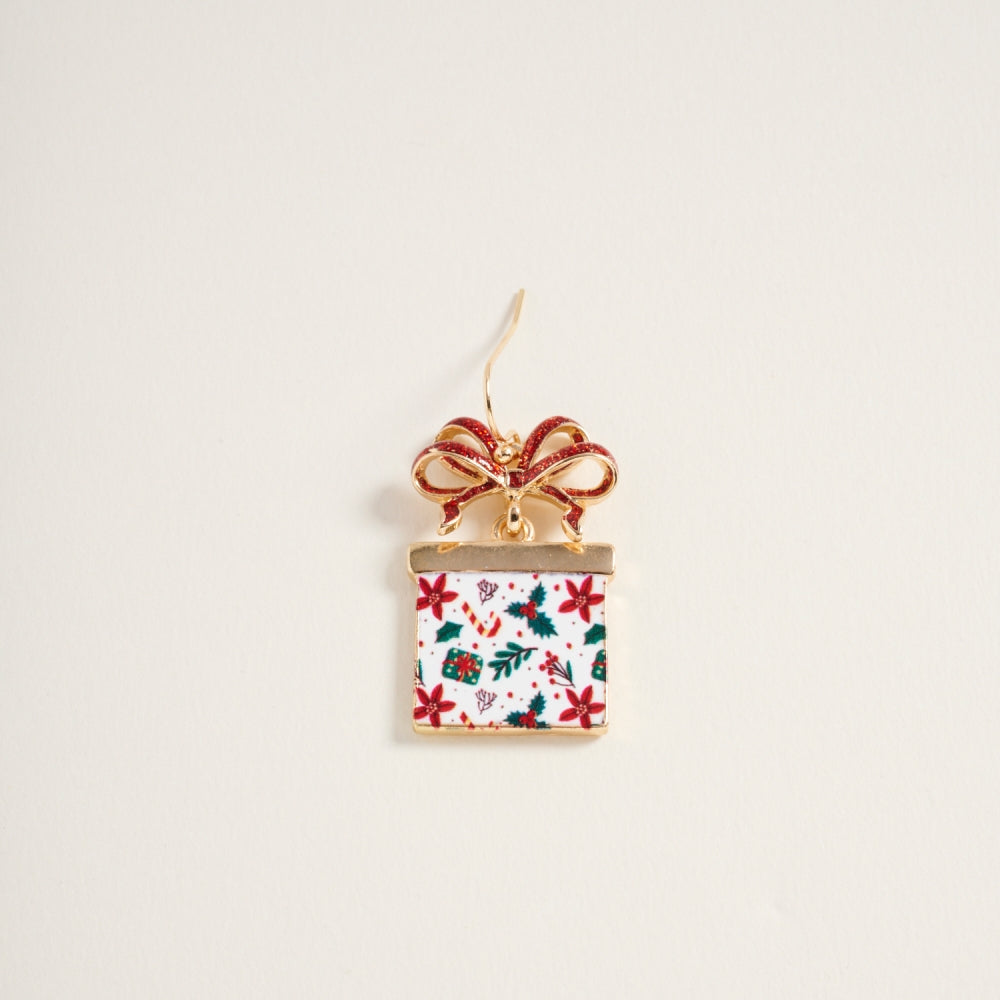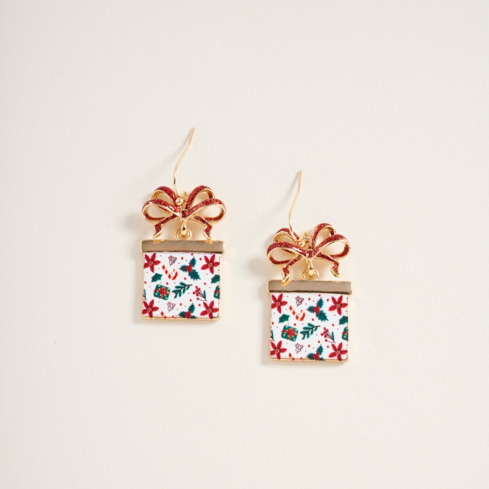 Christmas Giftbox with Glitter Bow Hook Earrings