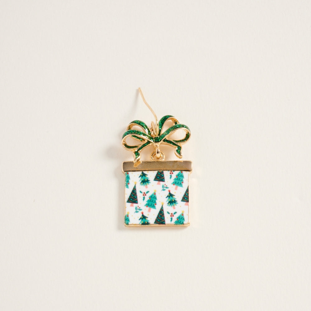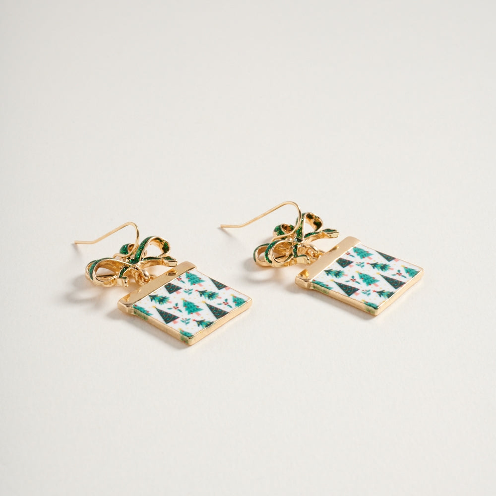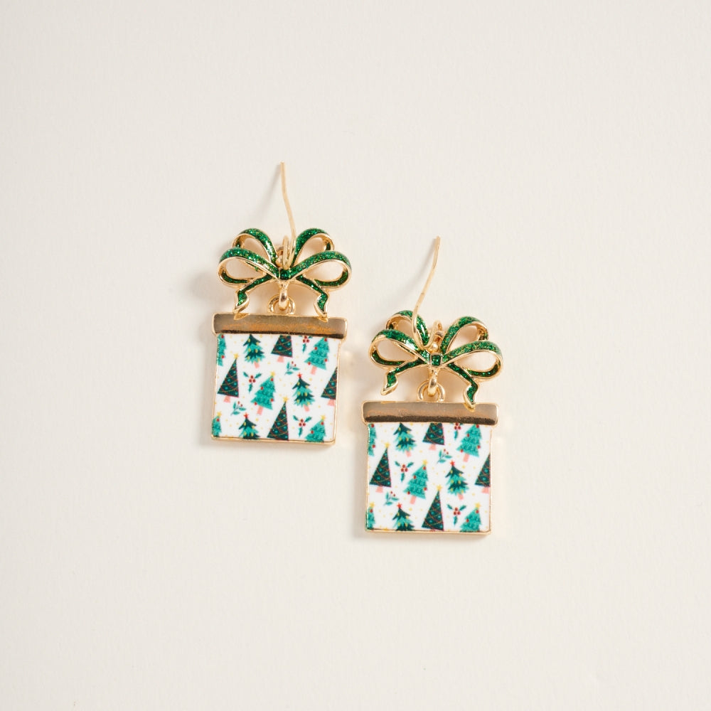 Bring joy and sparkle to your look with these giftbox earrings adorned with a twinkling glitter bow. A fun and festive accessory for the holiday season.