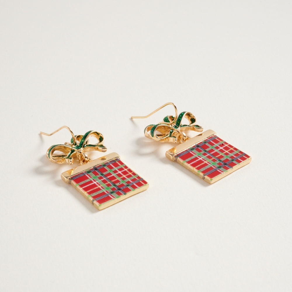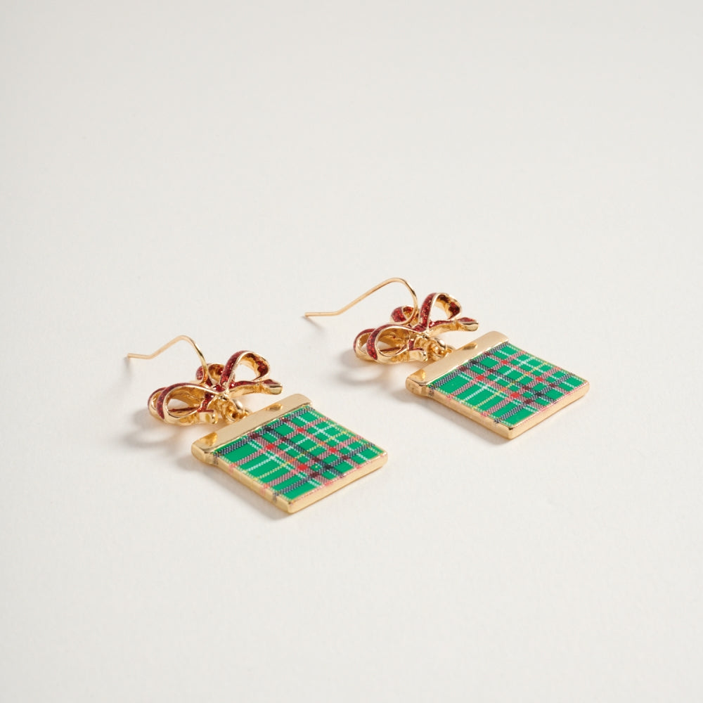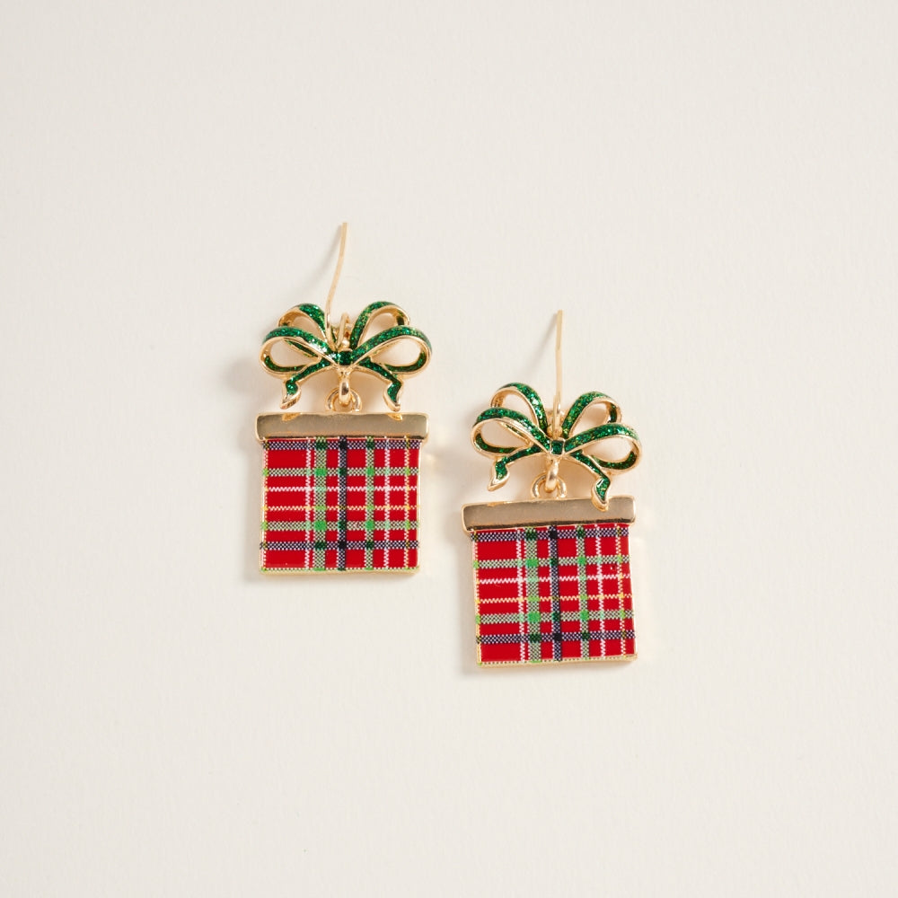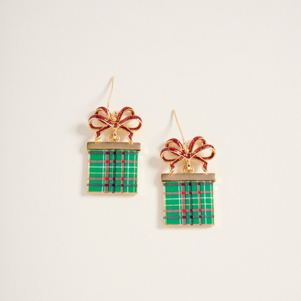 Bring joy and sparkle to your look with these giftbox earrings adorned with a twinkling glitter bow. A fun and festive accessory for the holiday season.