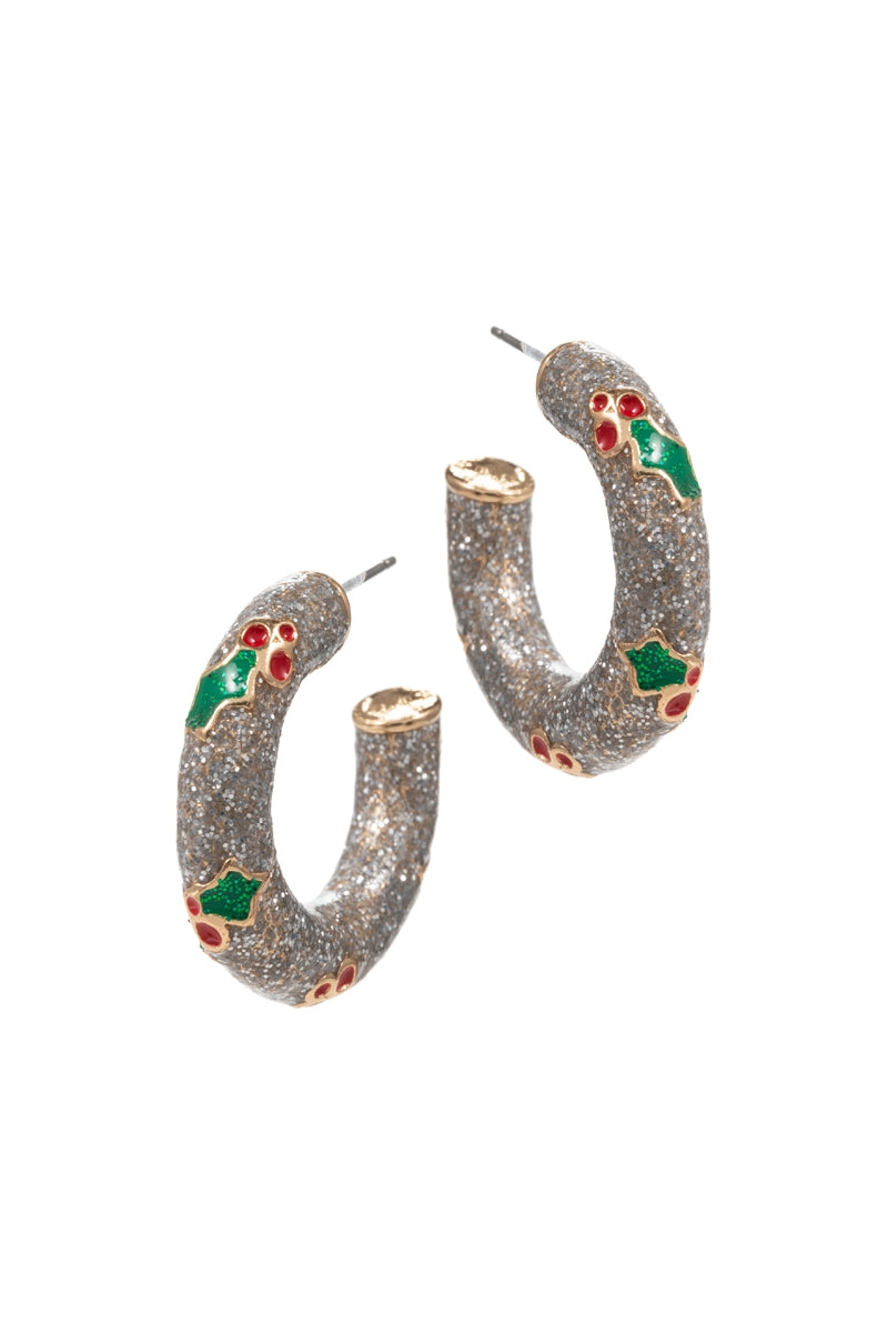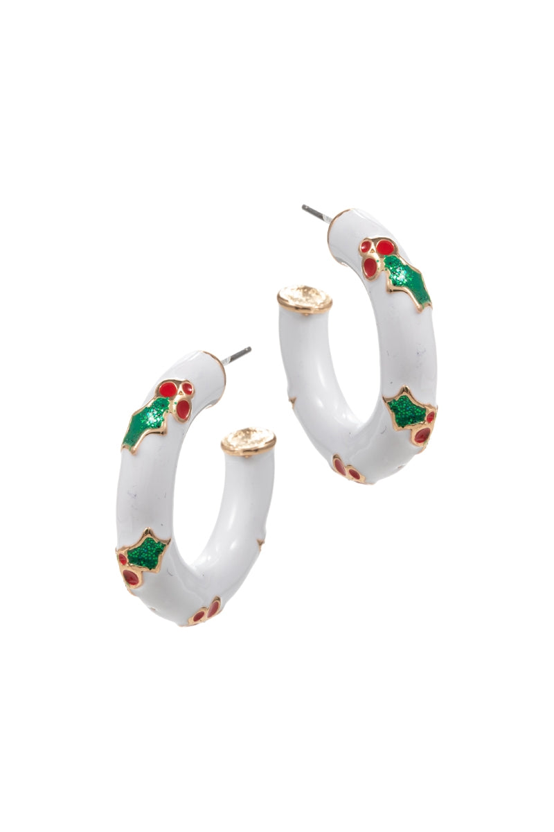Christmas Holly Leaved Round Shaped Hoop Earrings