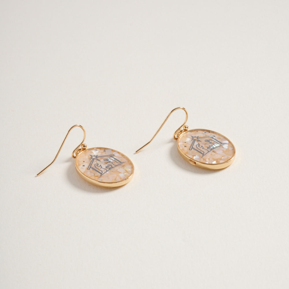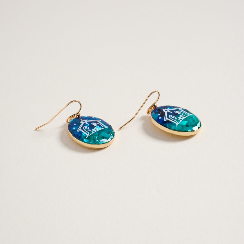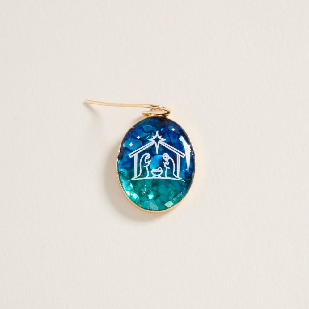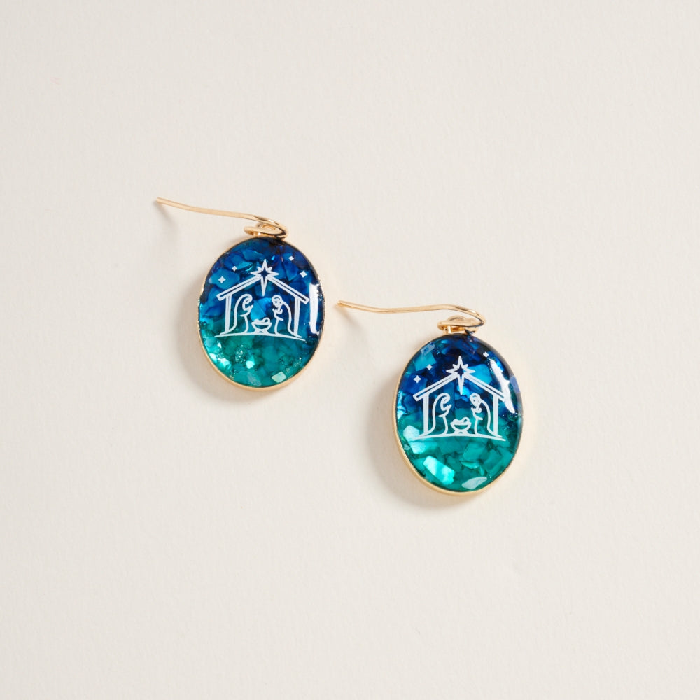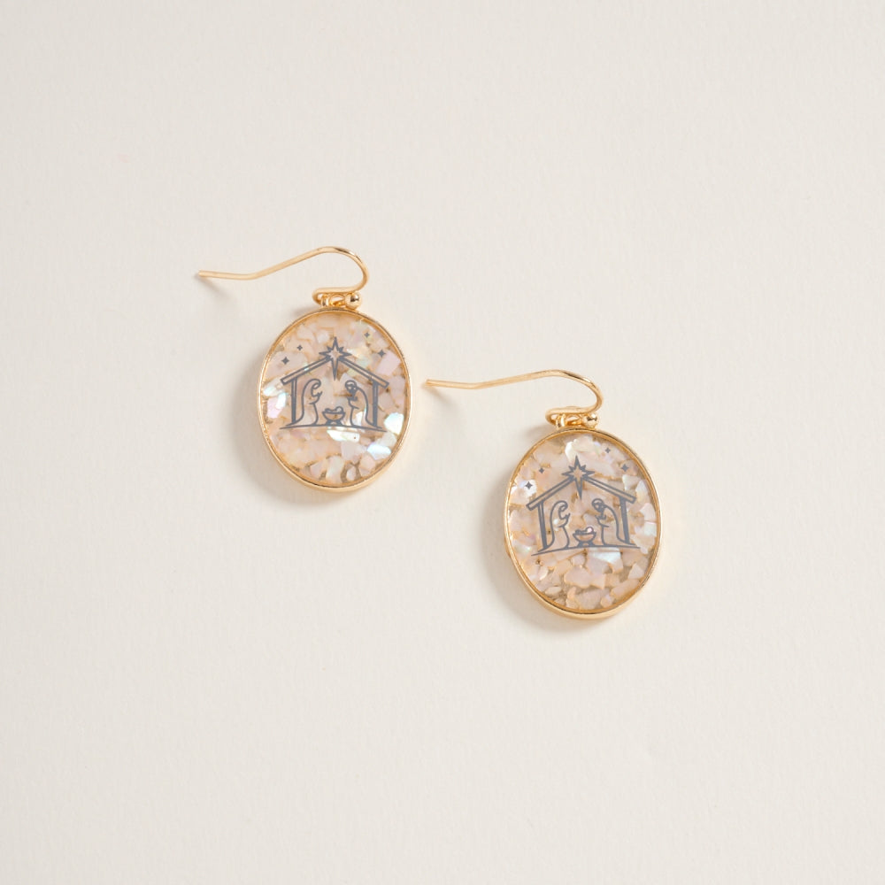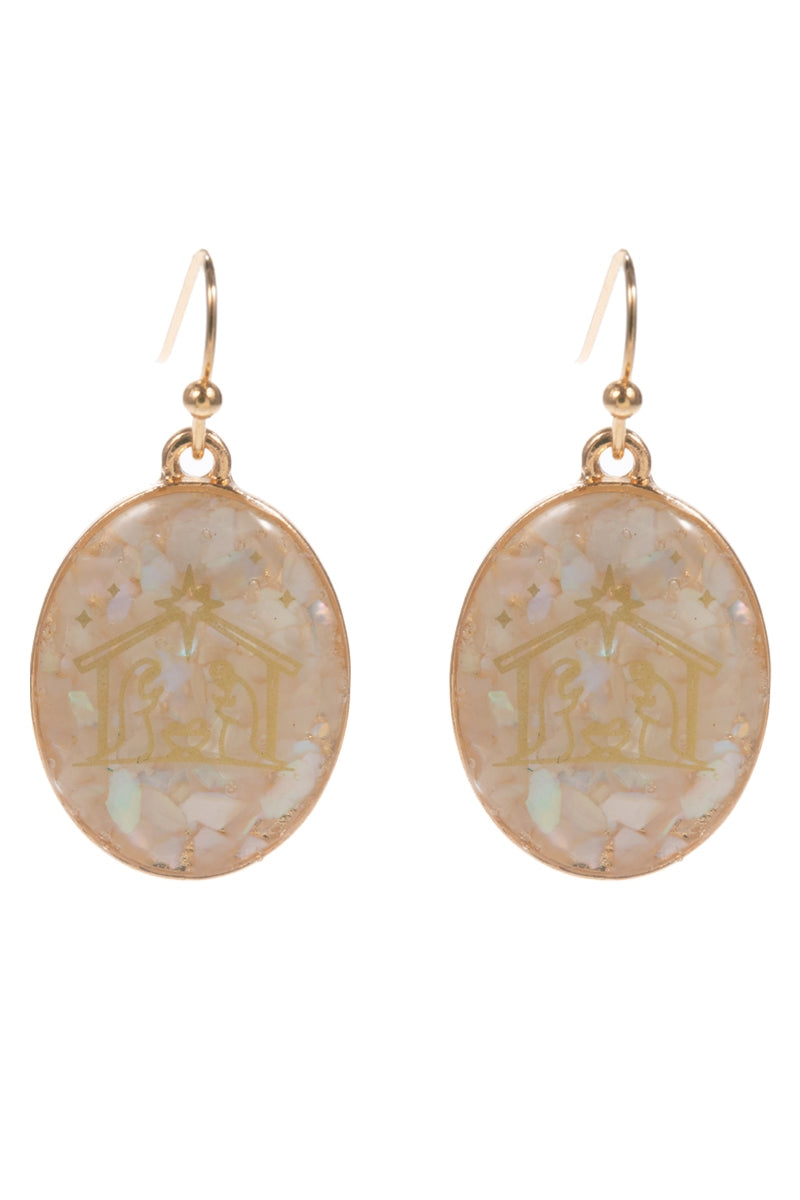 Christmas Nativity Religious Oval Hook Earrings