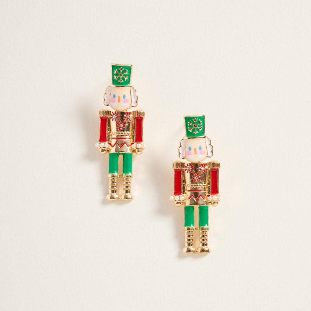 Add a festive twist to your holiday look with these Nutcracker post earrings featuring pearl accents. Classic charm with a touch of elegance.