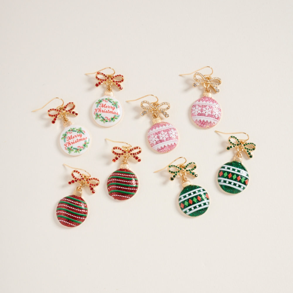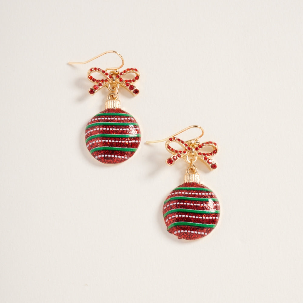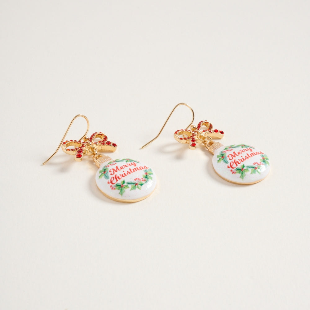 Christmas Ornament Ribbon Rhinestone Hook Earrings