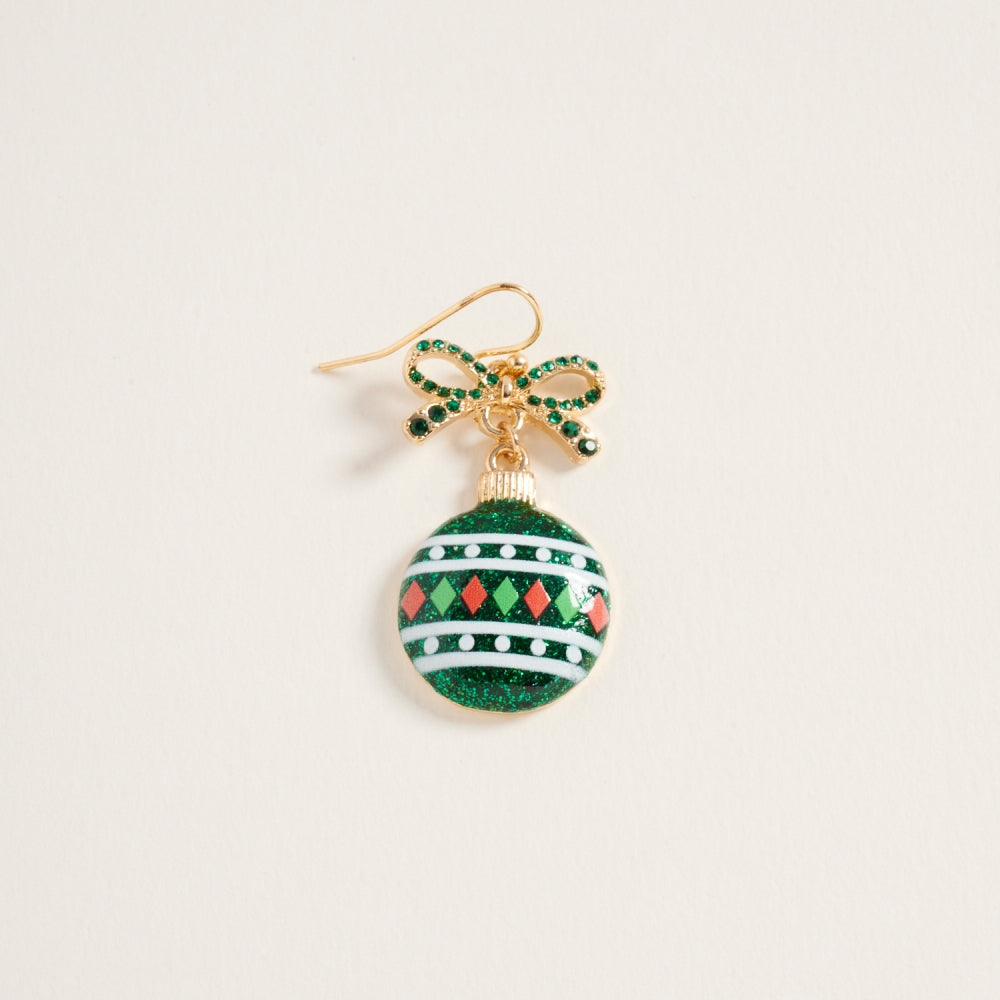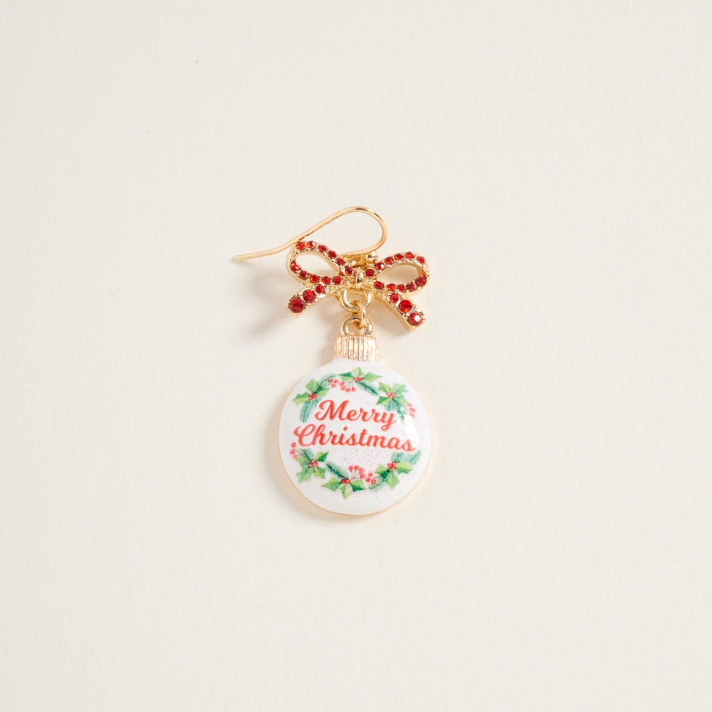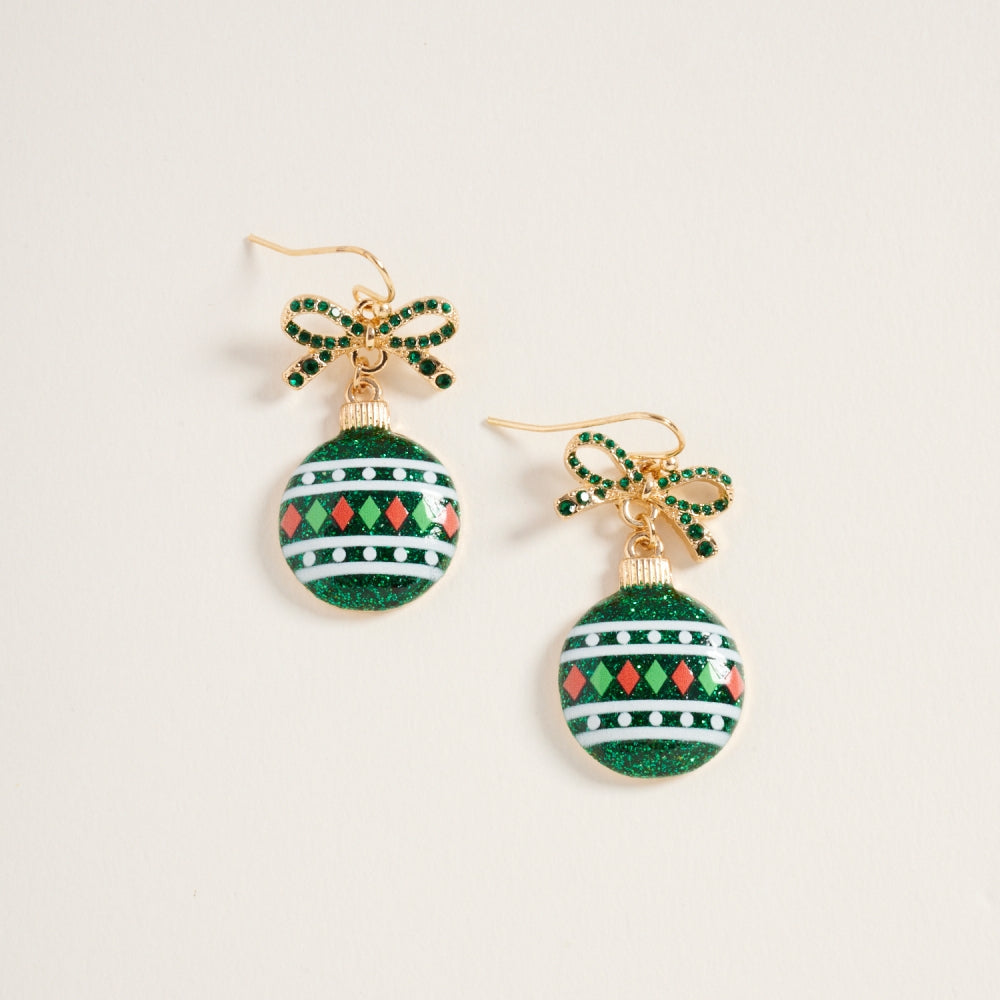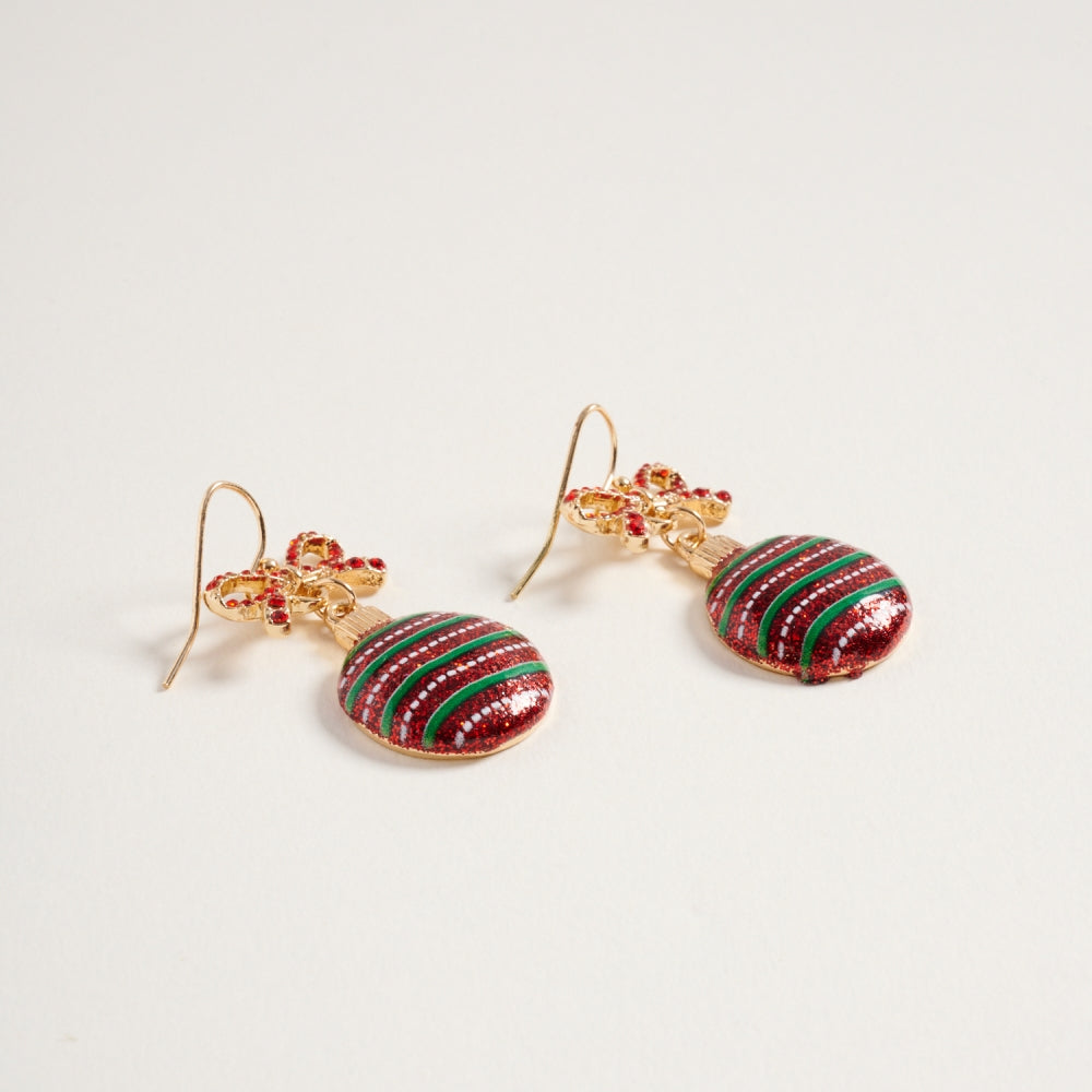 Christmas Ornament Ribbon Rhinestone Hook Earrings