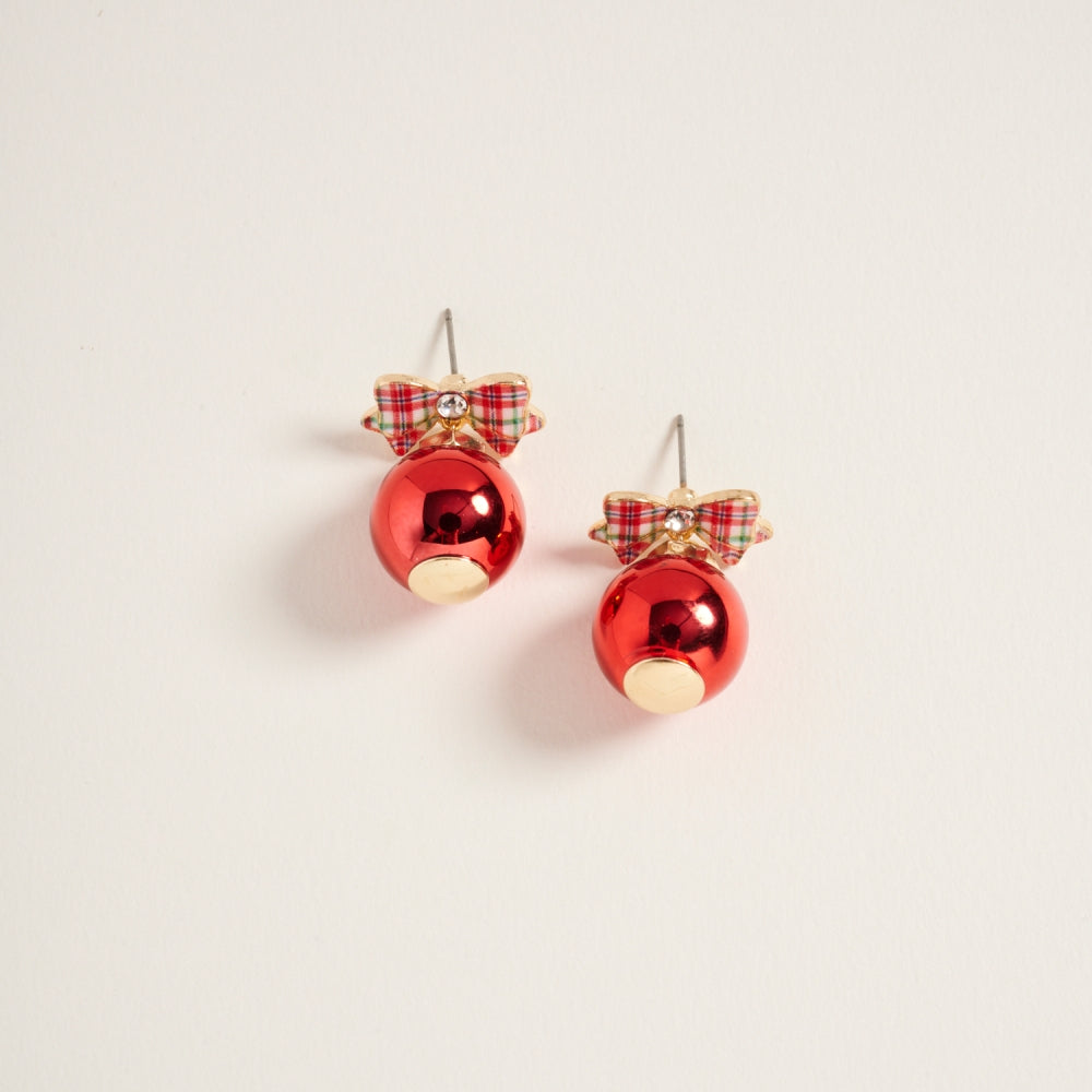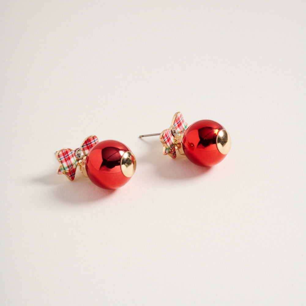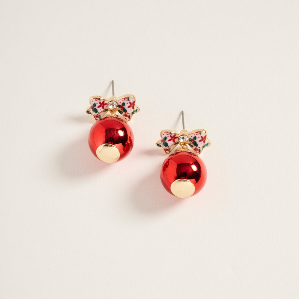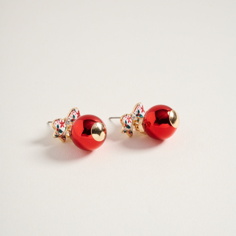 Christmas Ornament with Pattern Bow Post Earrings