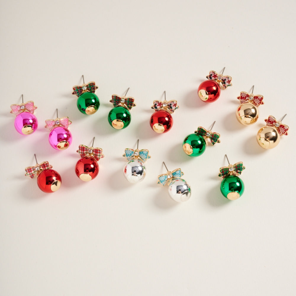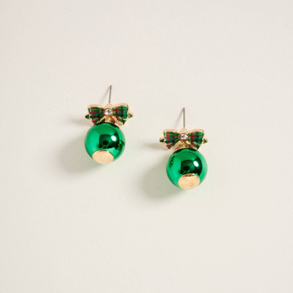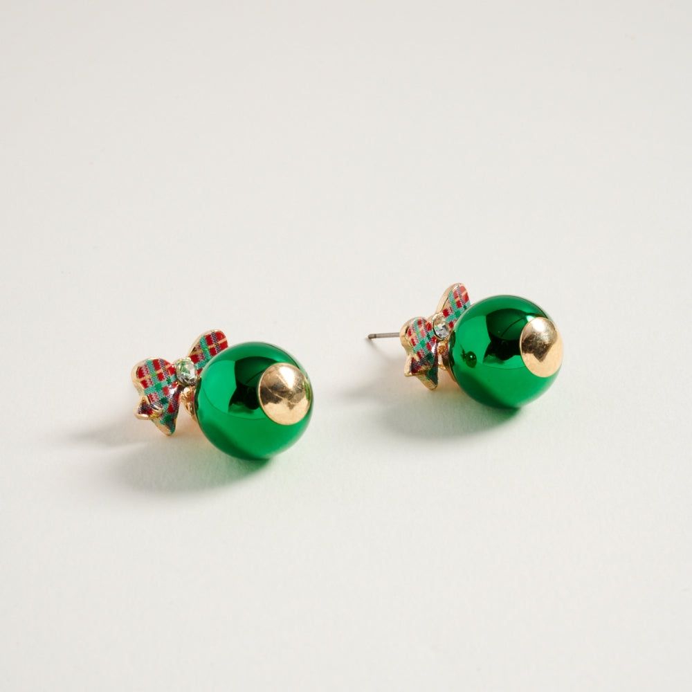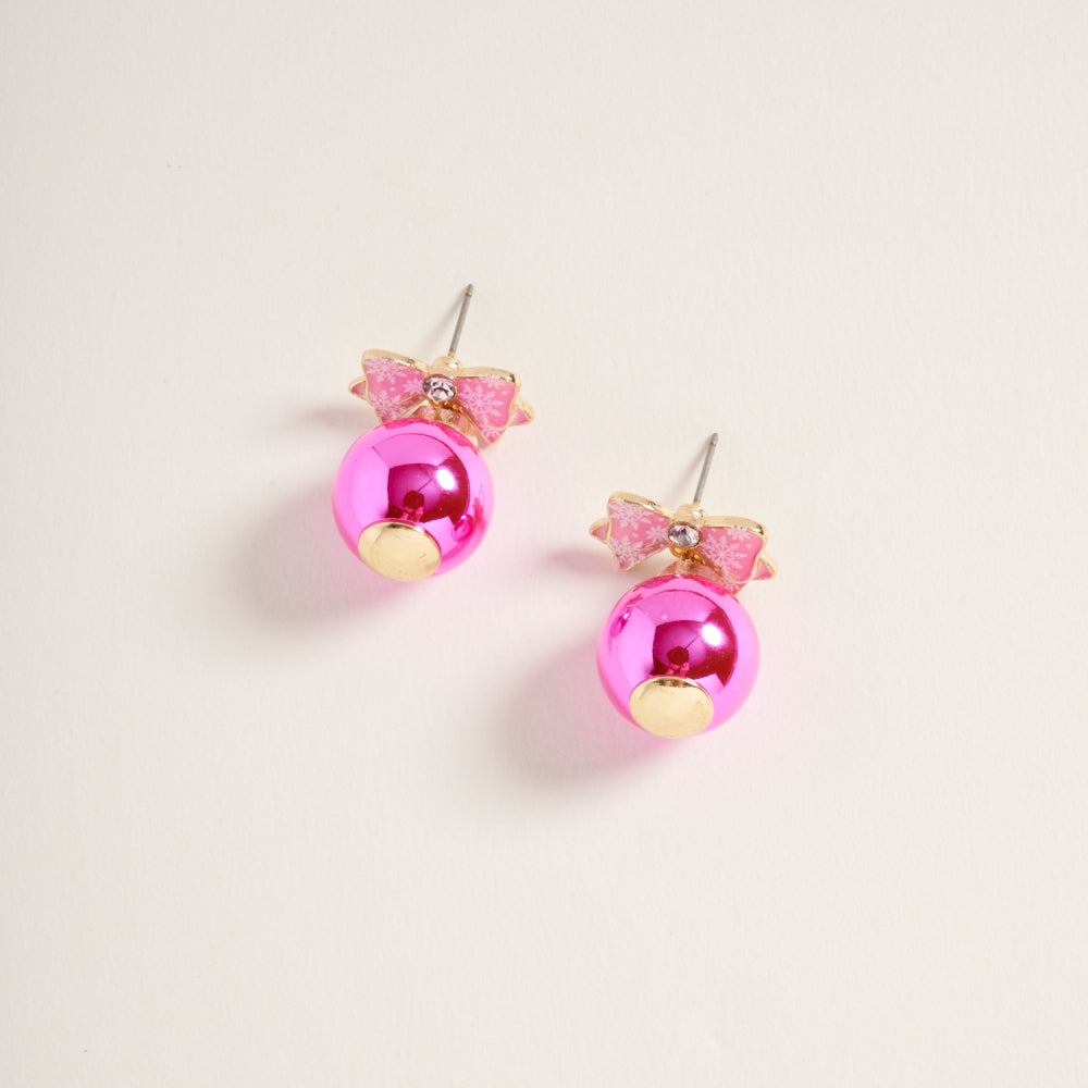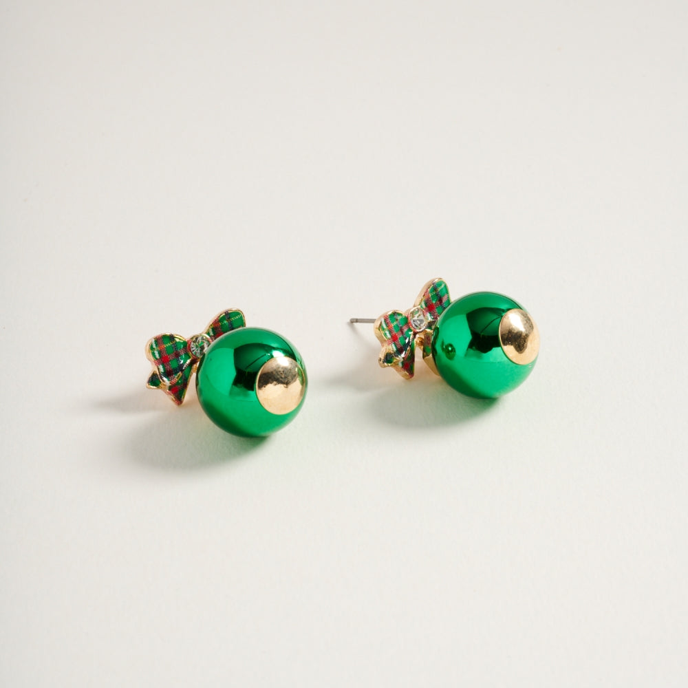 Christmas Ornament with Pattern Bow Post Earrings