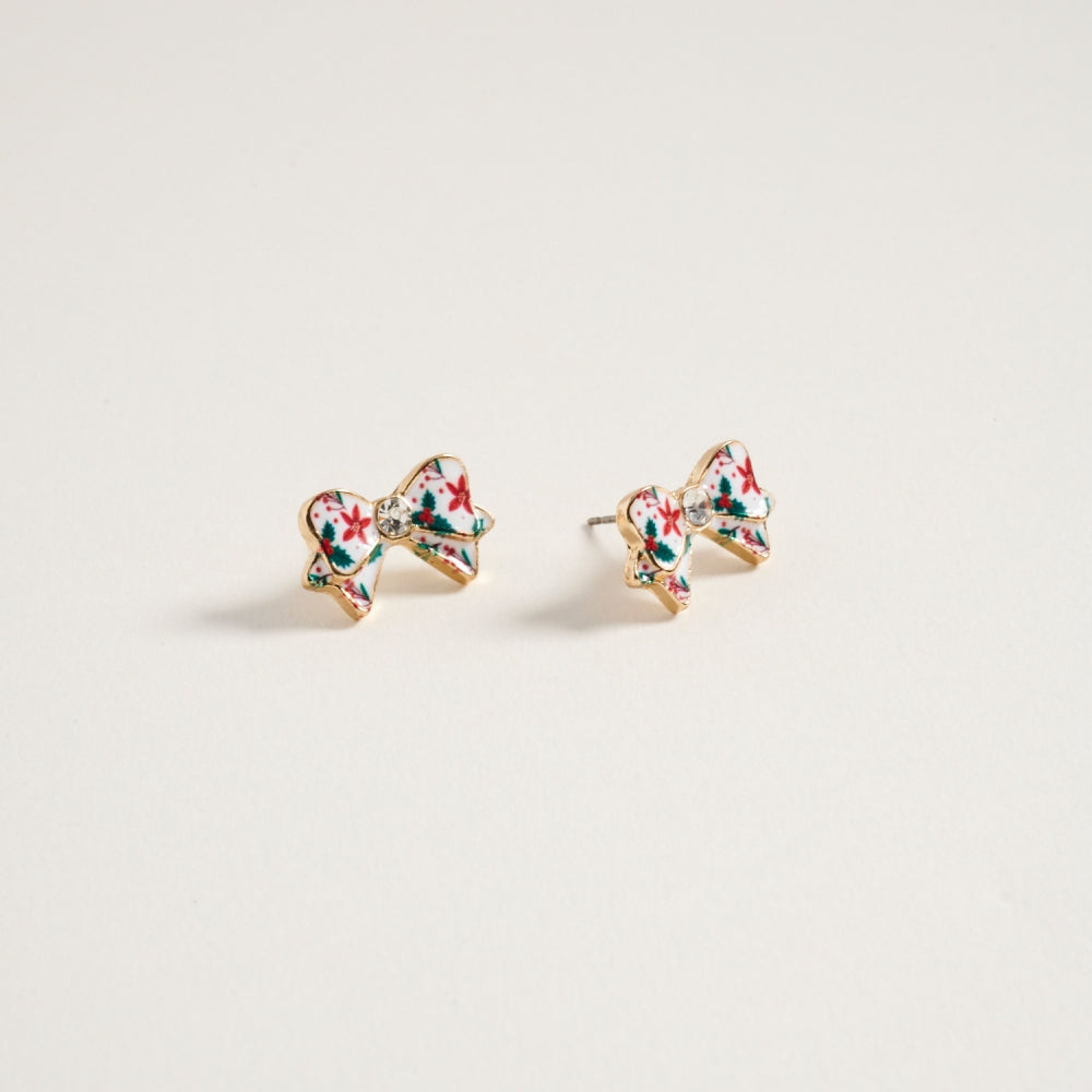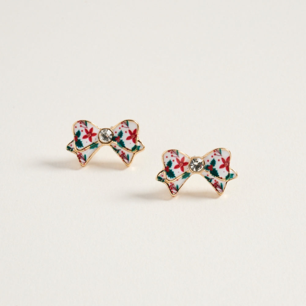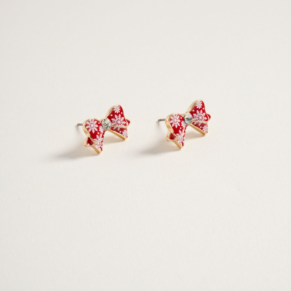 Designed with a holiday ribbon motif and rhinestone accents, these earrings bring the perfect balance of whimsy and elegance.