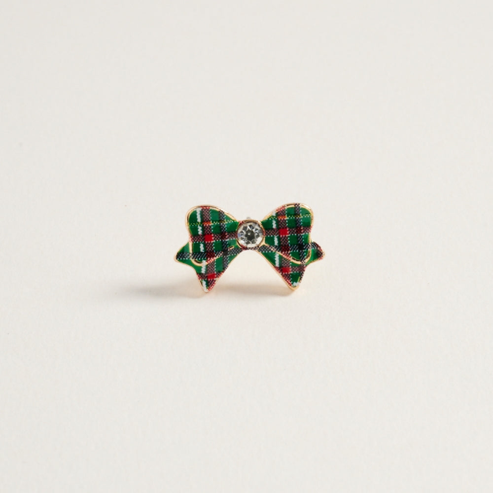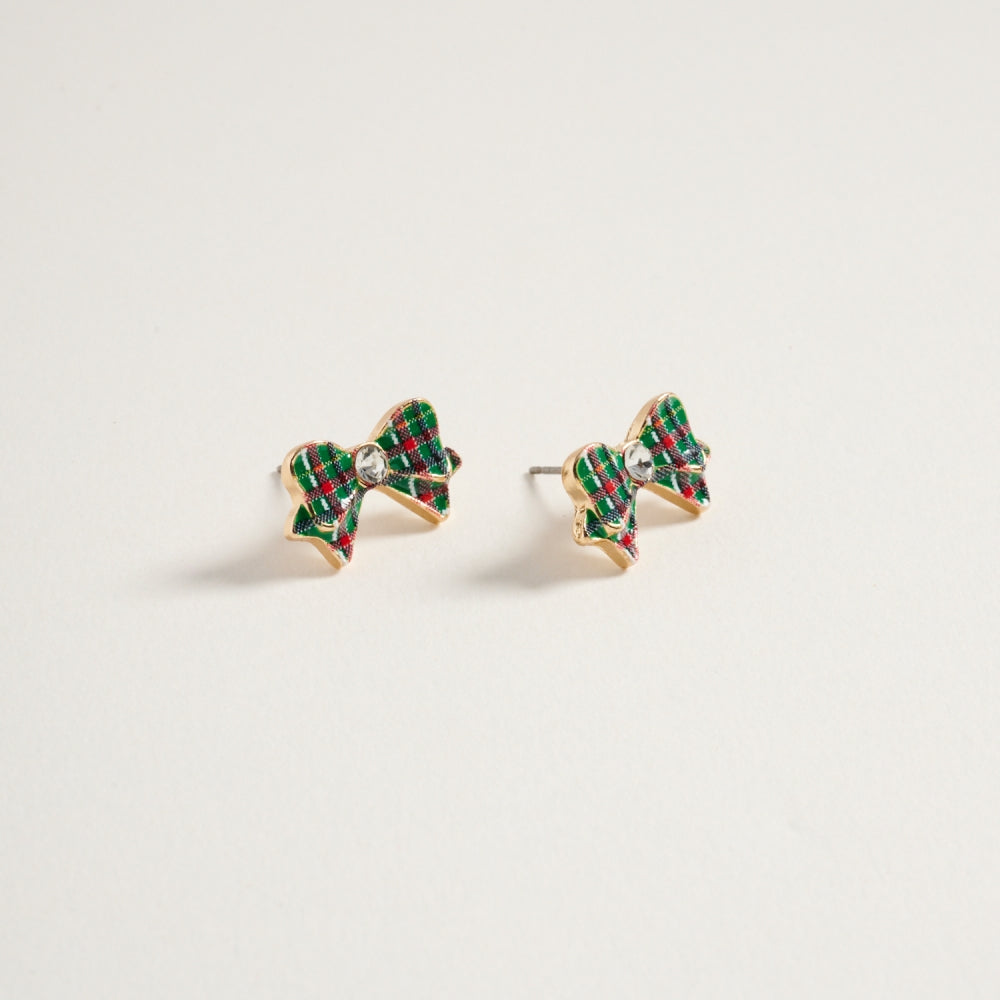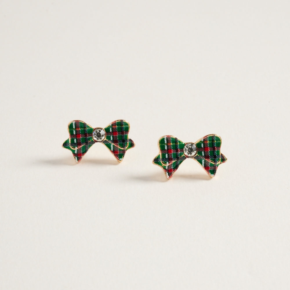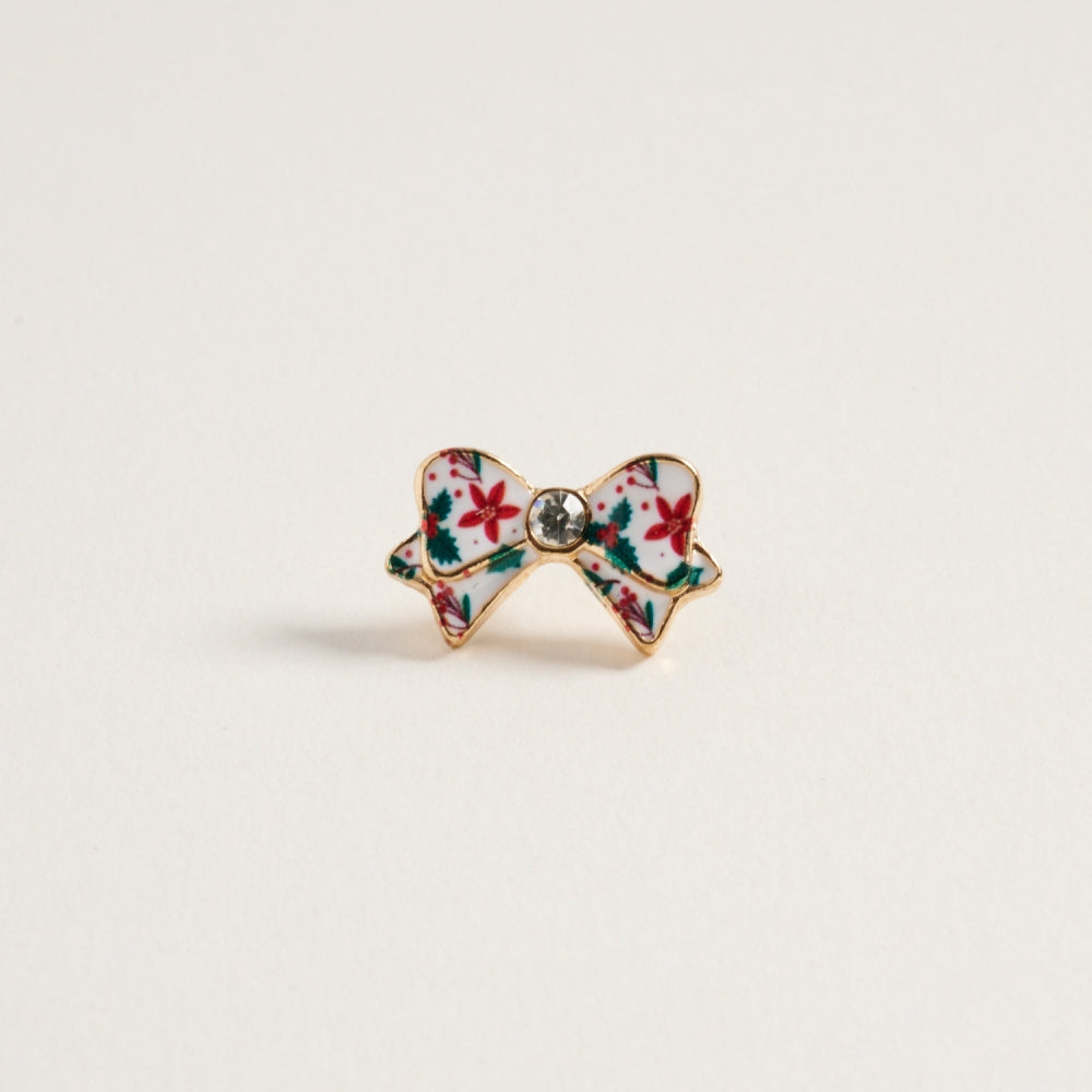 Designed with a holiday ribbon motif and rhinestone accents, these earrings bring the perfect balance of whimsy and elegance.