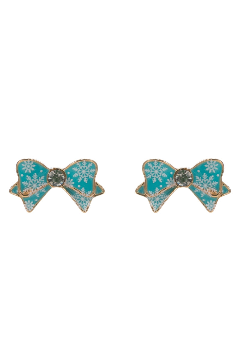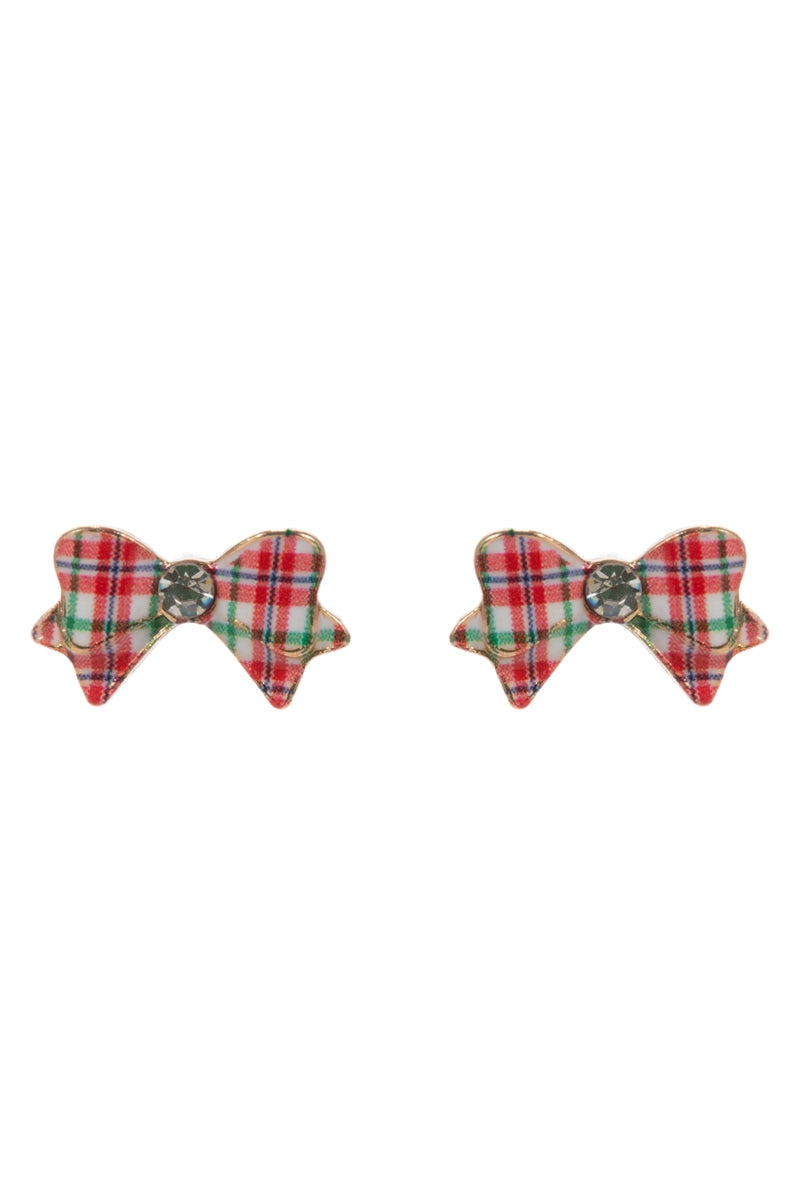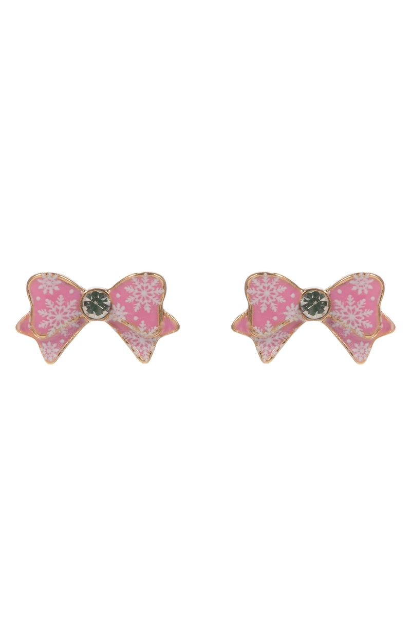 Christmas Pattern Ribbon Rhinestone Post Earrings