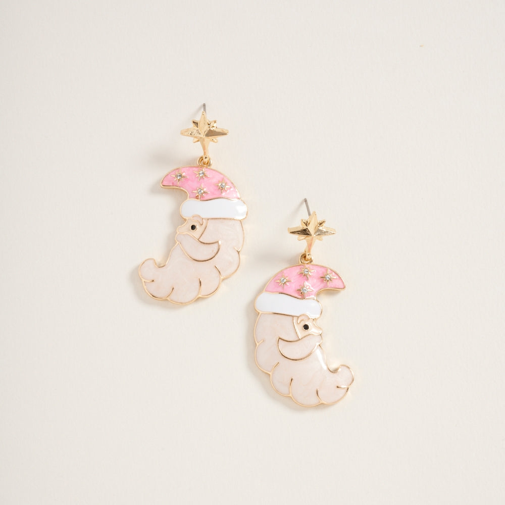 Santa shines bright in these crescent moon-shaped post earrings, offering a fun and festive way to show your holiday spirit.
