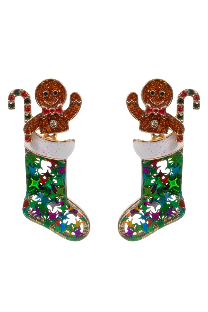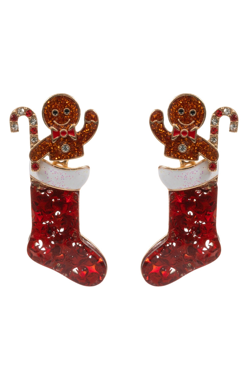 Christmas Stocking with Gingerbread Man Earrings