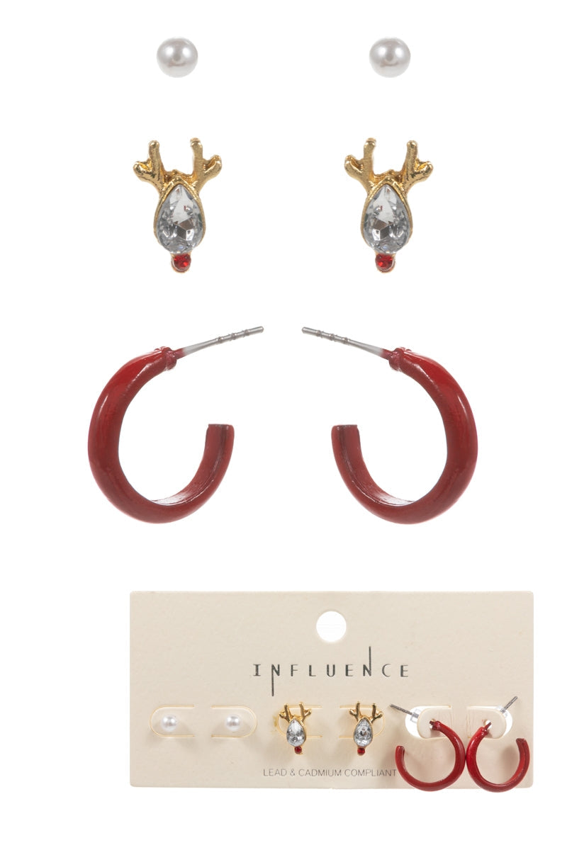 Celebrate the season with a festive trio of earrings. This Christmas themed set includes three unique designs ready to add cheer to any look.