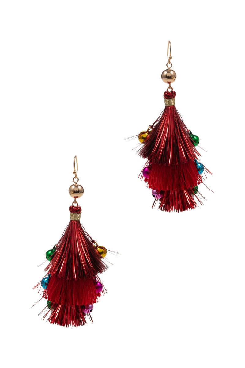 Celebrate the season in style with tree shaped tassel earrings featuring tiny ornaments. A playful pick for holiday parties or gift tables.