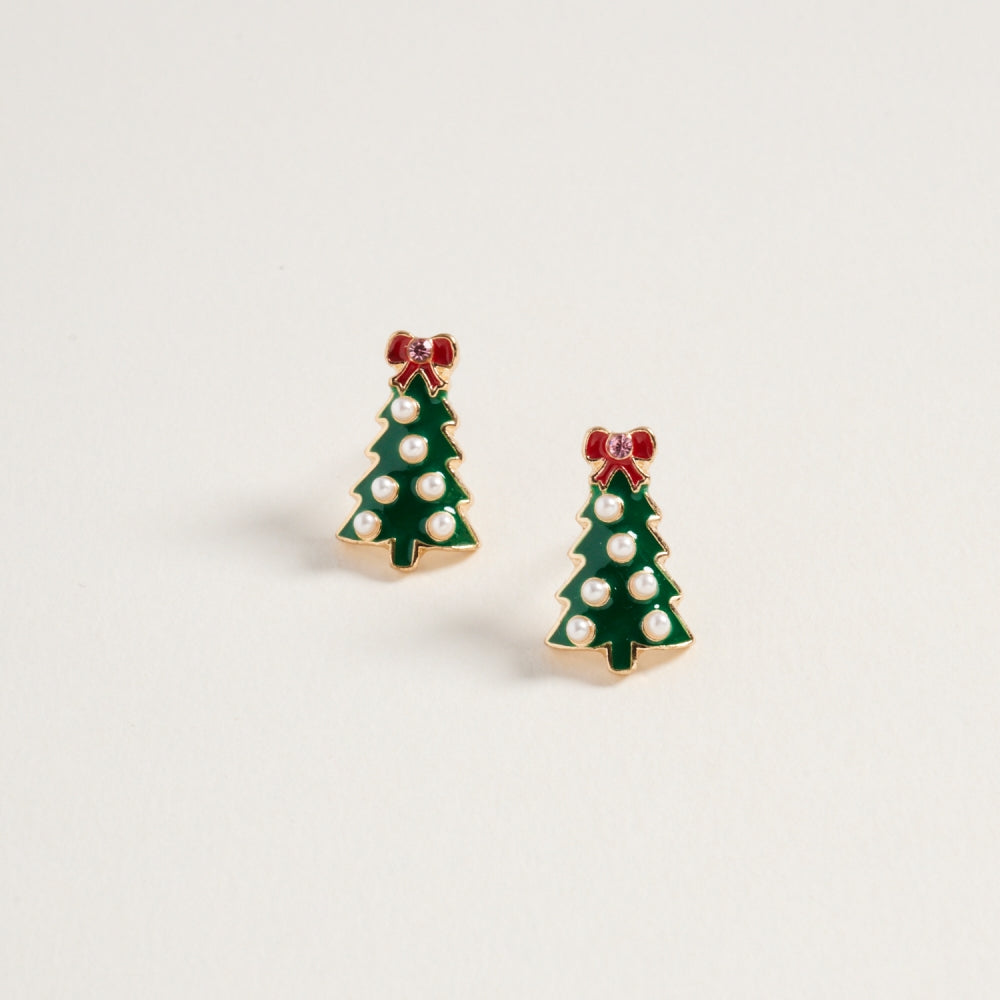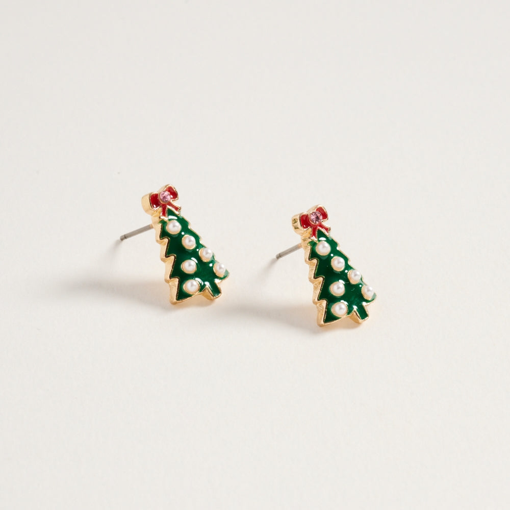 Christmas Tree with Pearl Rhinestone Post Earrings