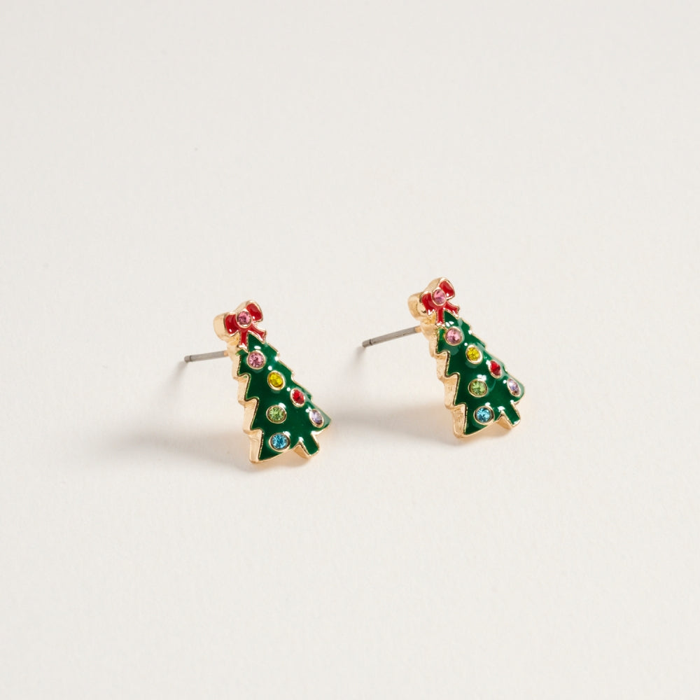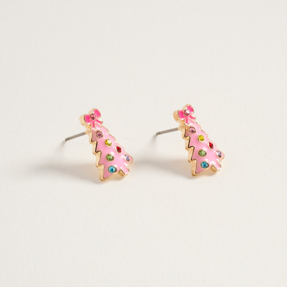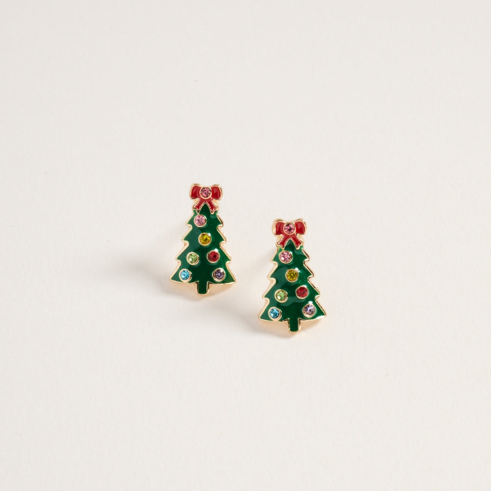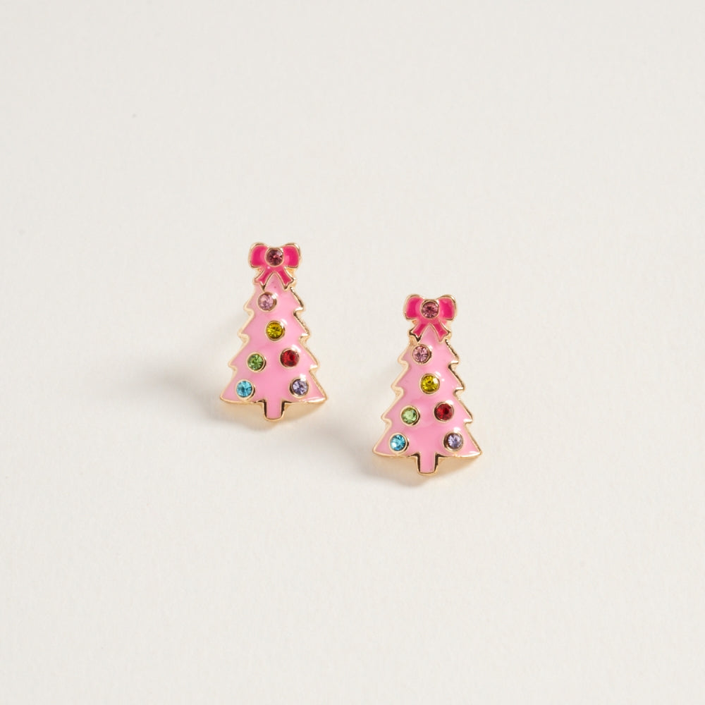 Light up the season with these post earrings featuring a twinkling Christmas tree design embellished with rhinestones and elegant pearl accents.