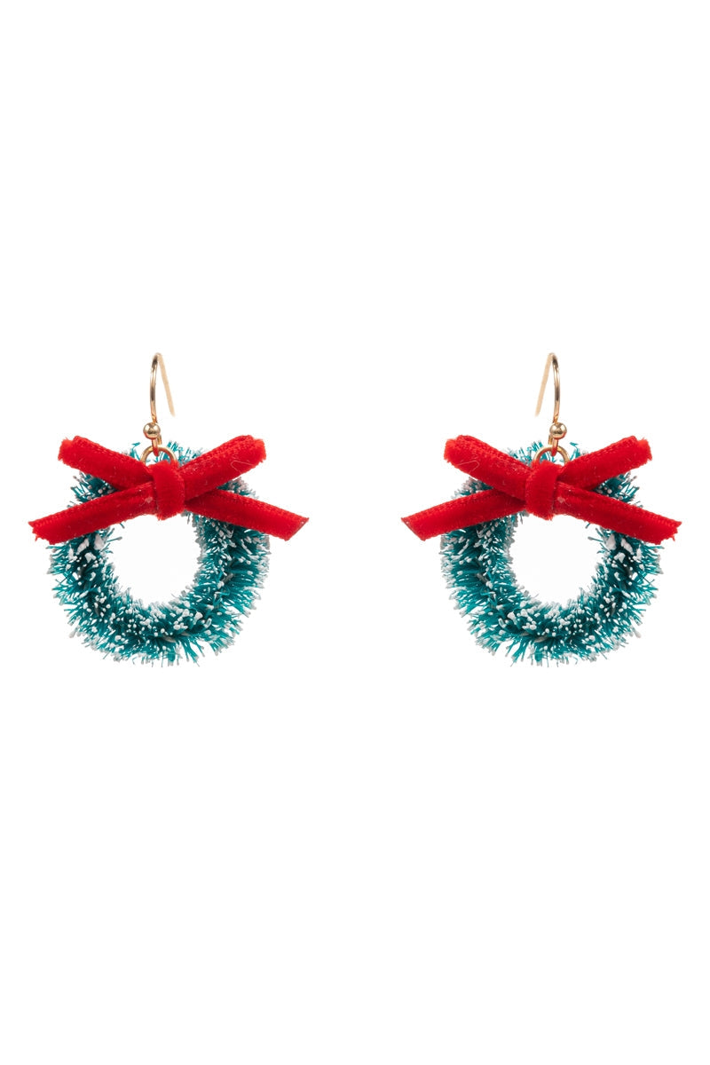 Christmas Wreath with Ribbon Hook Earrings Jewelry