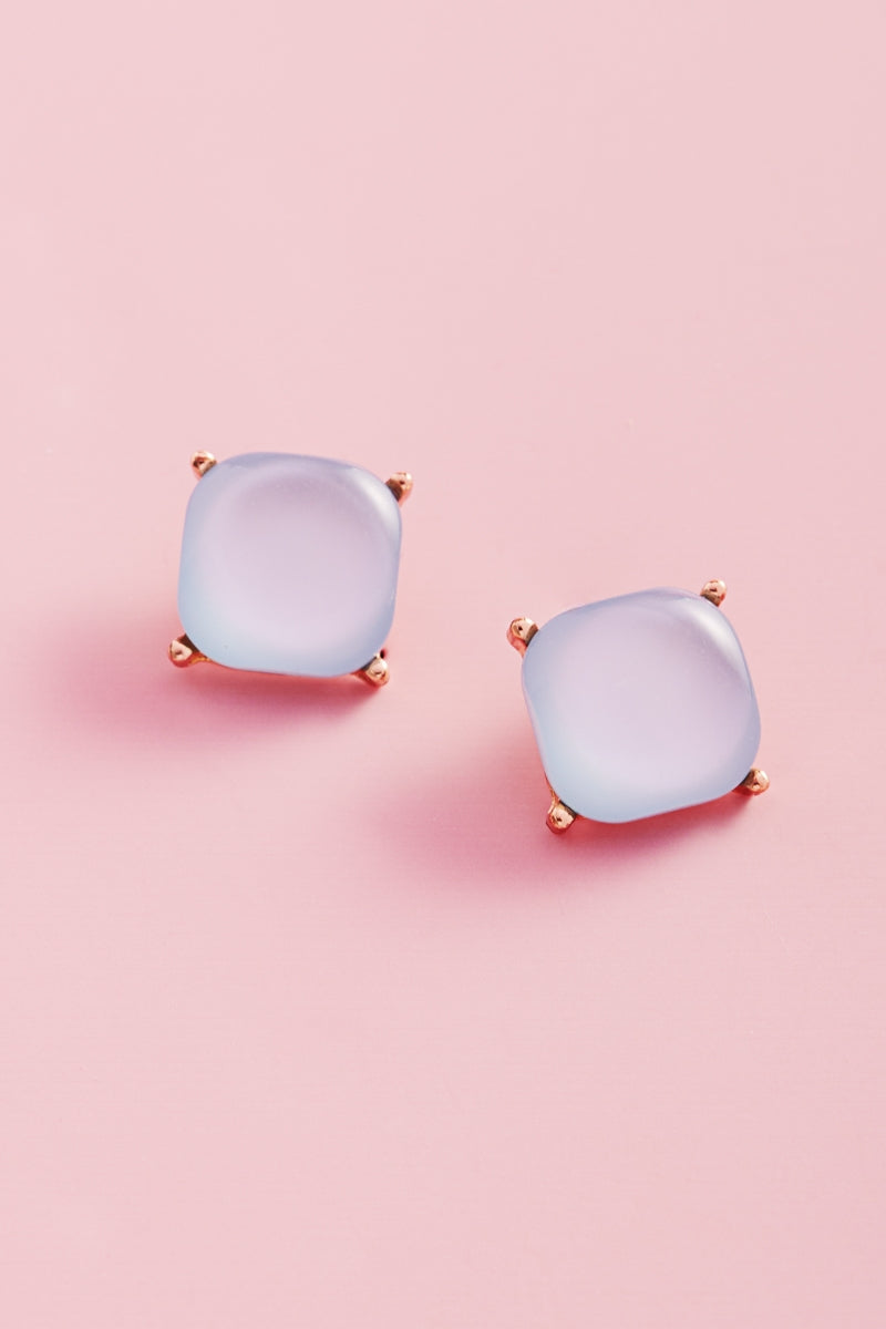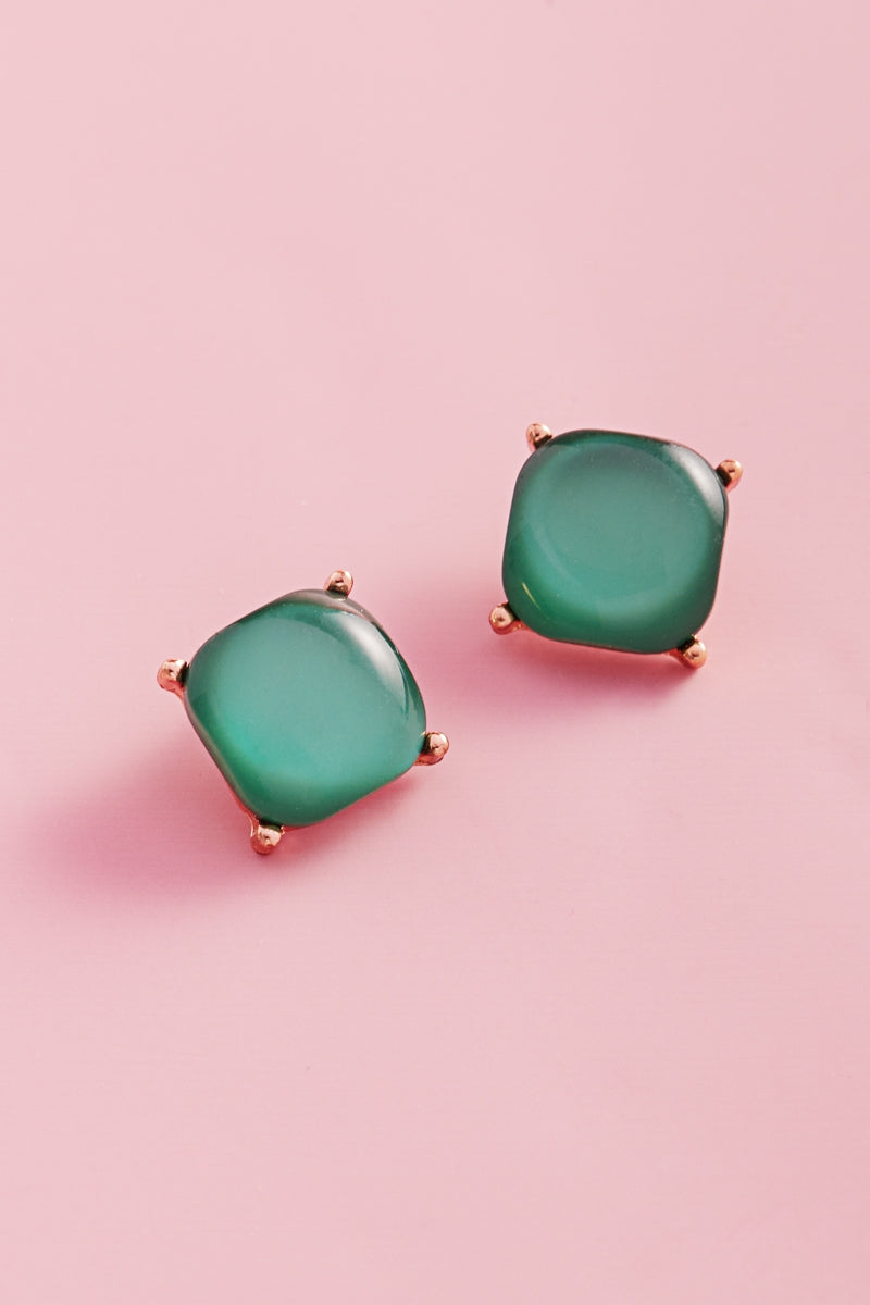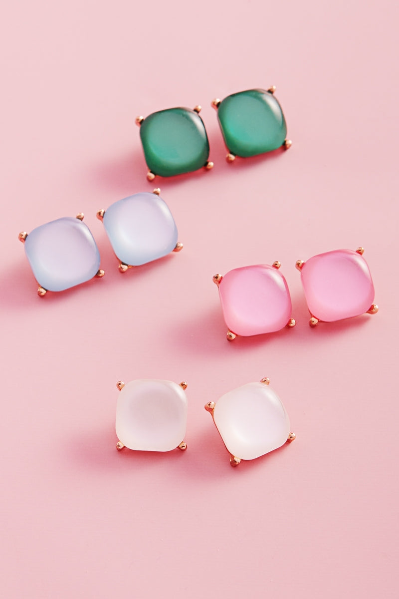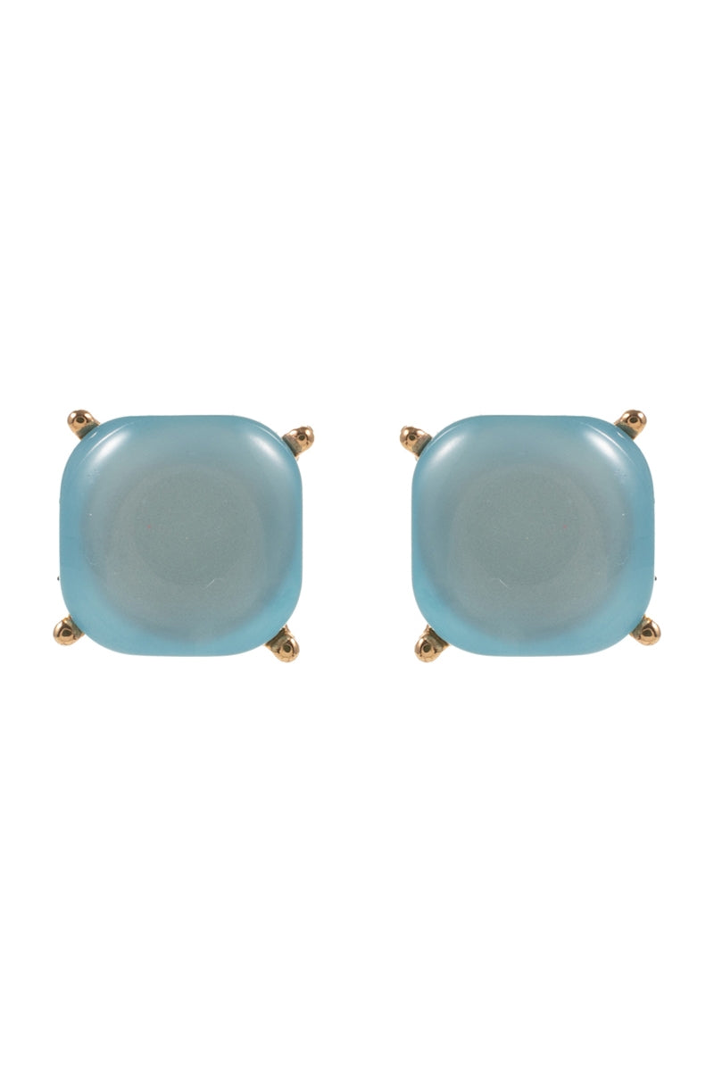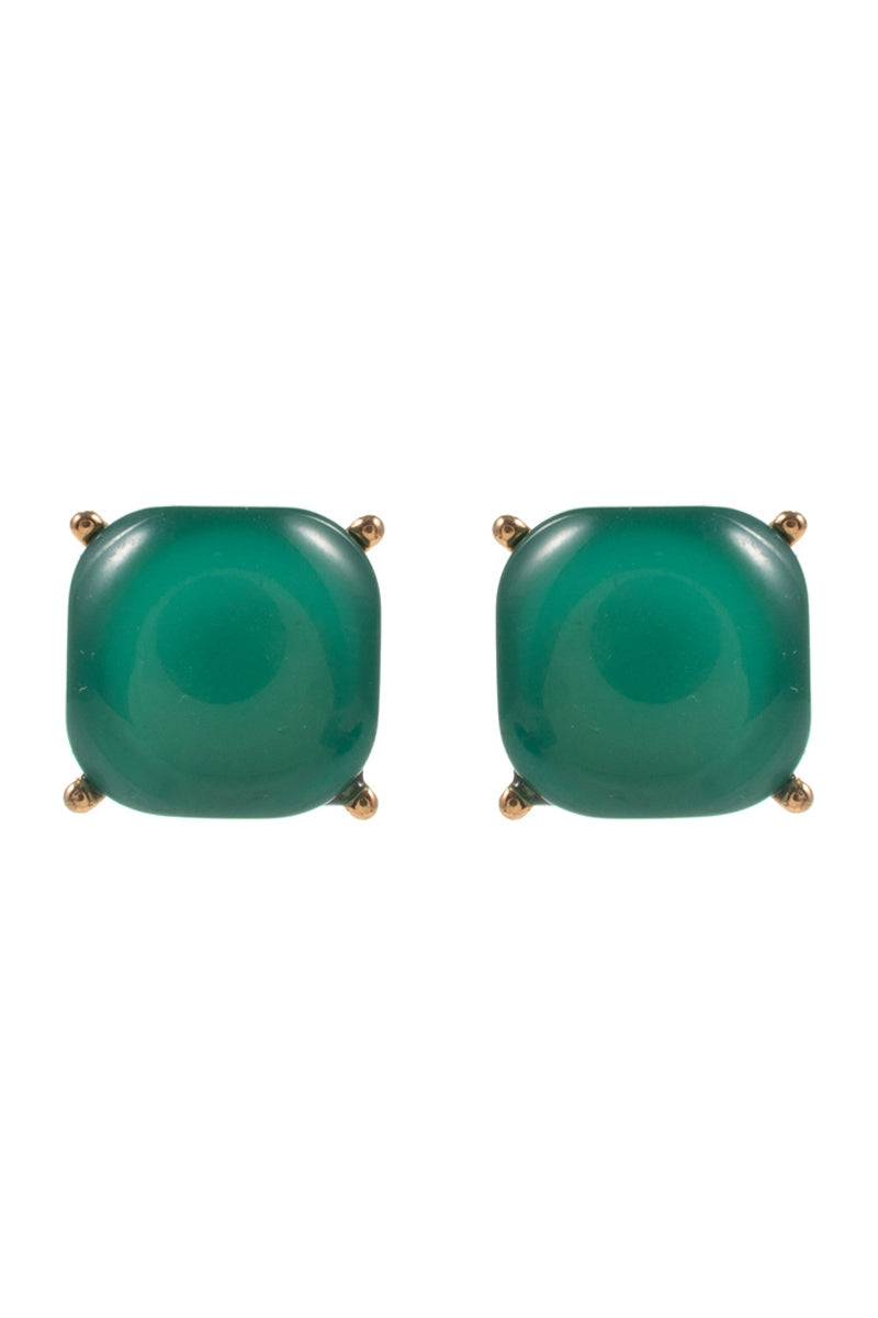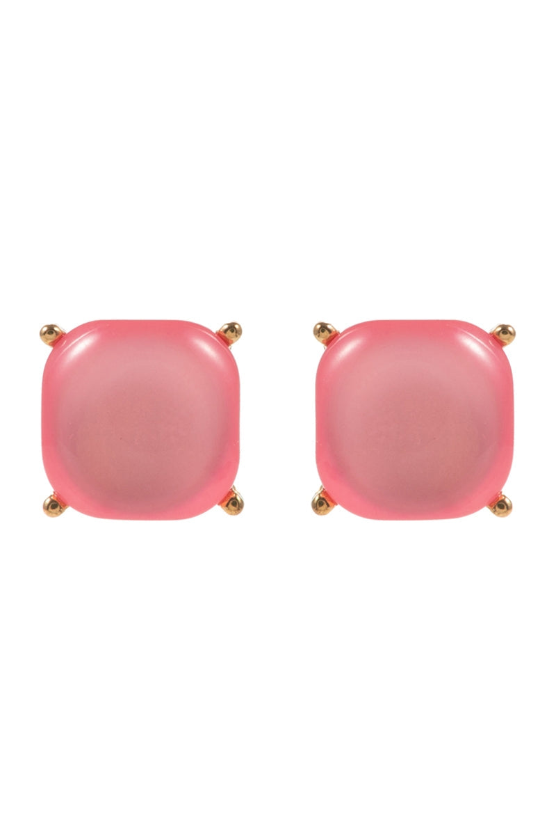 Color Square Faux Cats Eye Stones Post Earrings