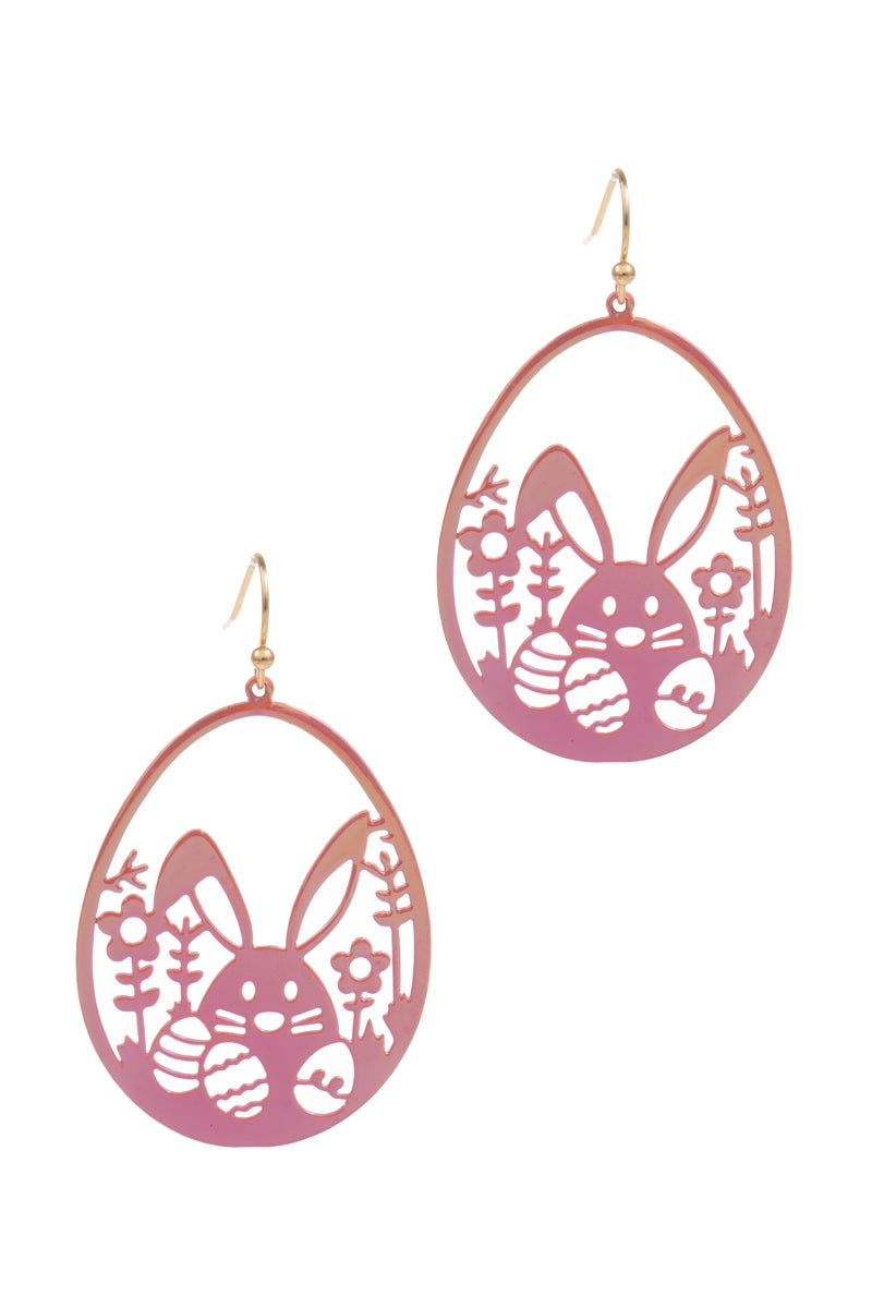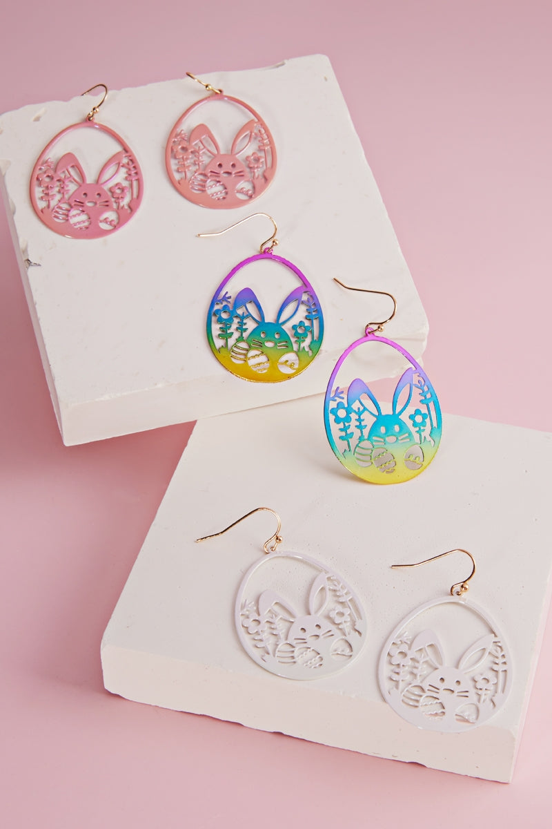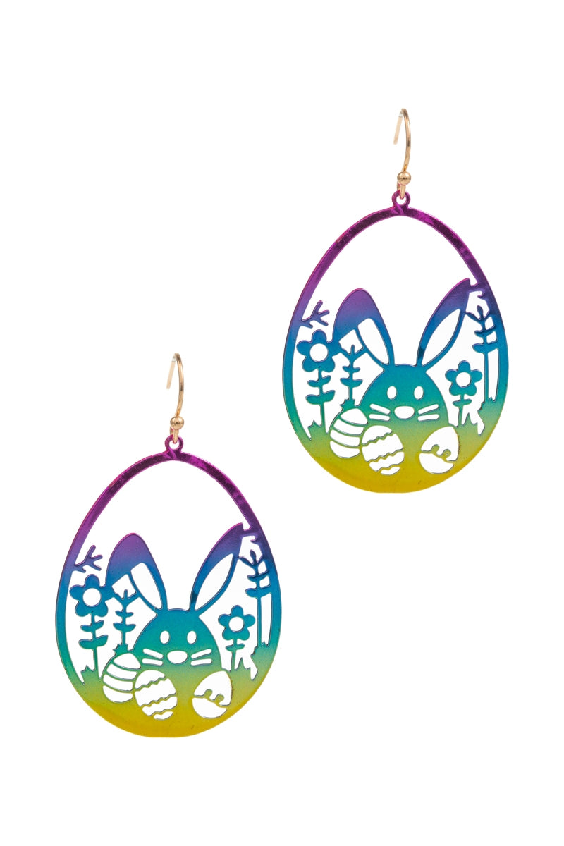 Colorful Easter Bunny Brass Metal Hook Earrings