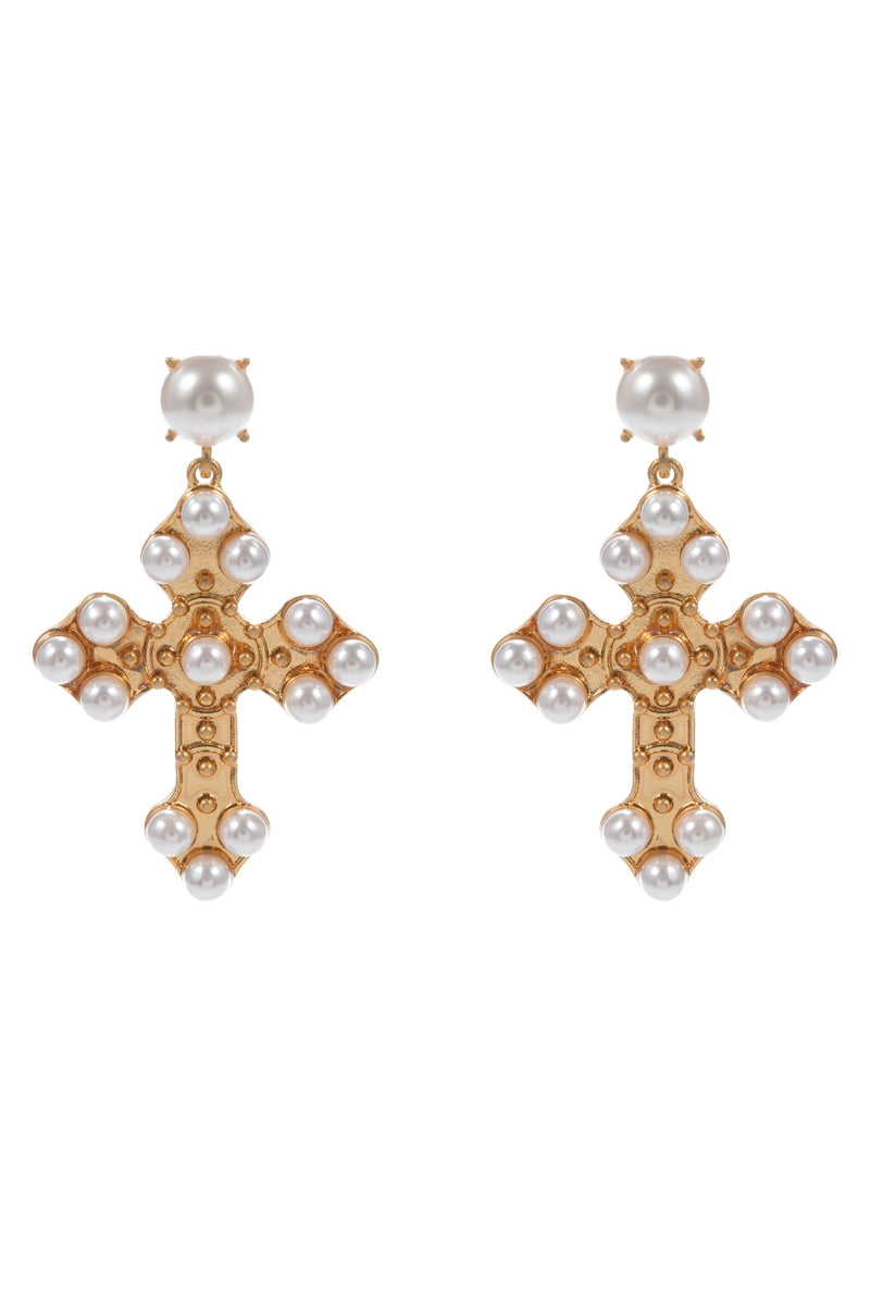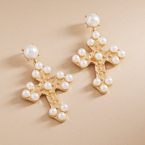 Cross Cream Pearl Hypoallergenic Post Earrings