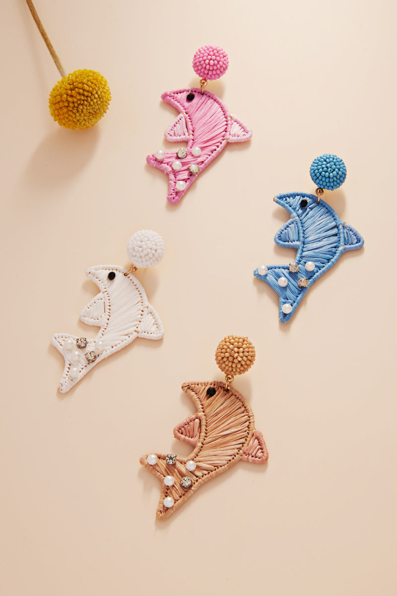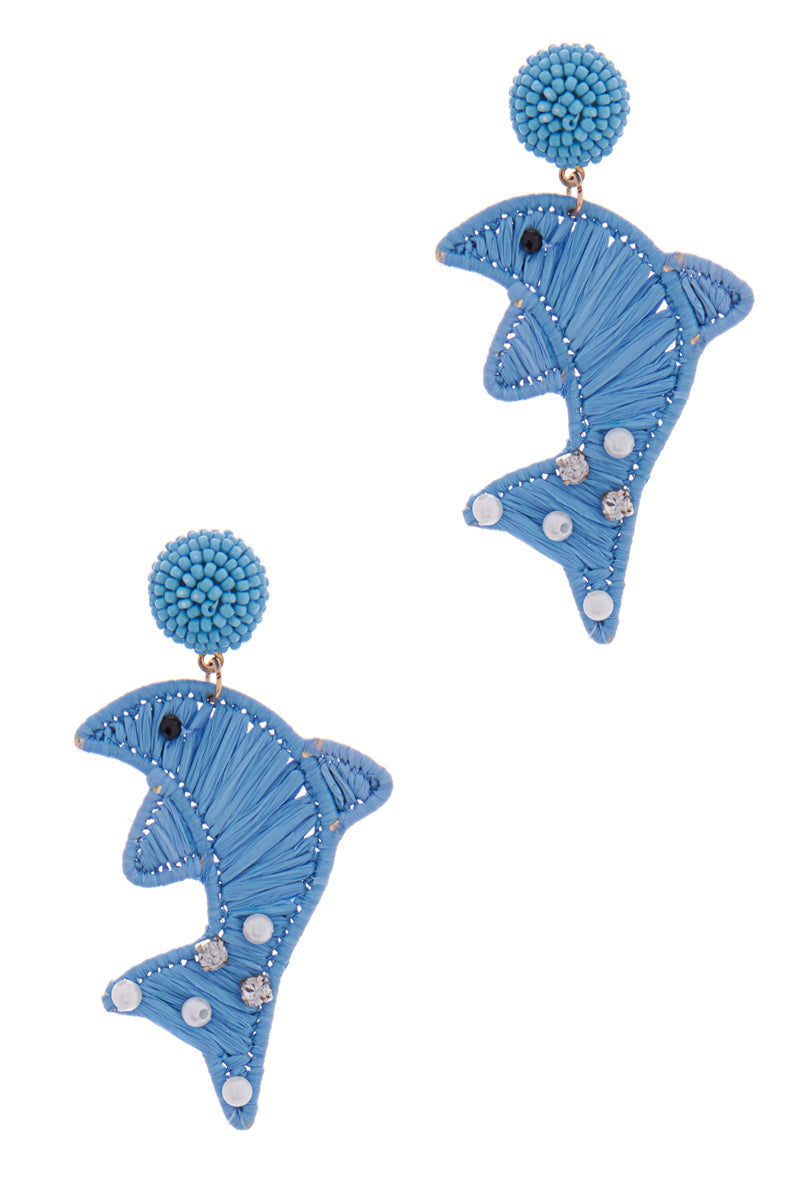 These 2.95 inch dolphin shaped raffia post earrings will add a touch of fun and whimsy to any outfit. Made with high quality materials, they are durable and lightweight.