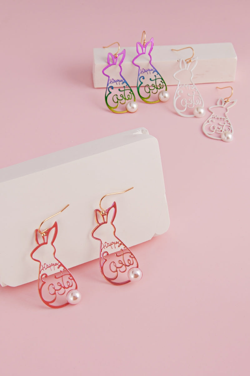 Easter Bunny Brass Metal Hook Earrings