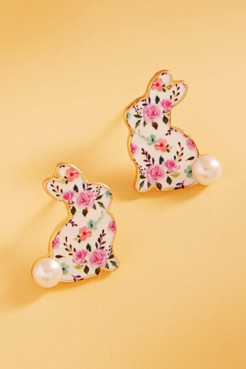 Easter Bunny Enamel Pattern Titanium Post Earrings