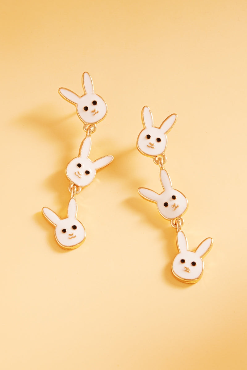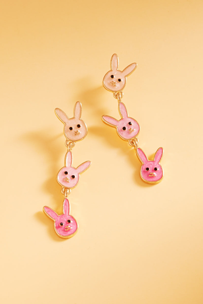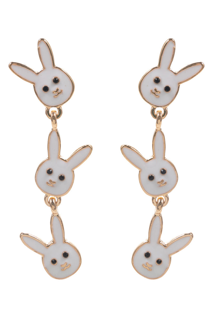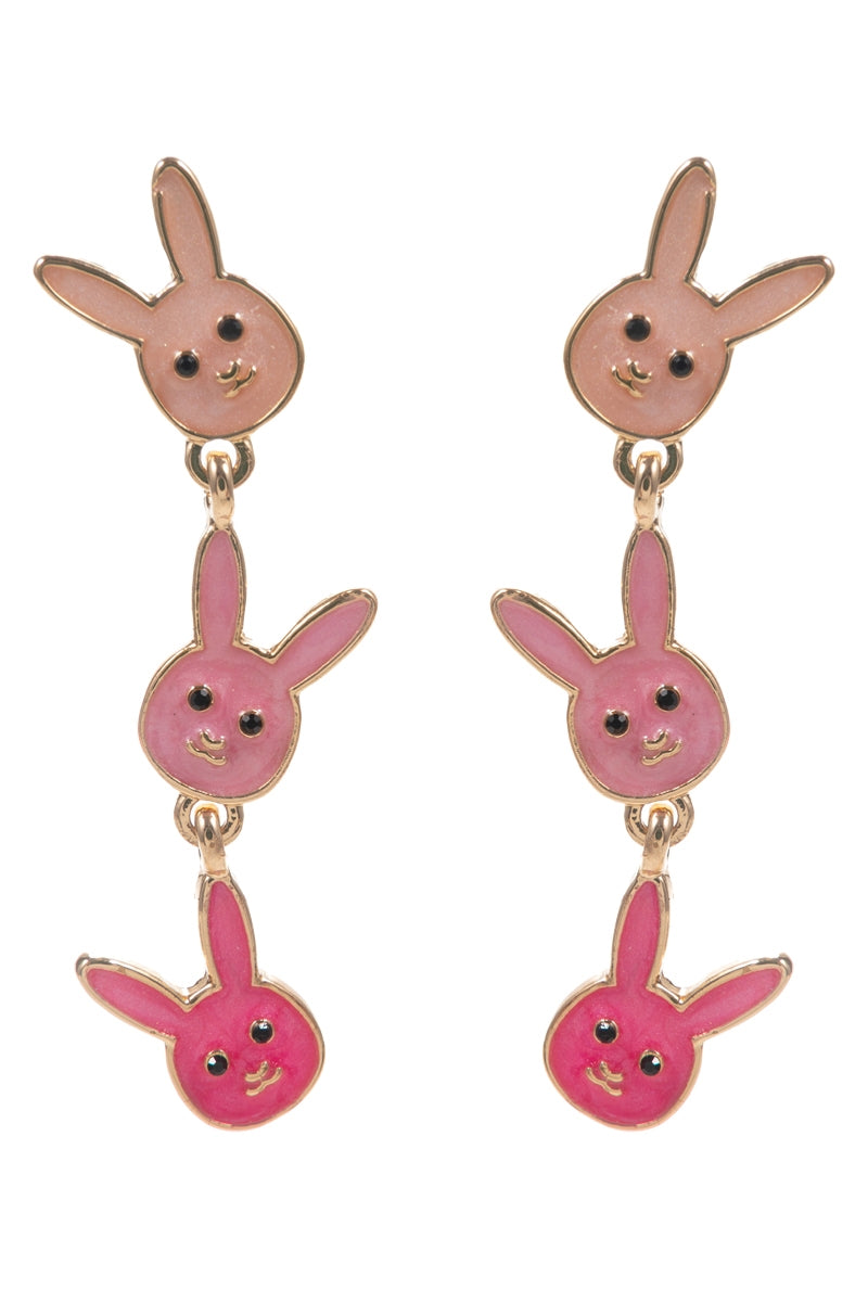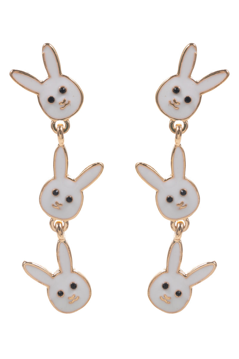 Easter Bunny Pearlized Enamel 3 Drop Post Earrings