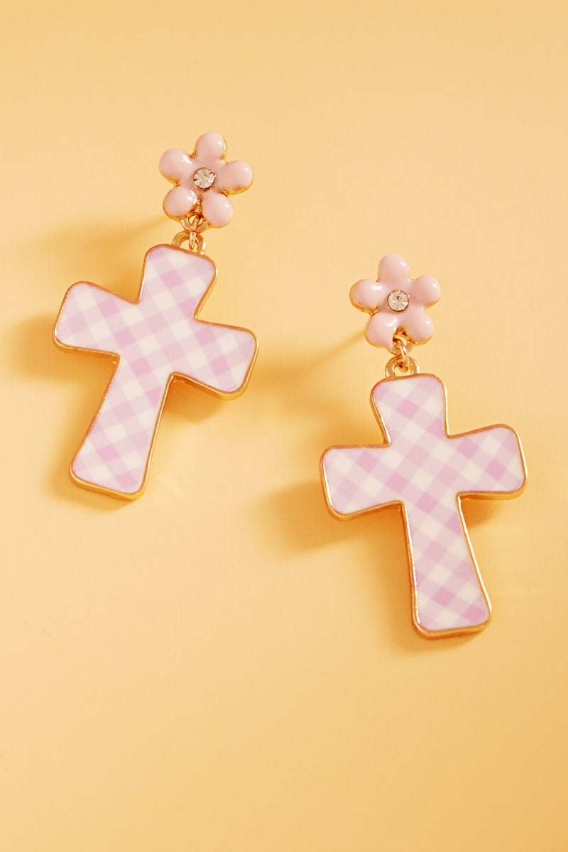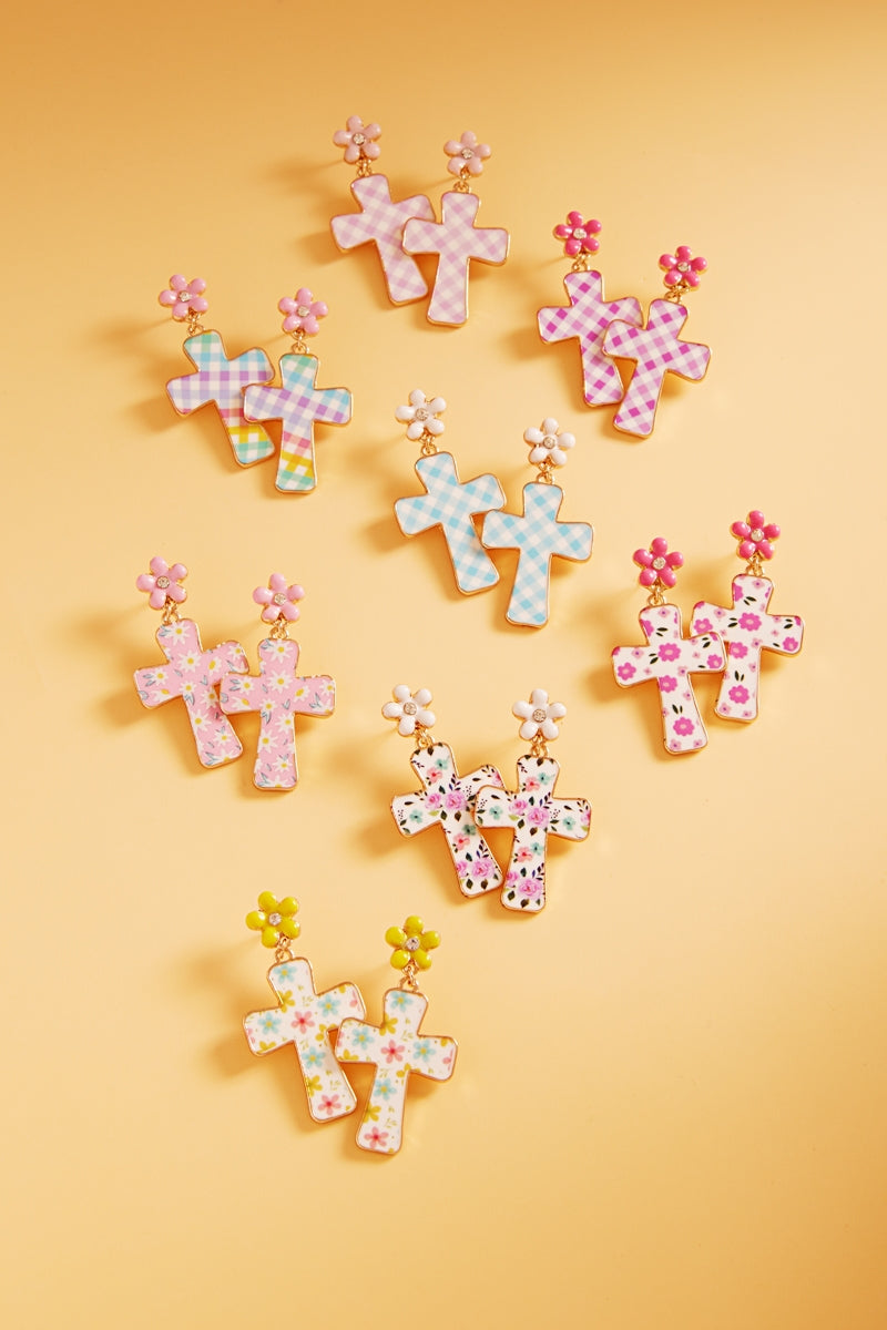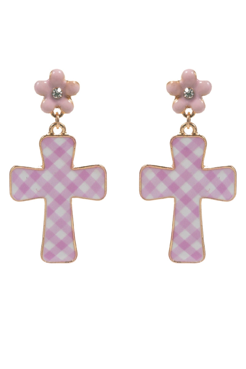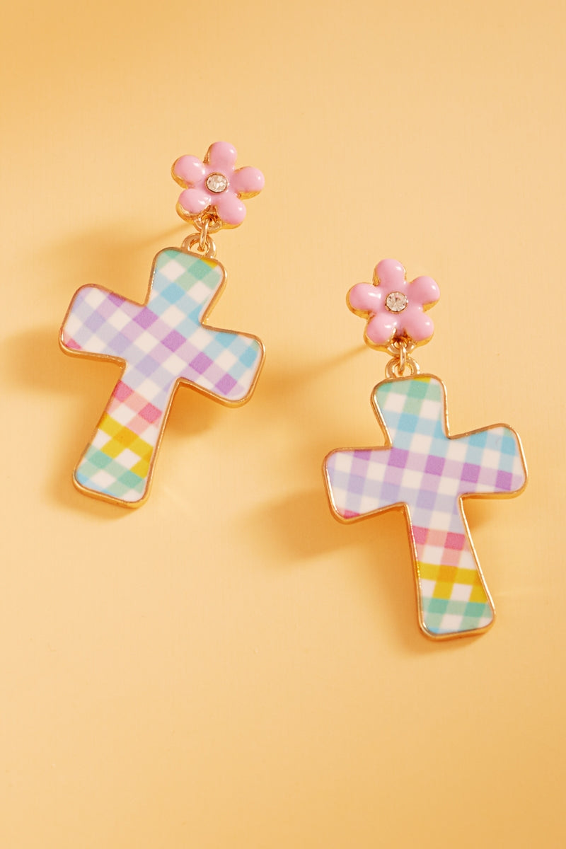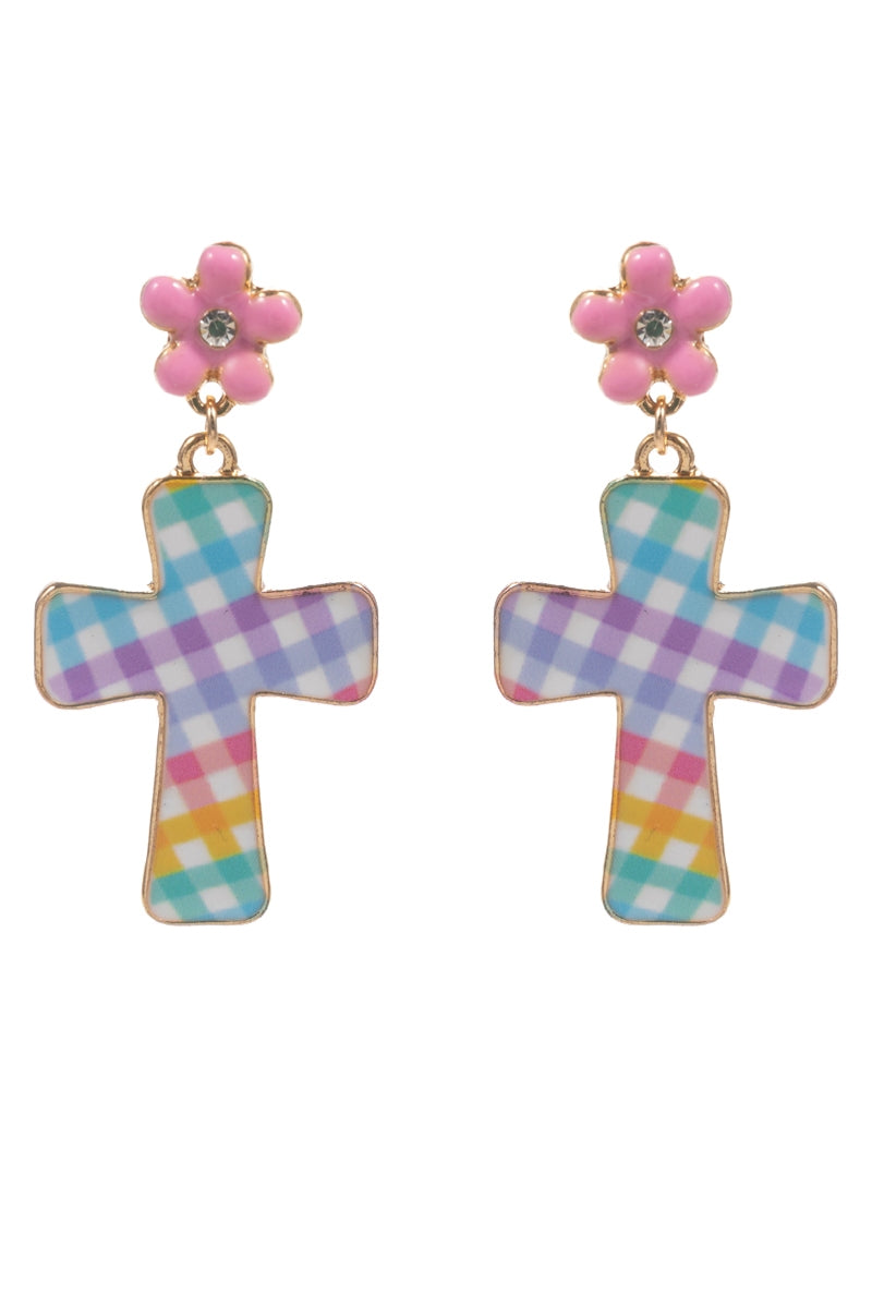Easter Cross Enamel Pattern Titanium Post Earrings