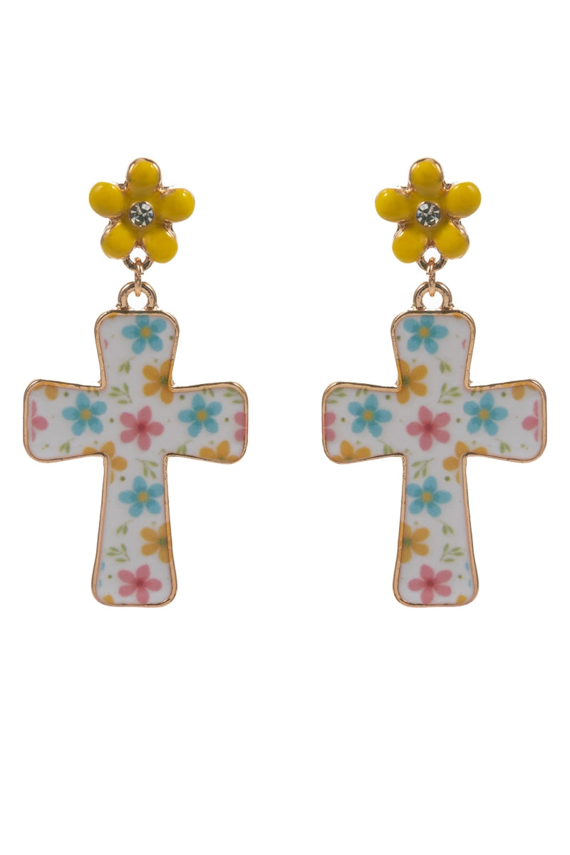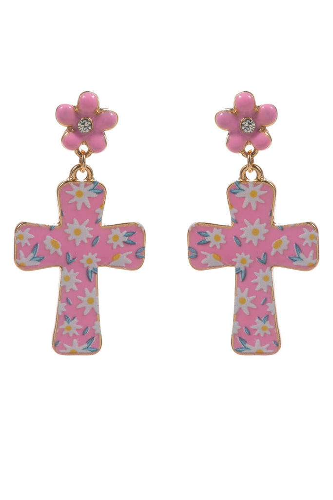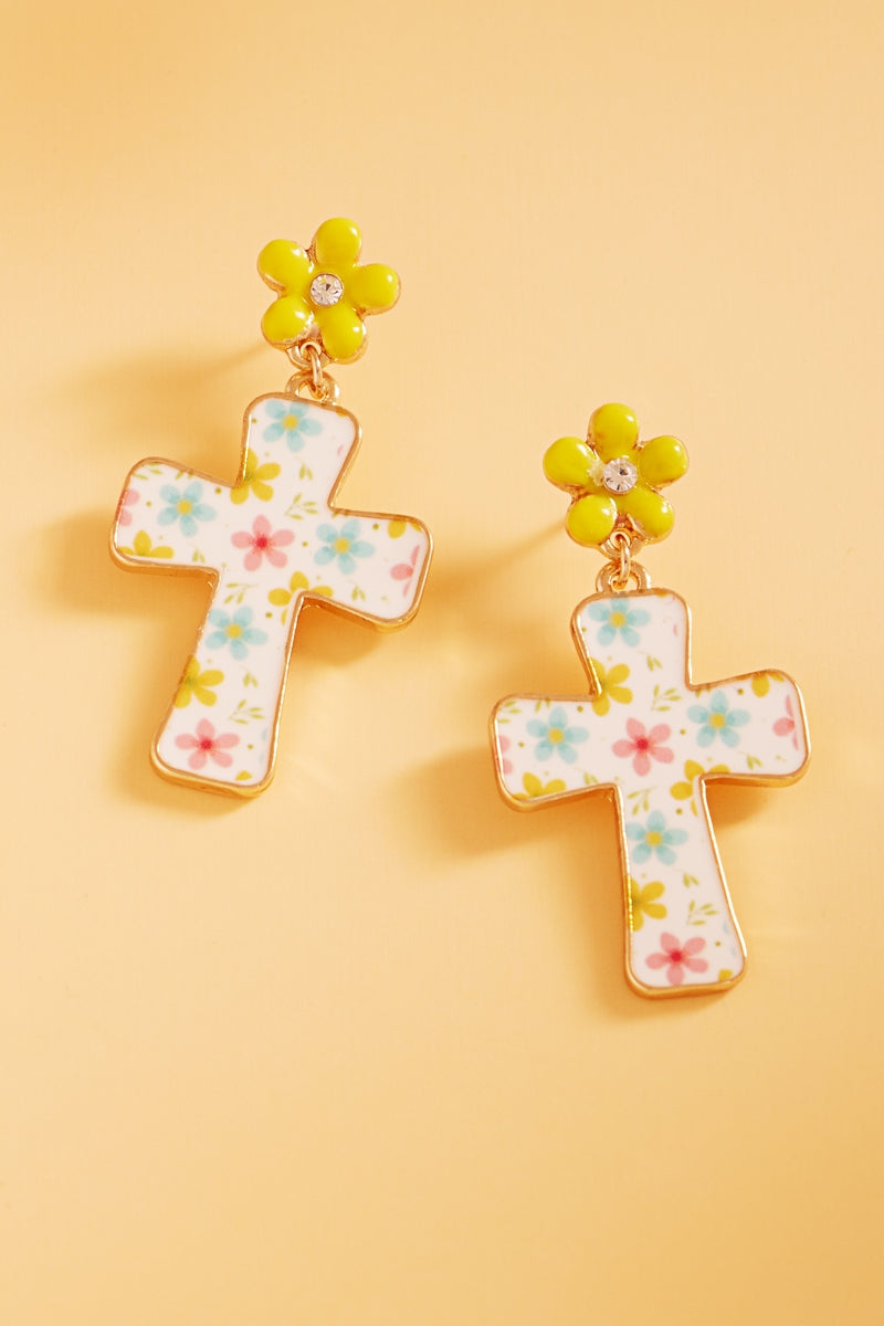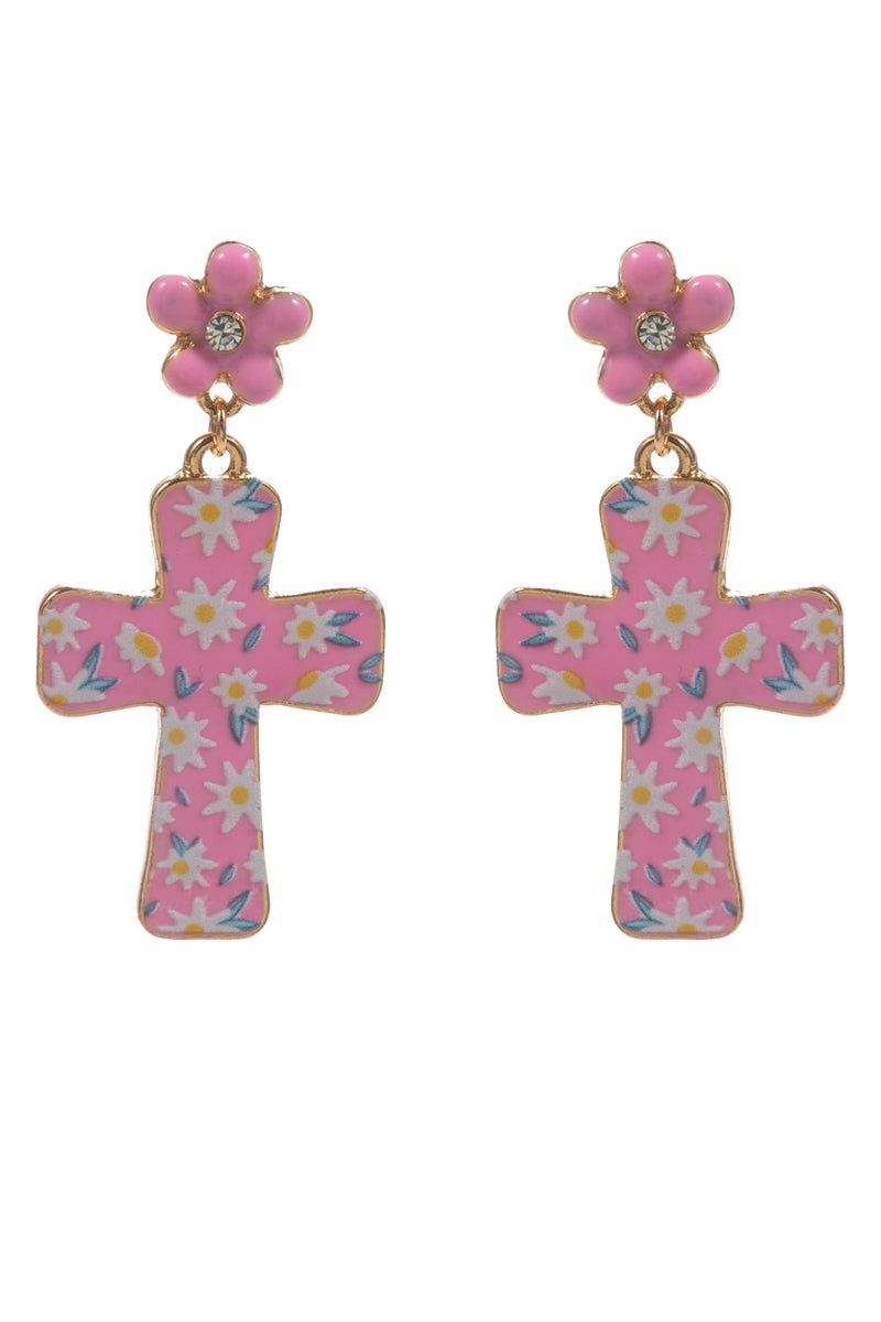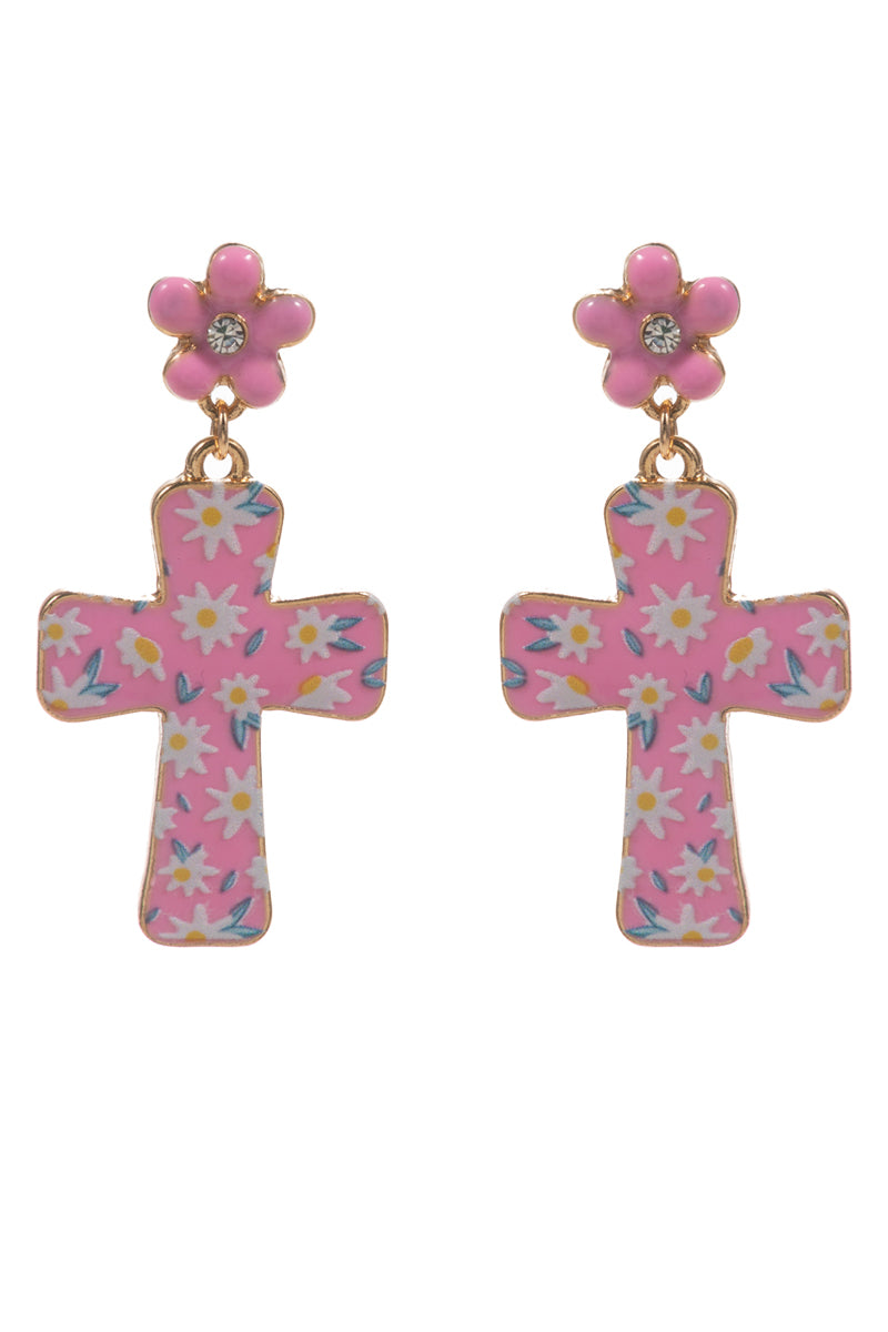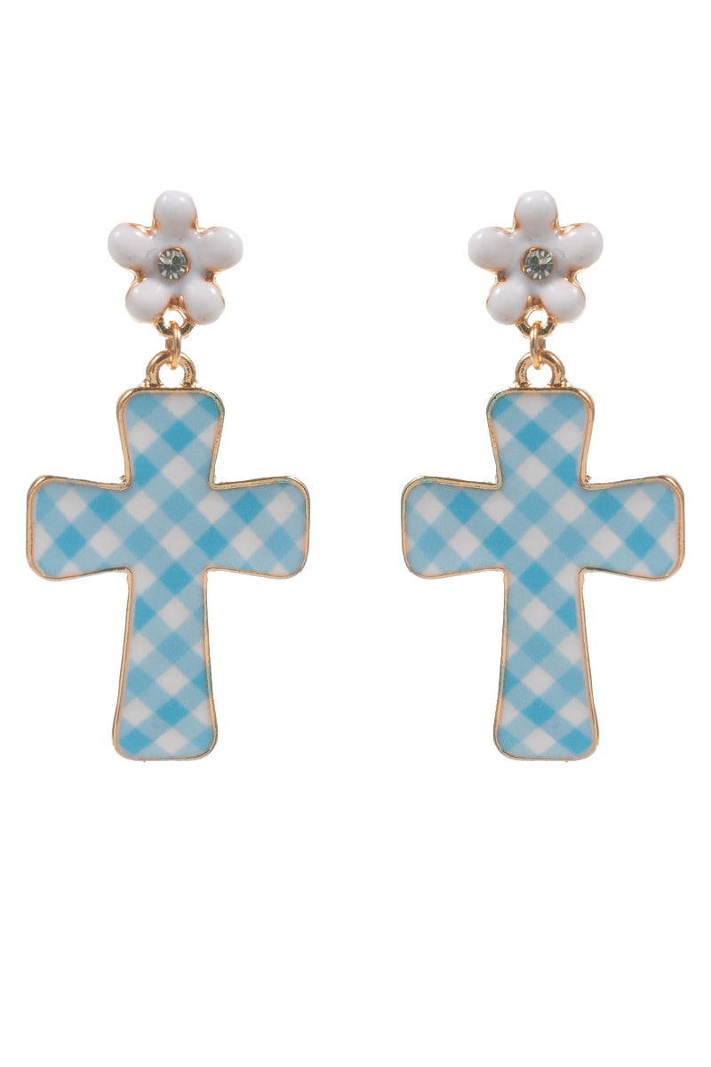 Easter Cross Enamel Pattern Titanium Post Earrings