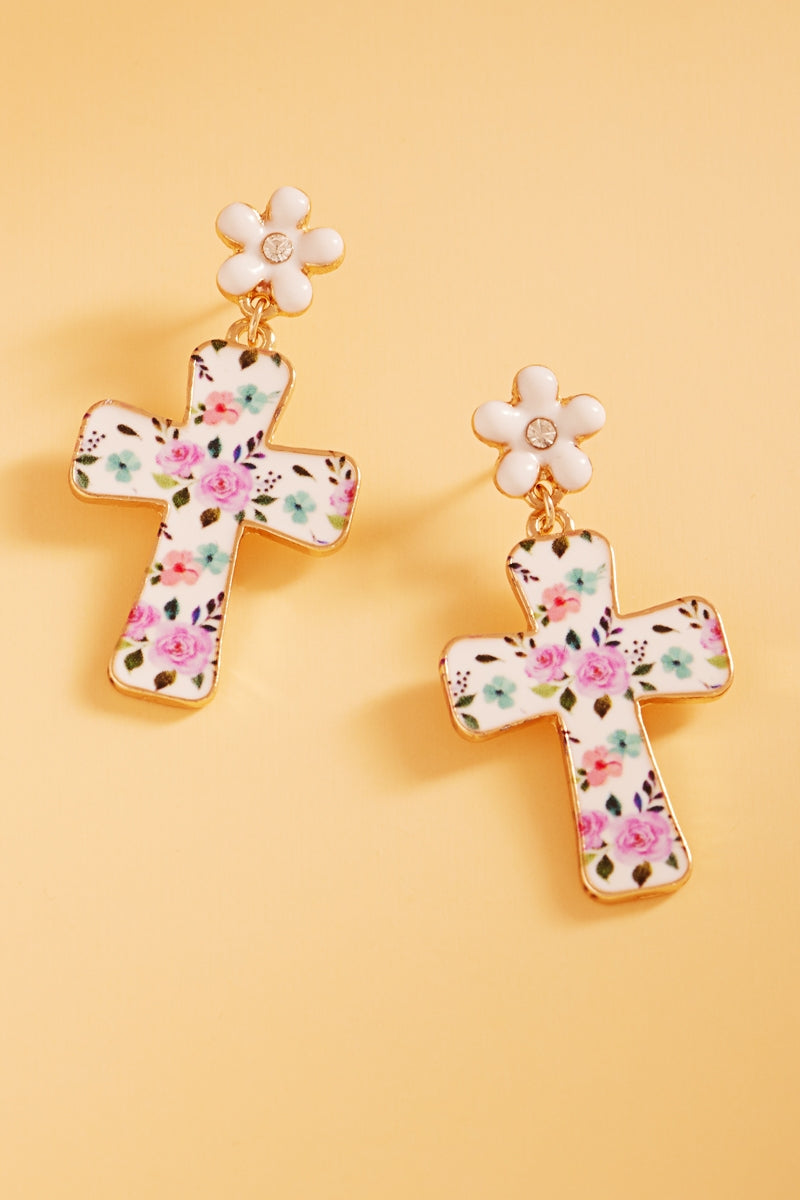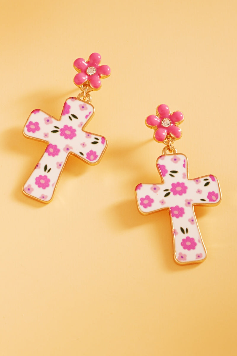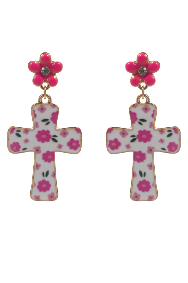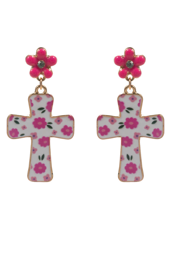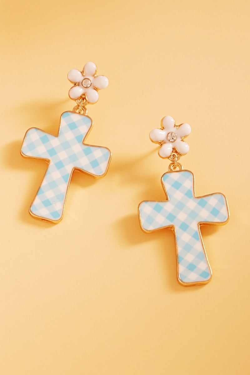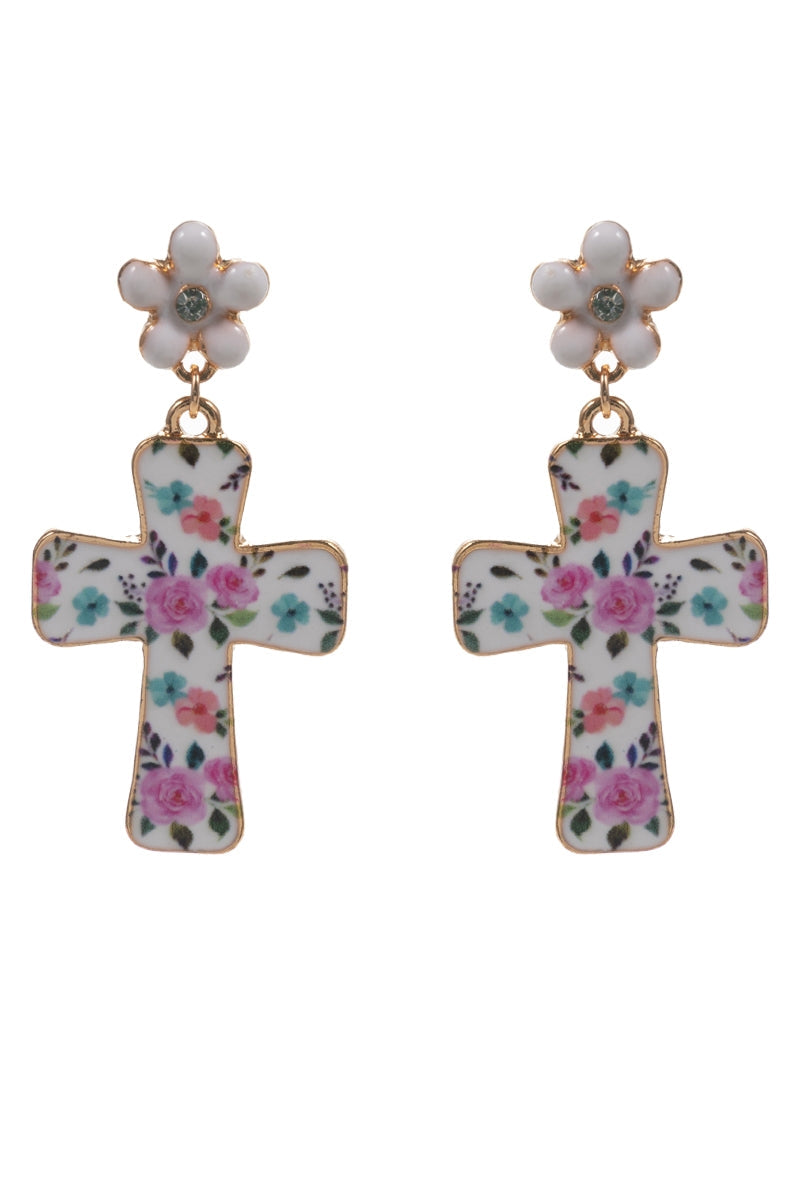 Easter Cross Enamel Pattern Titanium Post Earrings