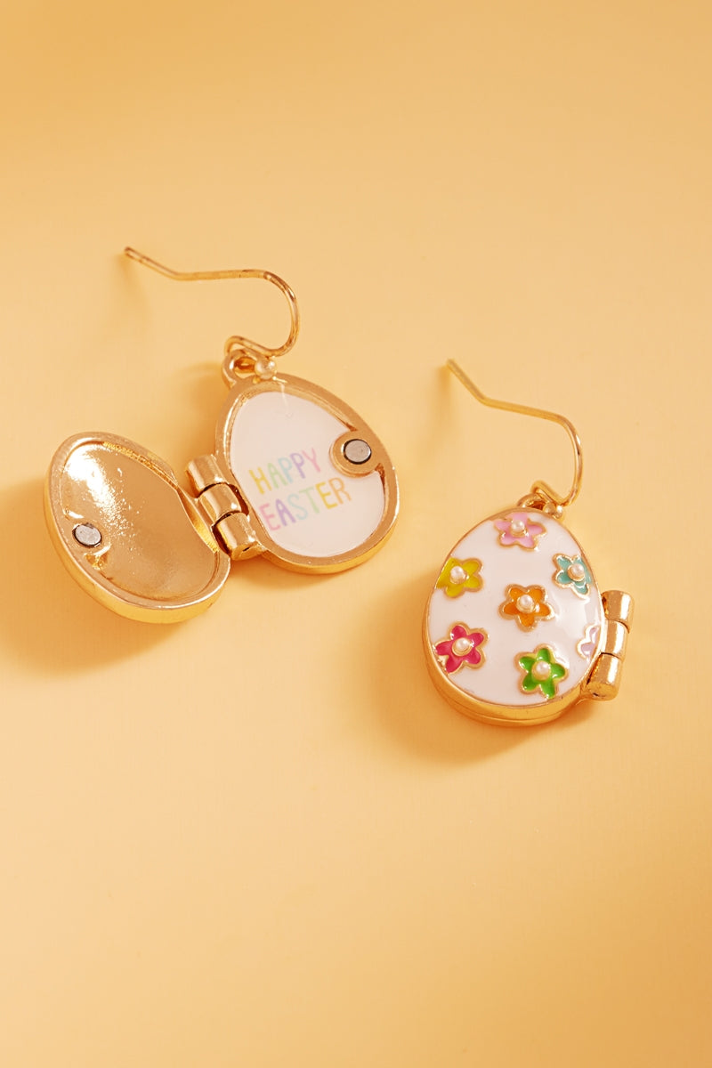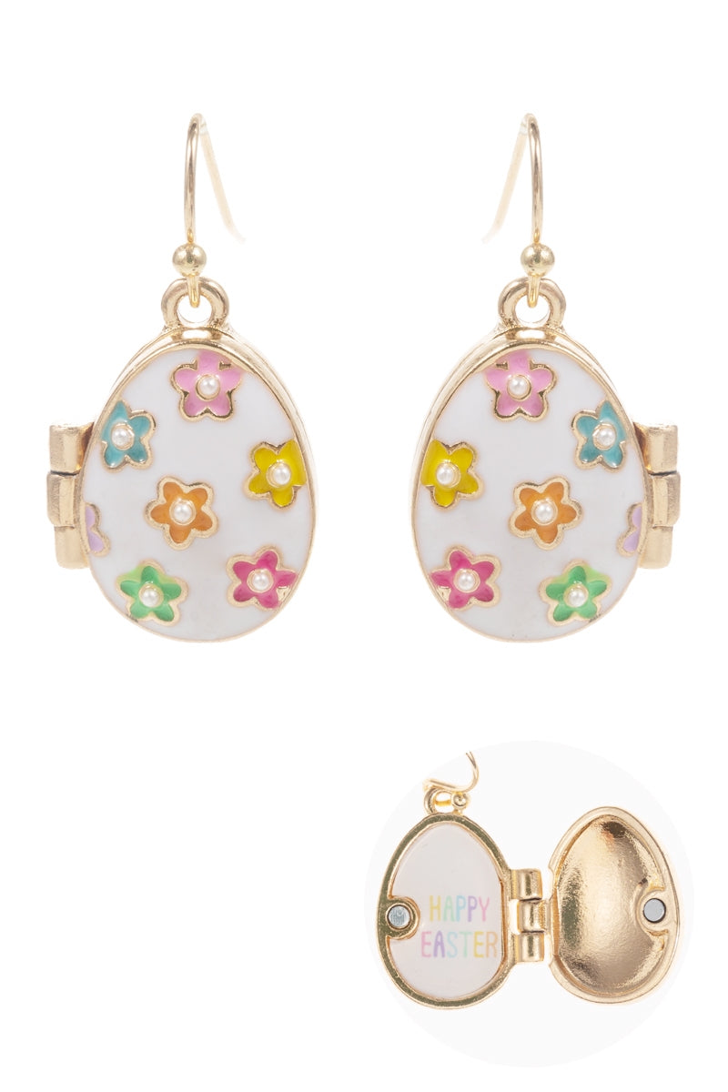 Easter Egg Shape Enamel Locket Brass Hook Earrings