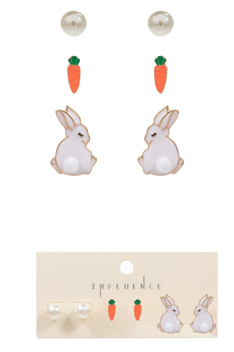 Easter Egg With Chick And Pearl 3Set Post Earrings