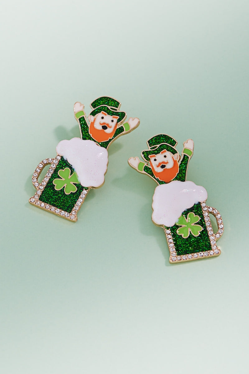 Expertly crafted with hypoallergenic titanium posts, these 1.75 inch enamel earrings are the perfect way to showcase your love for St. Patrick's Day. The leprechaun shape adds a touch of whimsy while the beer print adds a festive touch. Stay stylish and comfortable all day long!
