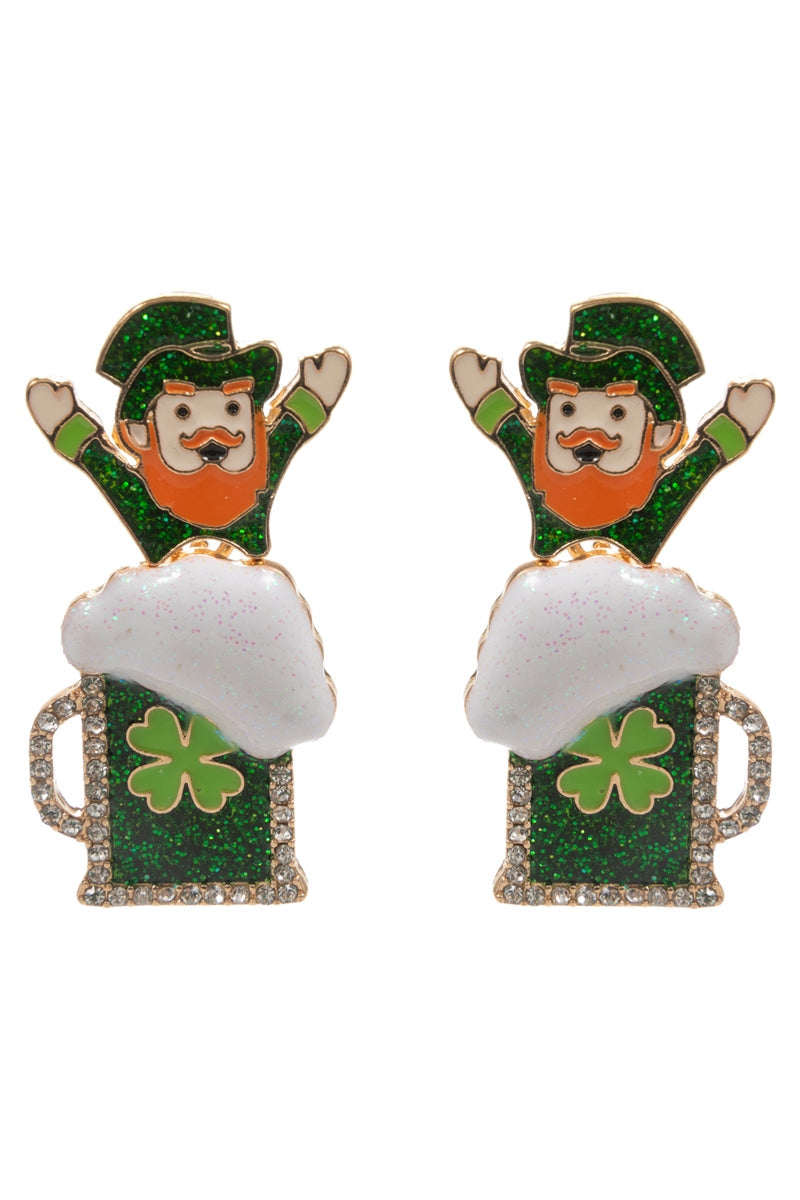 Enamel Saint Patricks Beer Titanium Post Earrings