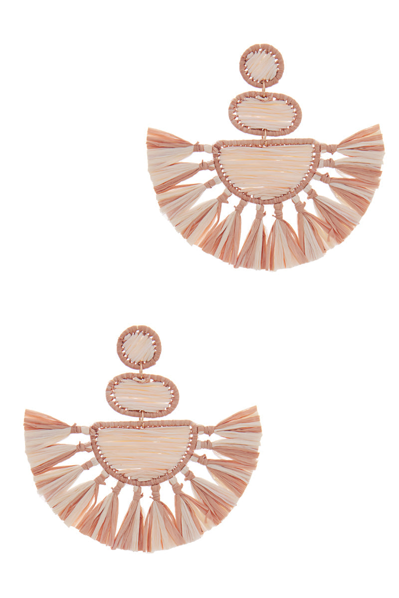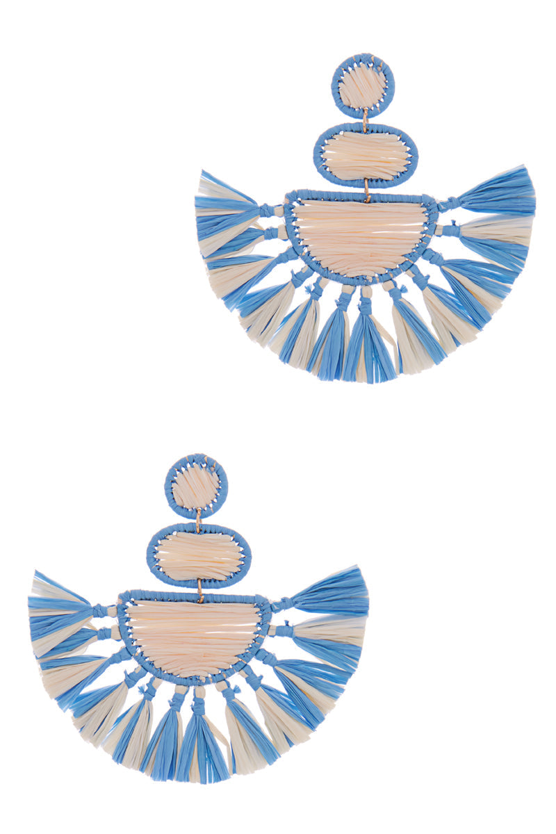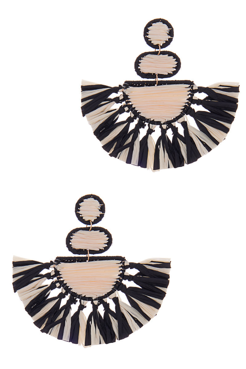 These elegant earrings feature a unique 3.14 inch fan shape made of raffia, giving them a natural and stylish look. The lightweight design is perfect for all-day wear, and the post style ensures a secure fit.